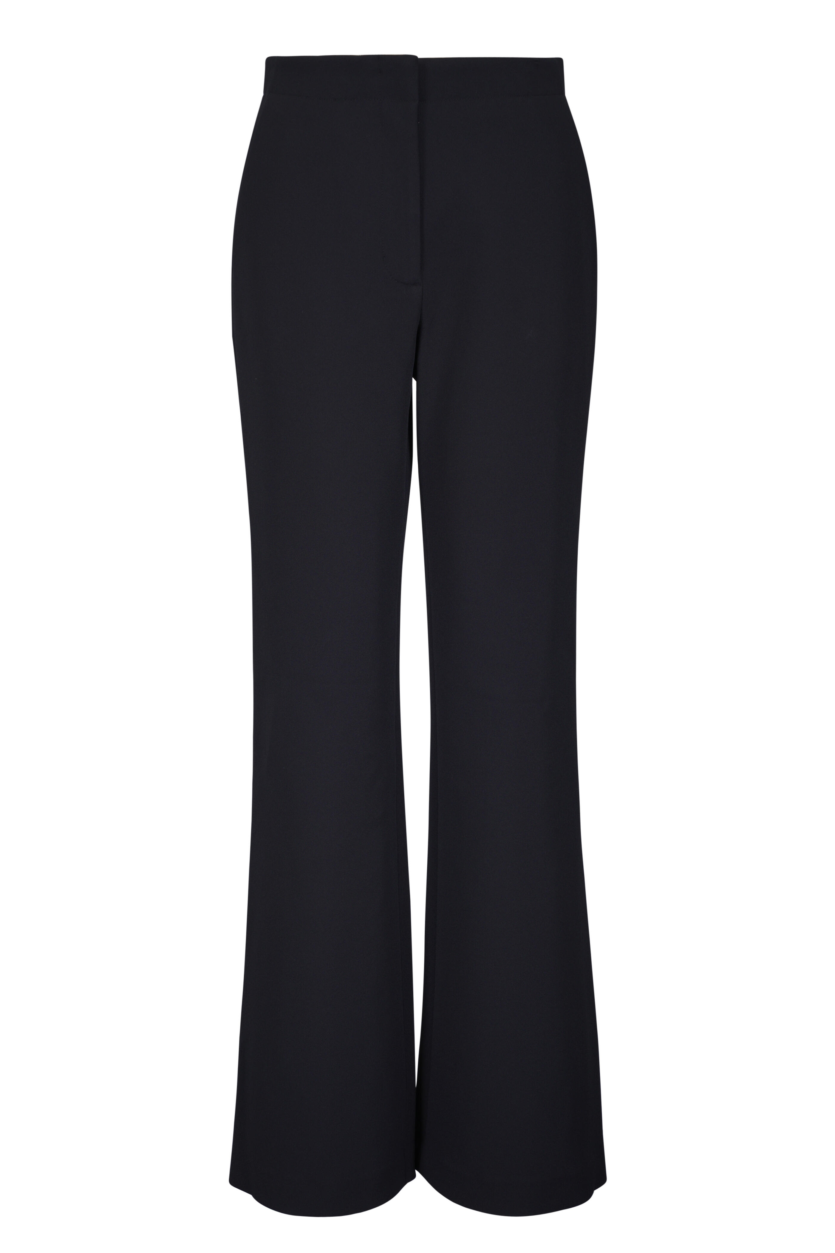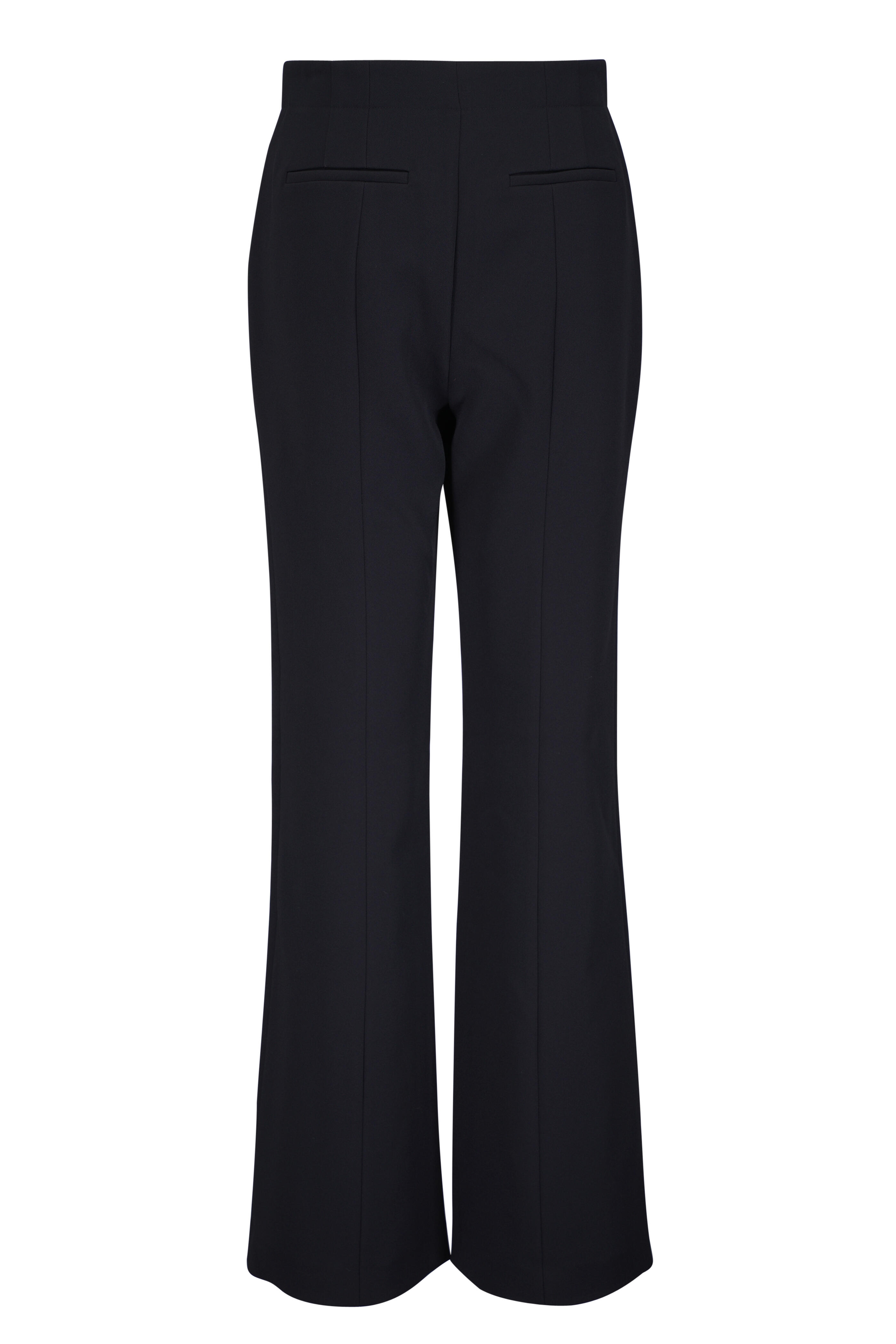 Front zip; hook and bar closure. Side slip pockets; back welt pockets. Wide leg. Imported. 33" inseam (size 6). 84% polyester, 16% acetate; fully lined. Dry clean.