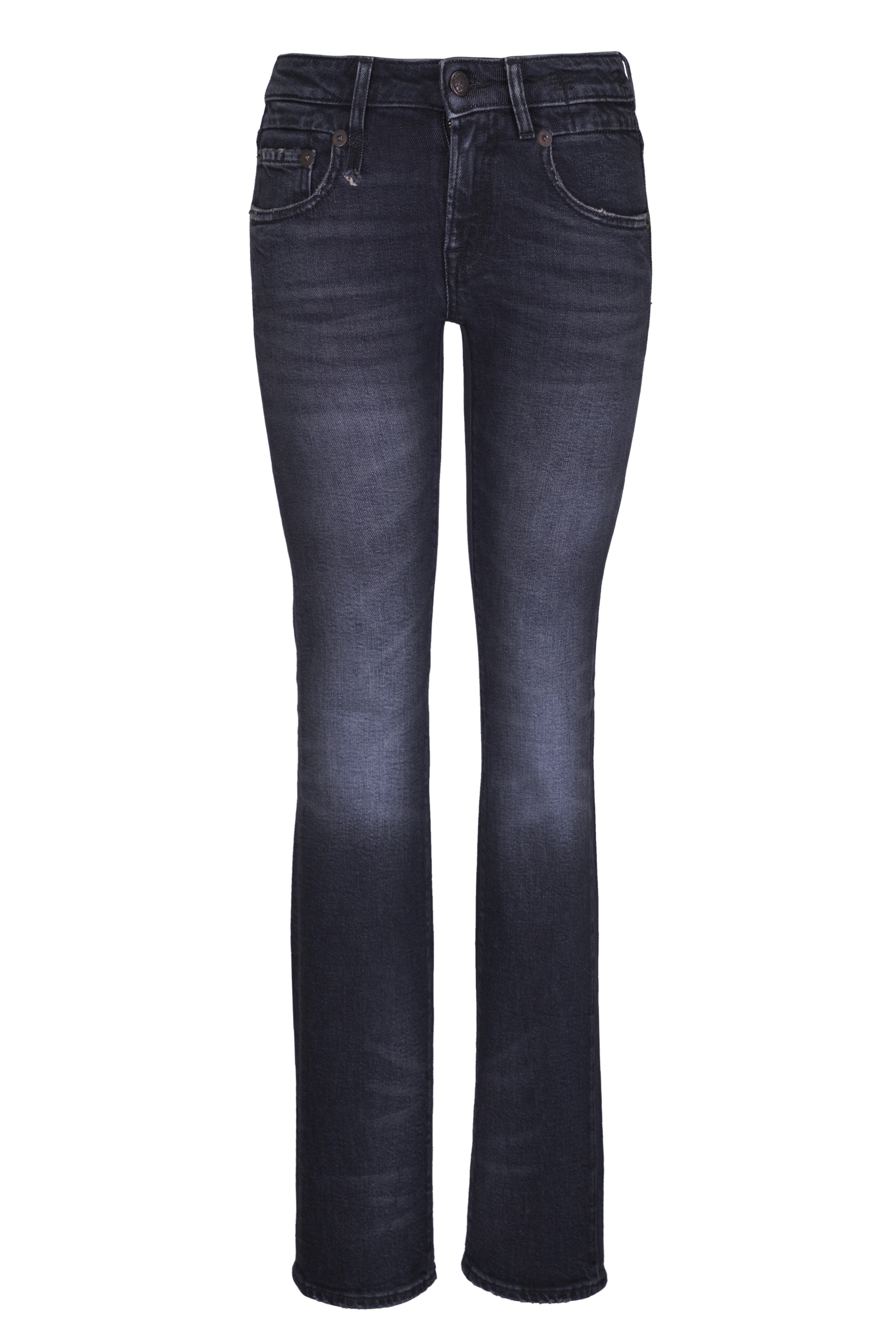 Zip fly; button closure. Banded waist; belt loops. Five-pocket styling. Straight hem. Imported. 100% cotton. Machine wash.