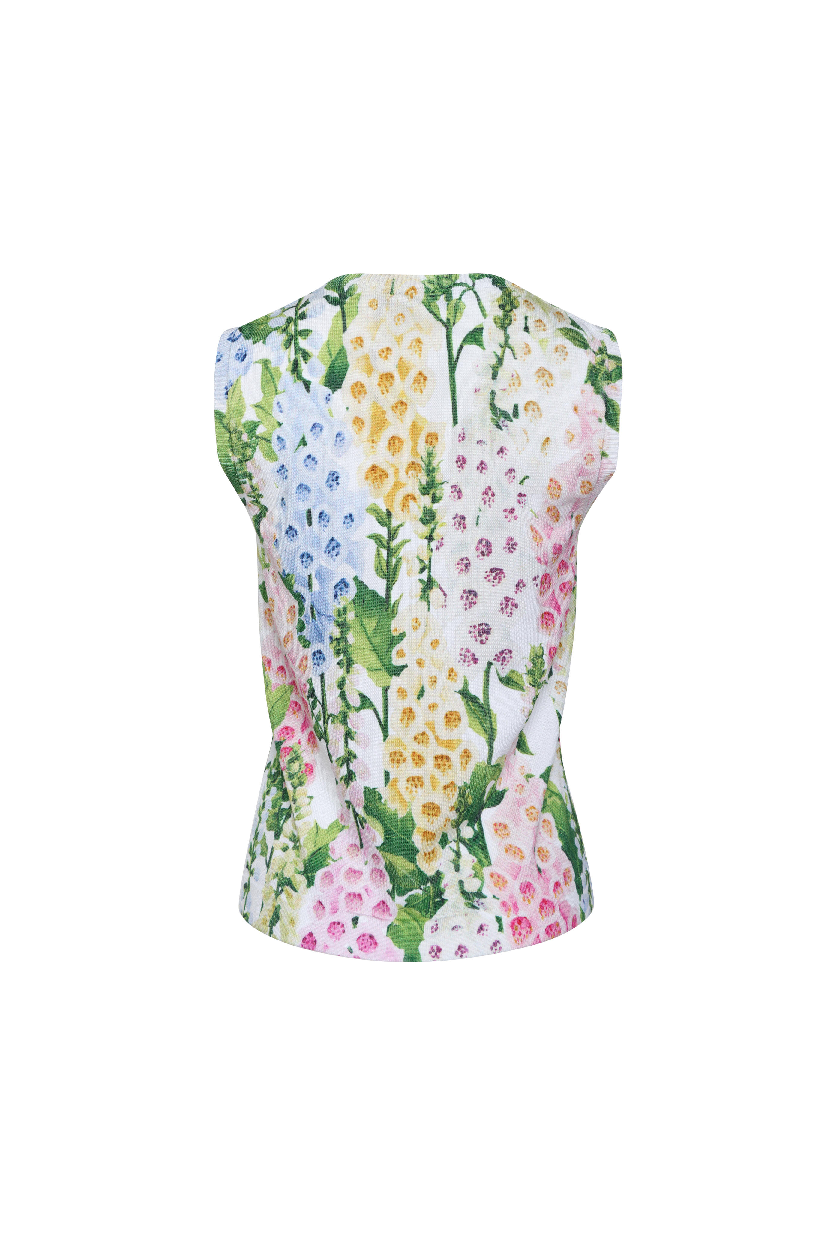 Round neck. Sleeveless. Slim silhouette. Ribbed neck, cuffs, and hem. Straight hem. Made in Italy. 57% cotton, 43% viscose. Dry clean.