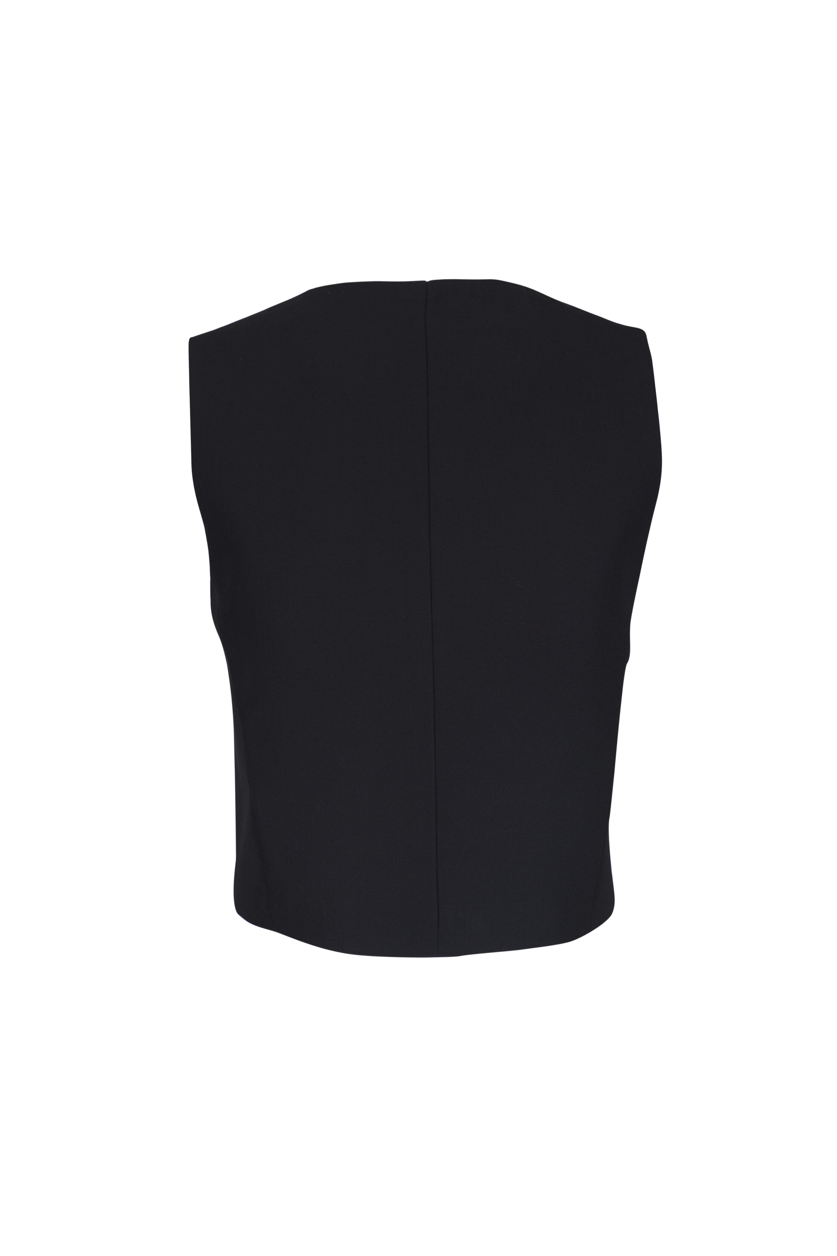 Round neck. Three-button closure. Made in USA. Shoulder to hem approximately 19" (size XS). Cropped fit. 100% wool; lining 93% silk, 7% elastane. Dry clean.