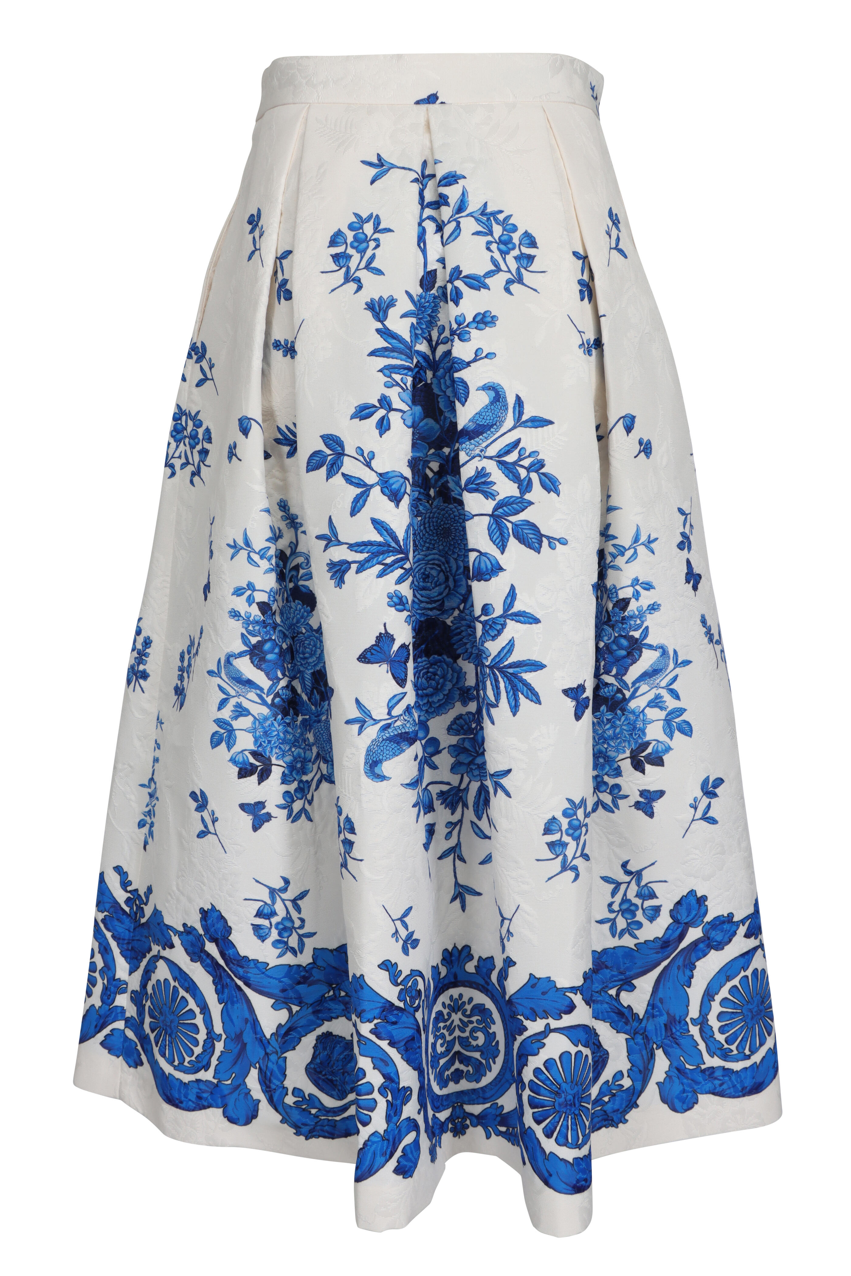 High rise. Flat waistband. Concealed zip closure. Side slip pockets. Pleated throughout. Aline silhouette. Made in Italy. Midi length. 60% polyester, 40% cotton. Dry clean.