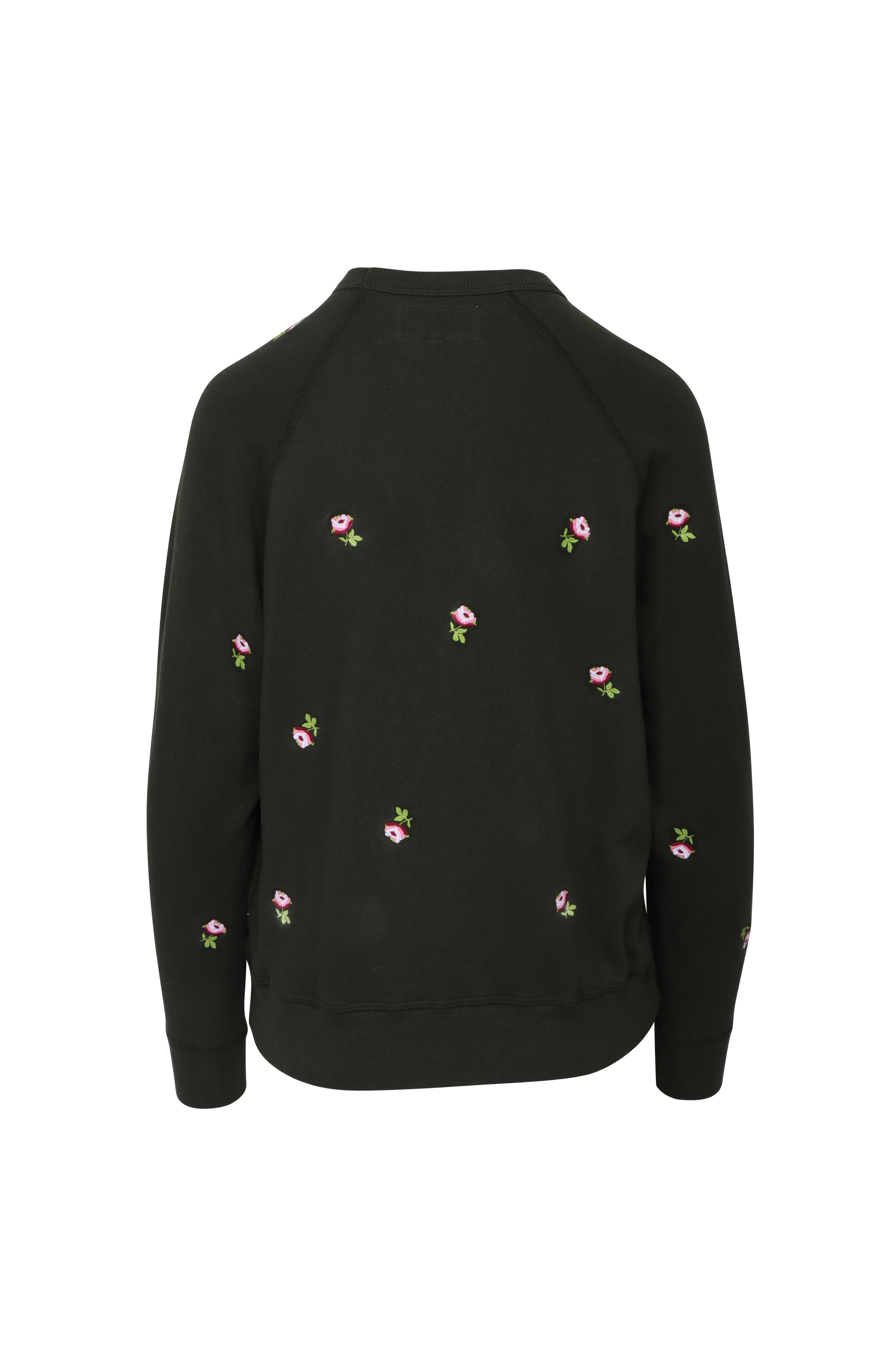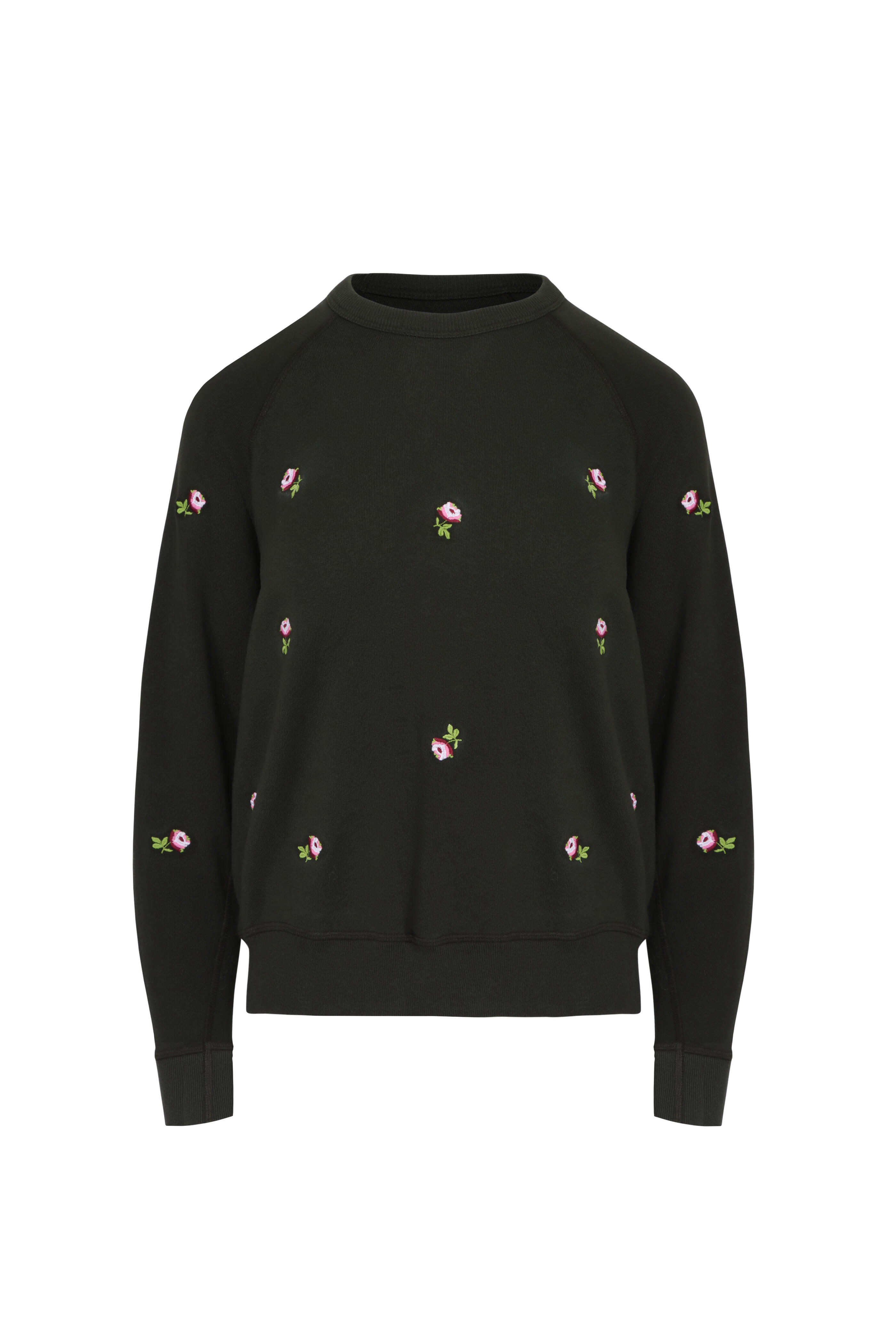 Crewneck. Long raglan sleeves. Relaxed fit. Embroidered detail throughout. Made in LA. 100% cotton. Machine washable.