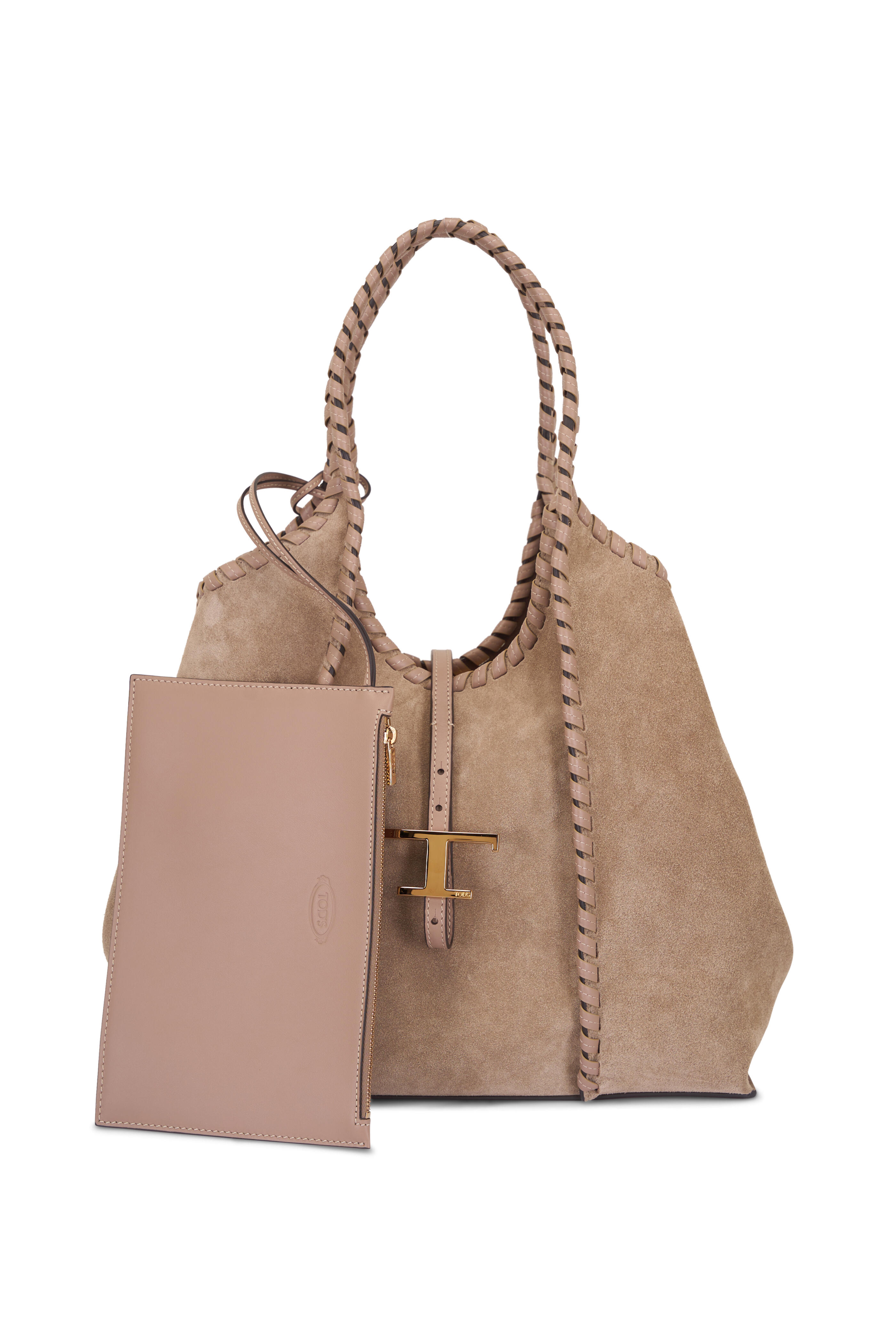 Small T Timeless Mocha Suede Tote