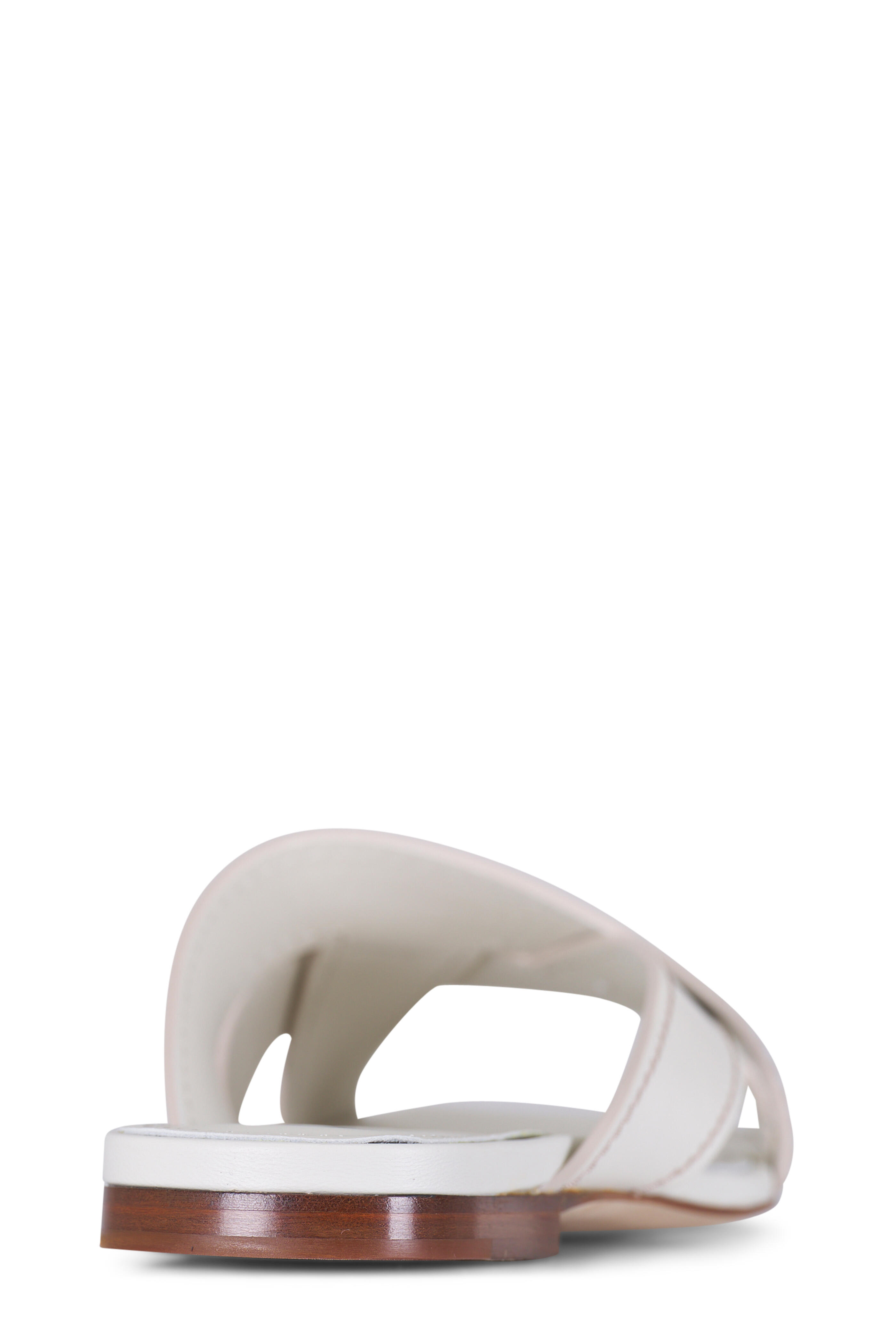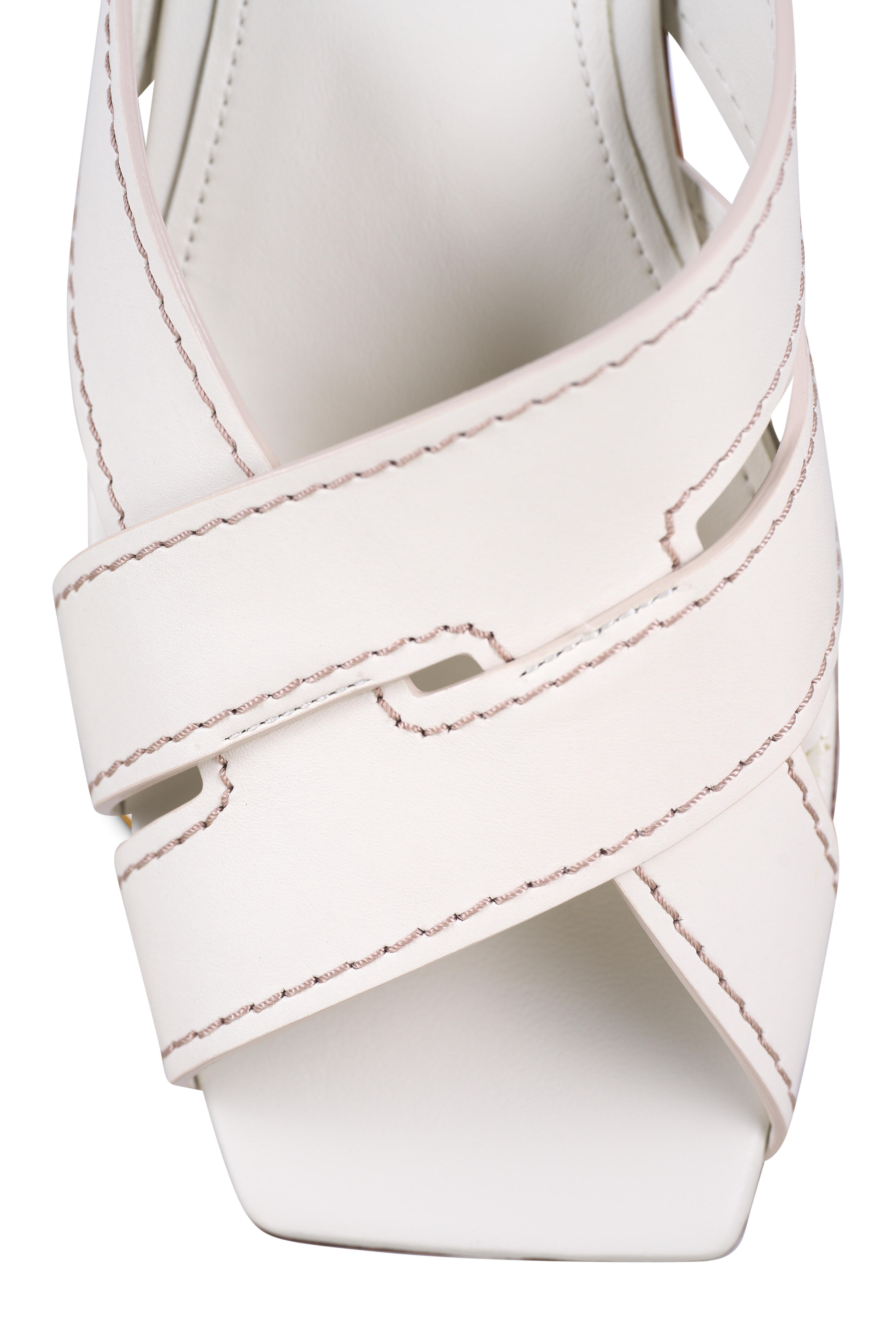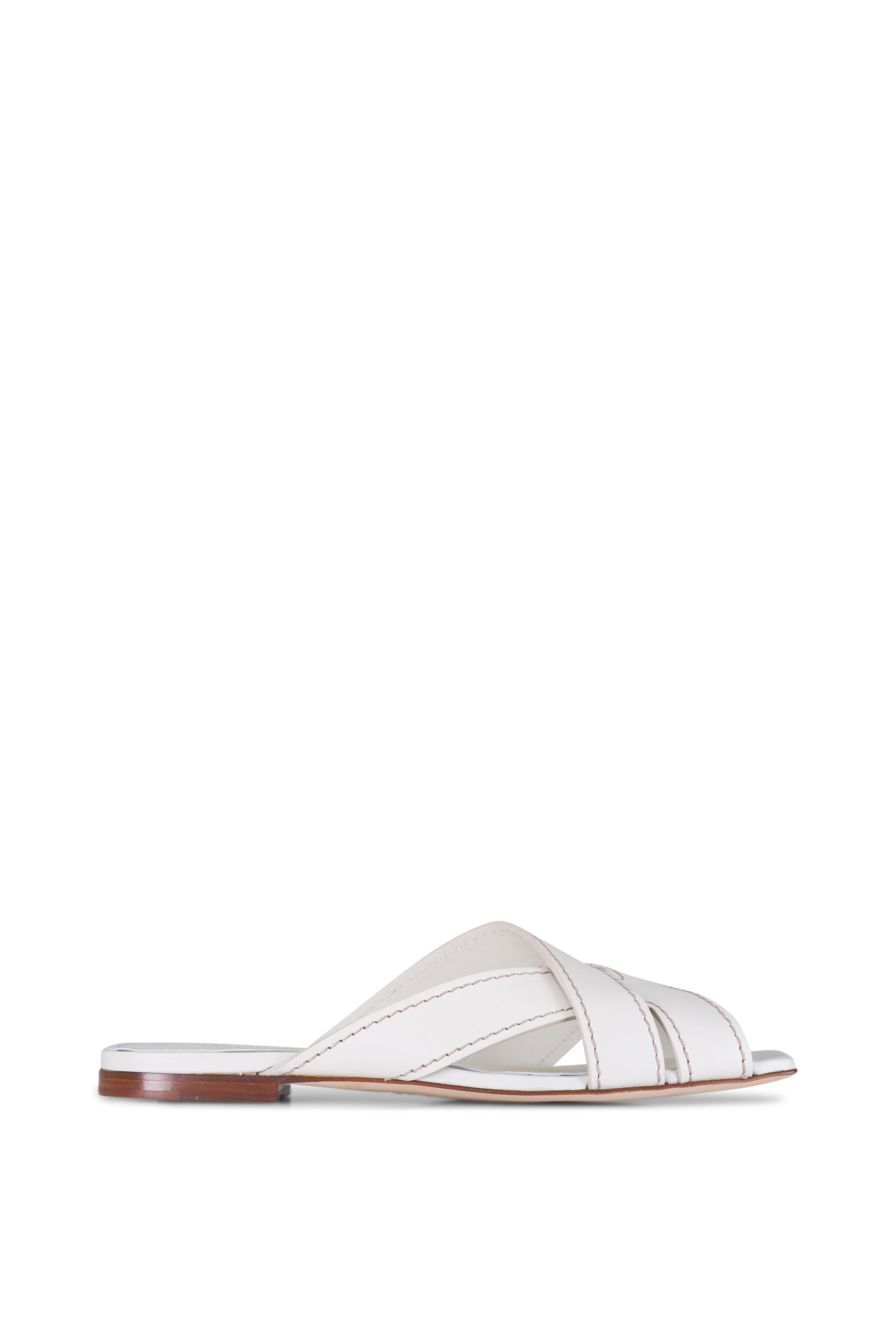 Leather upper. Open, square toe. Slide on style. Leather lining and insole. Leather sole. Made in Italy.