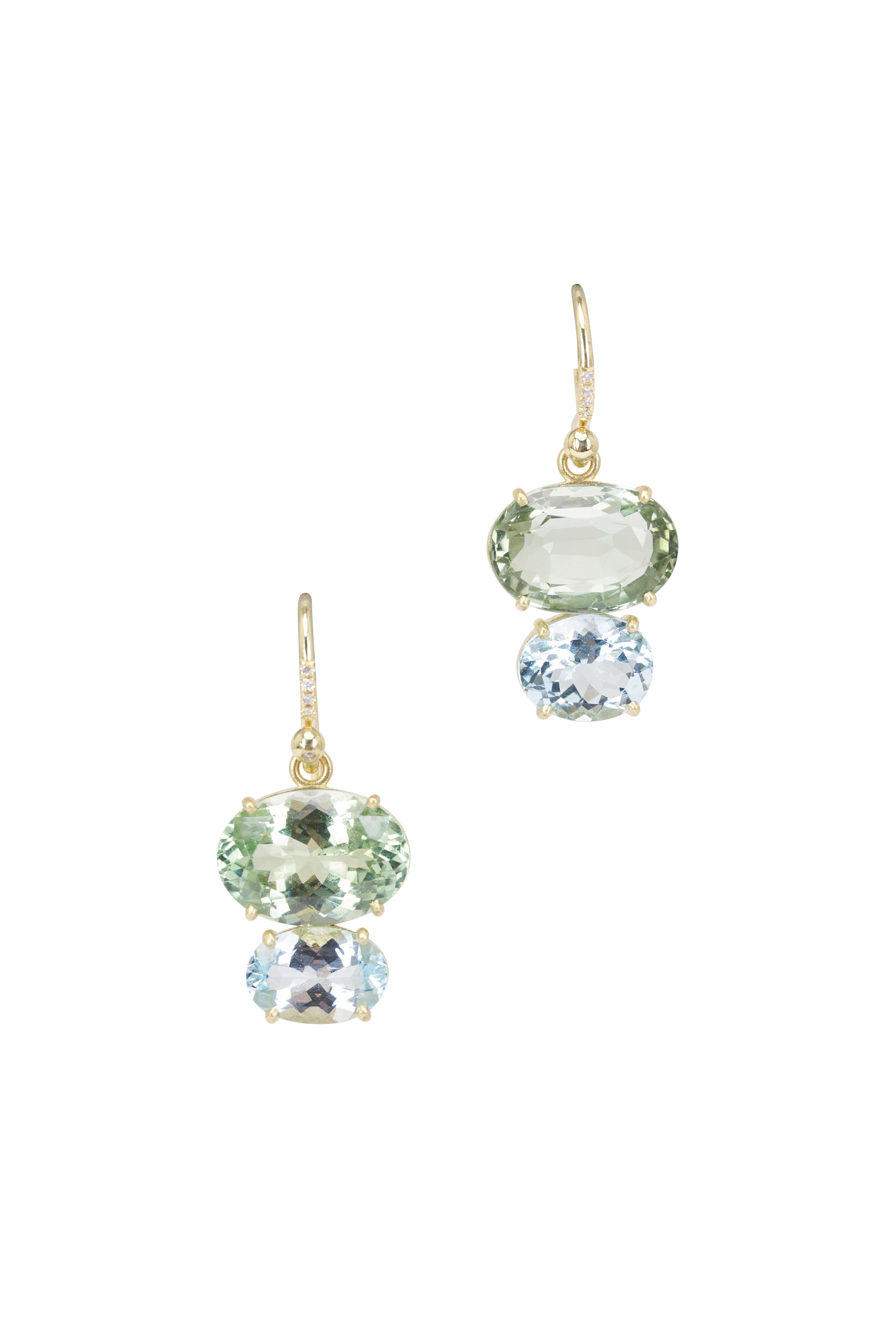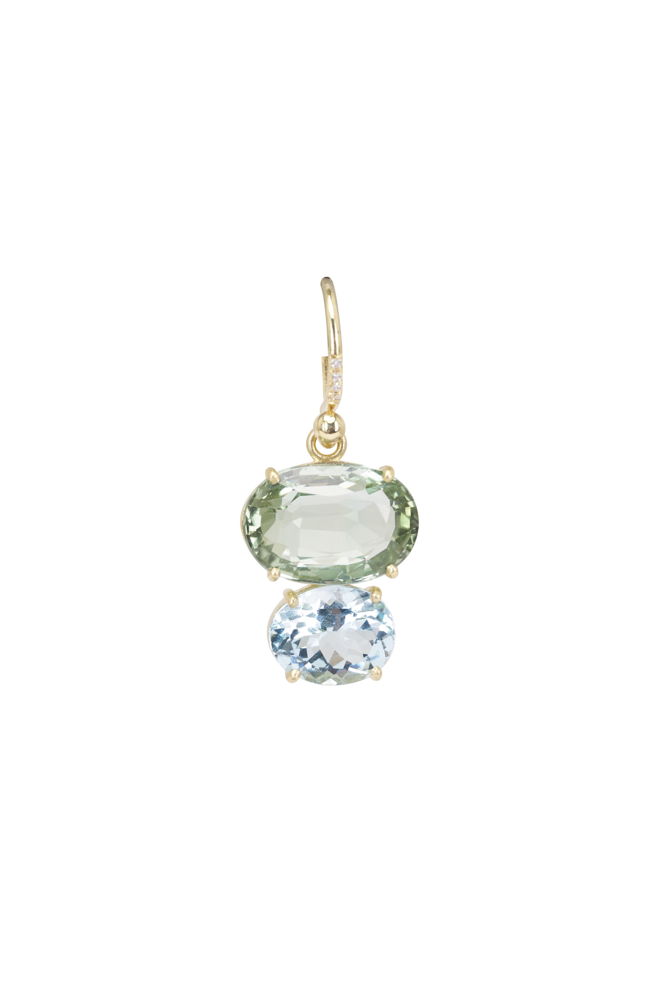 18k Yellow Gold. 12.39 ct Green Tourmaline. 4.17 ct Aquamarine. 0.03 ct Diamond Pave.