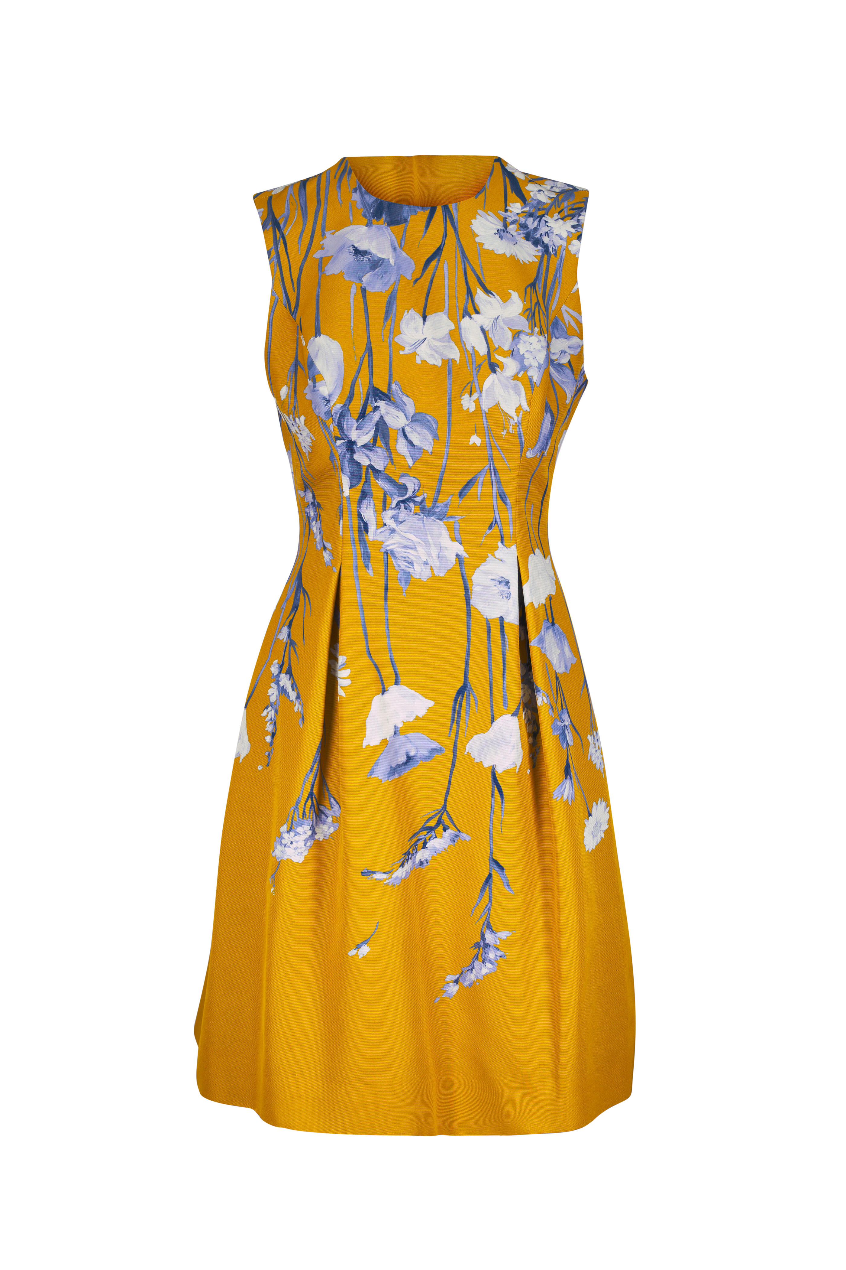 Round neckline. Concealed back zip. Made in the USA. Approximately 38" shoulder to hem (measurements taken from size 4). 63% cotton, 37% viscose; lined. Dry clean.