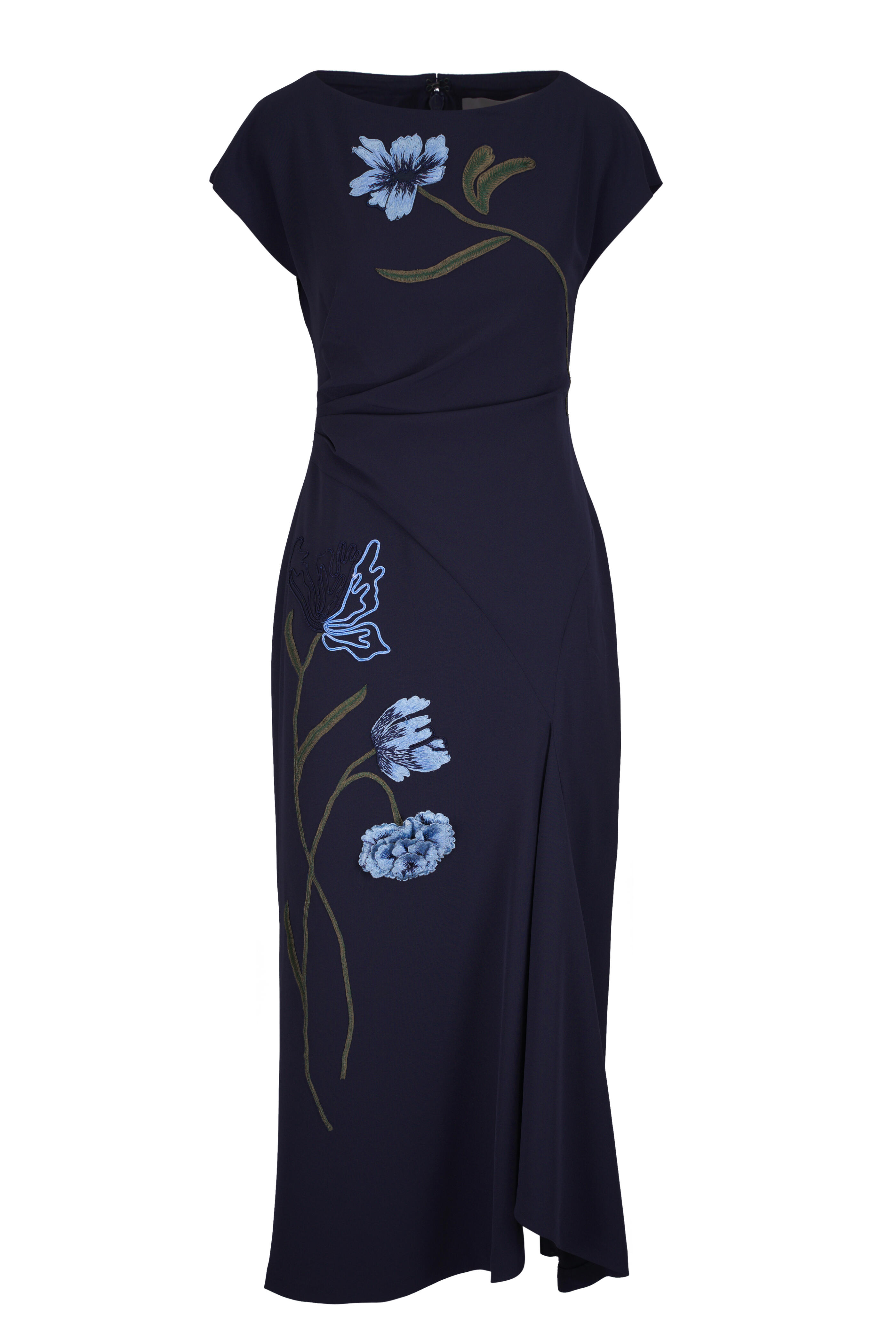 Navy Floral Cord Embroidered Fluid Crepe Dress
