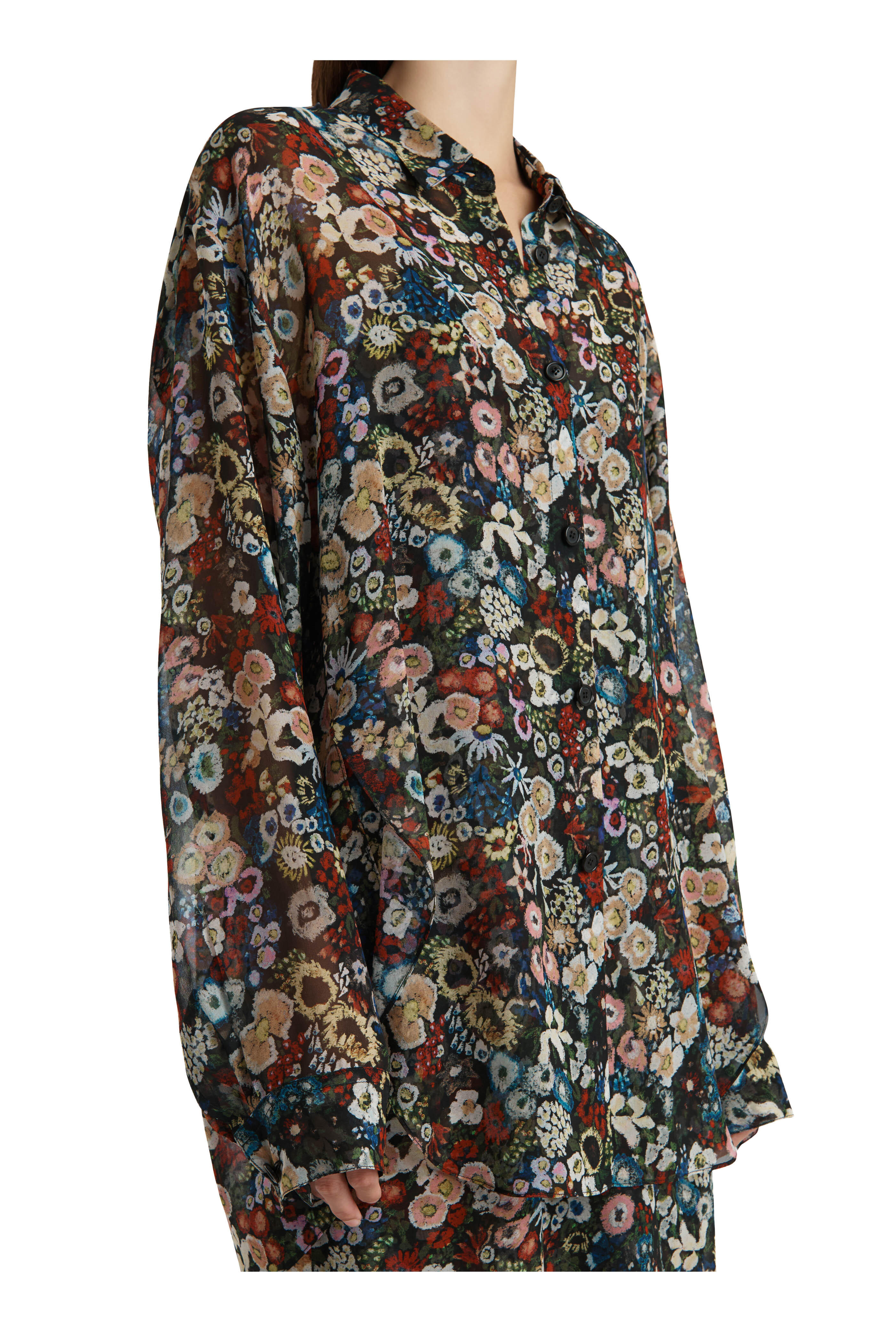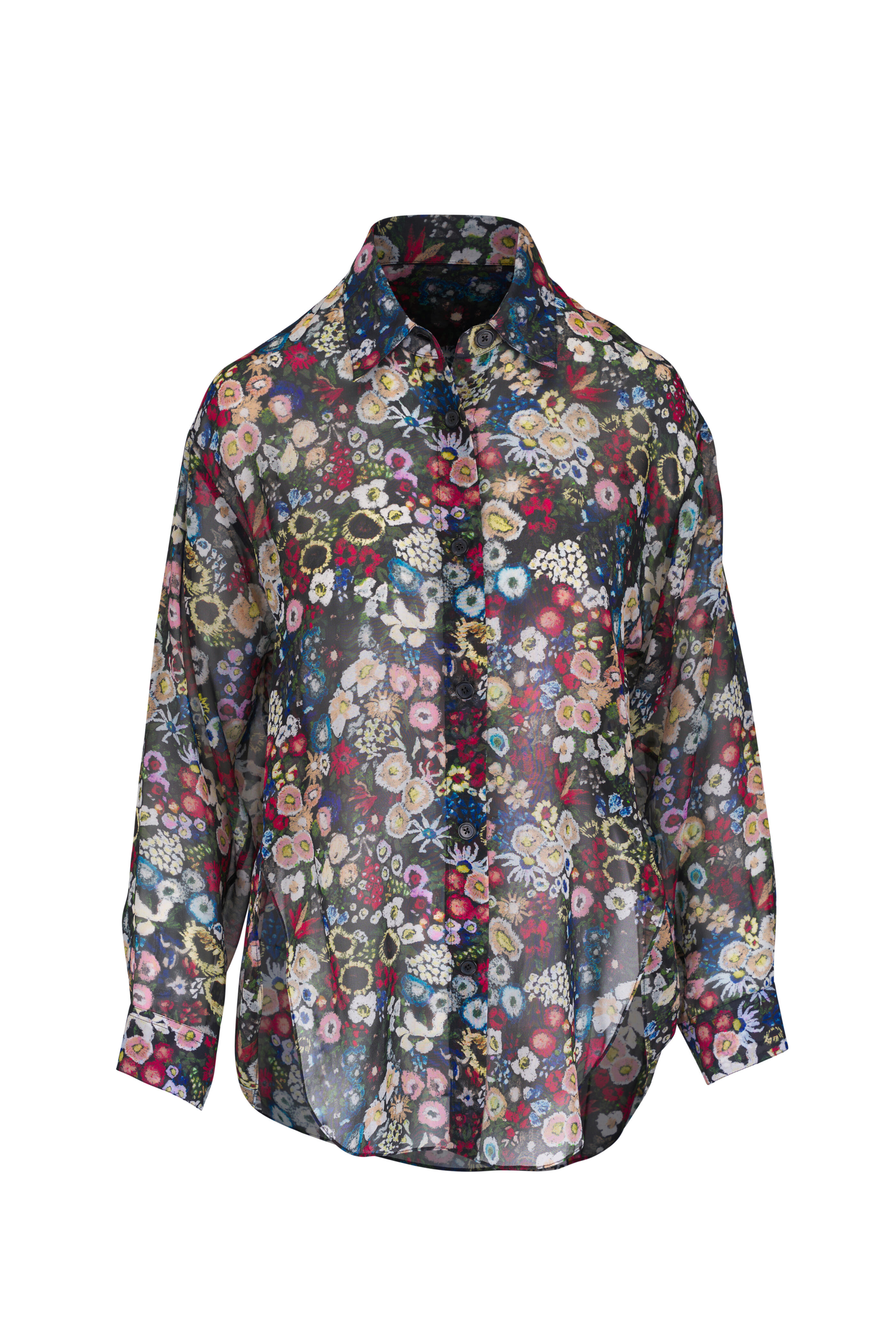 Goya Multicolor Floral Print Silk Blouse