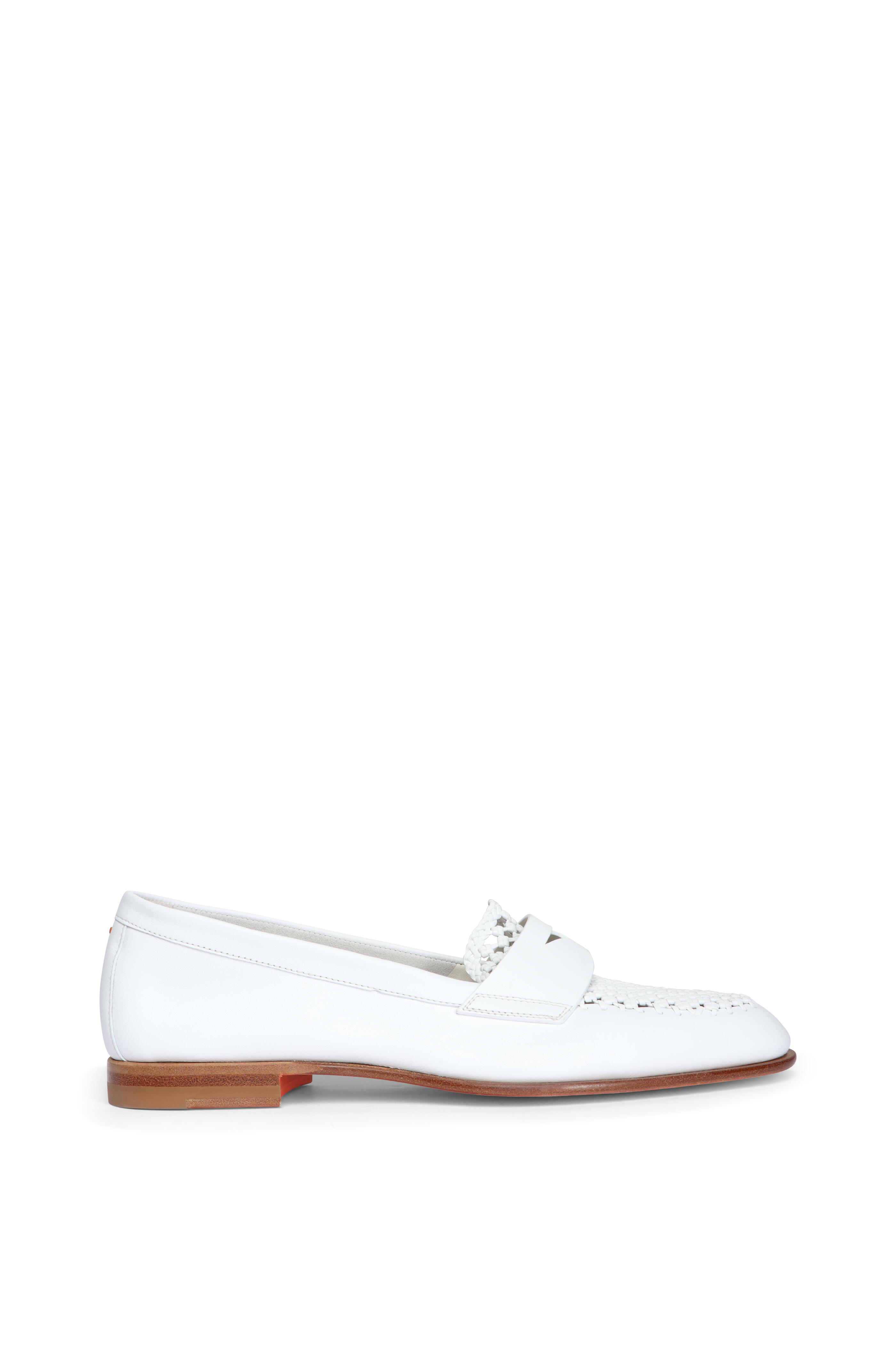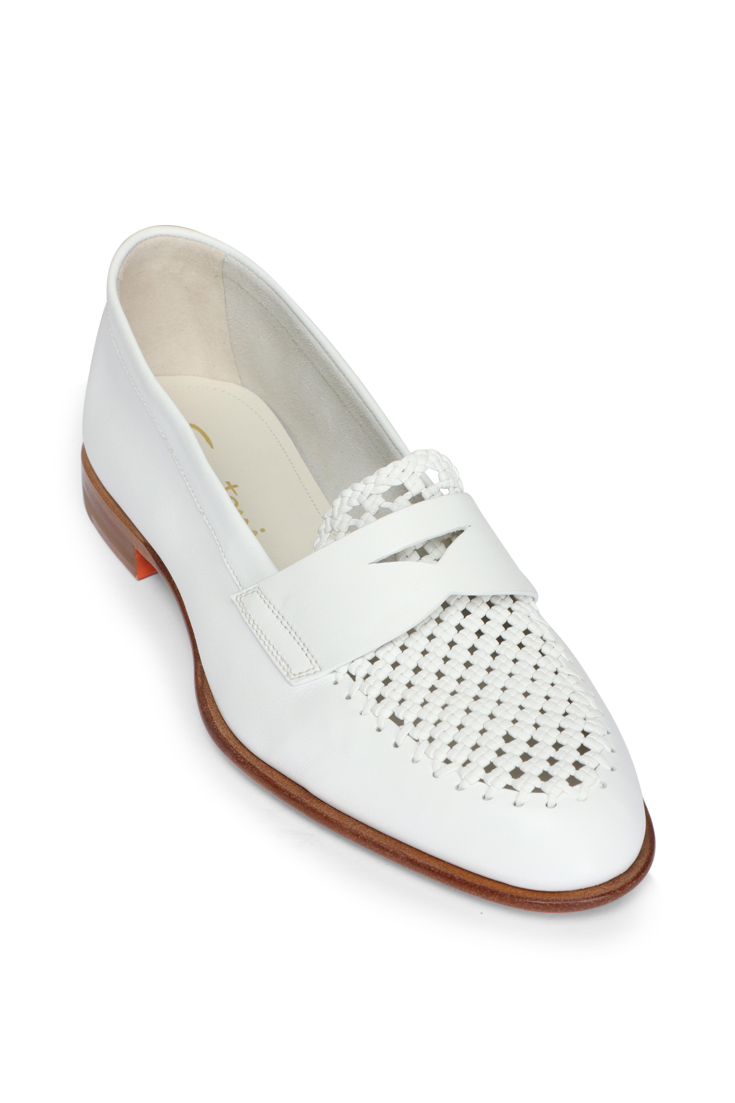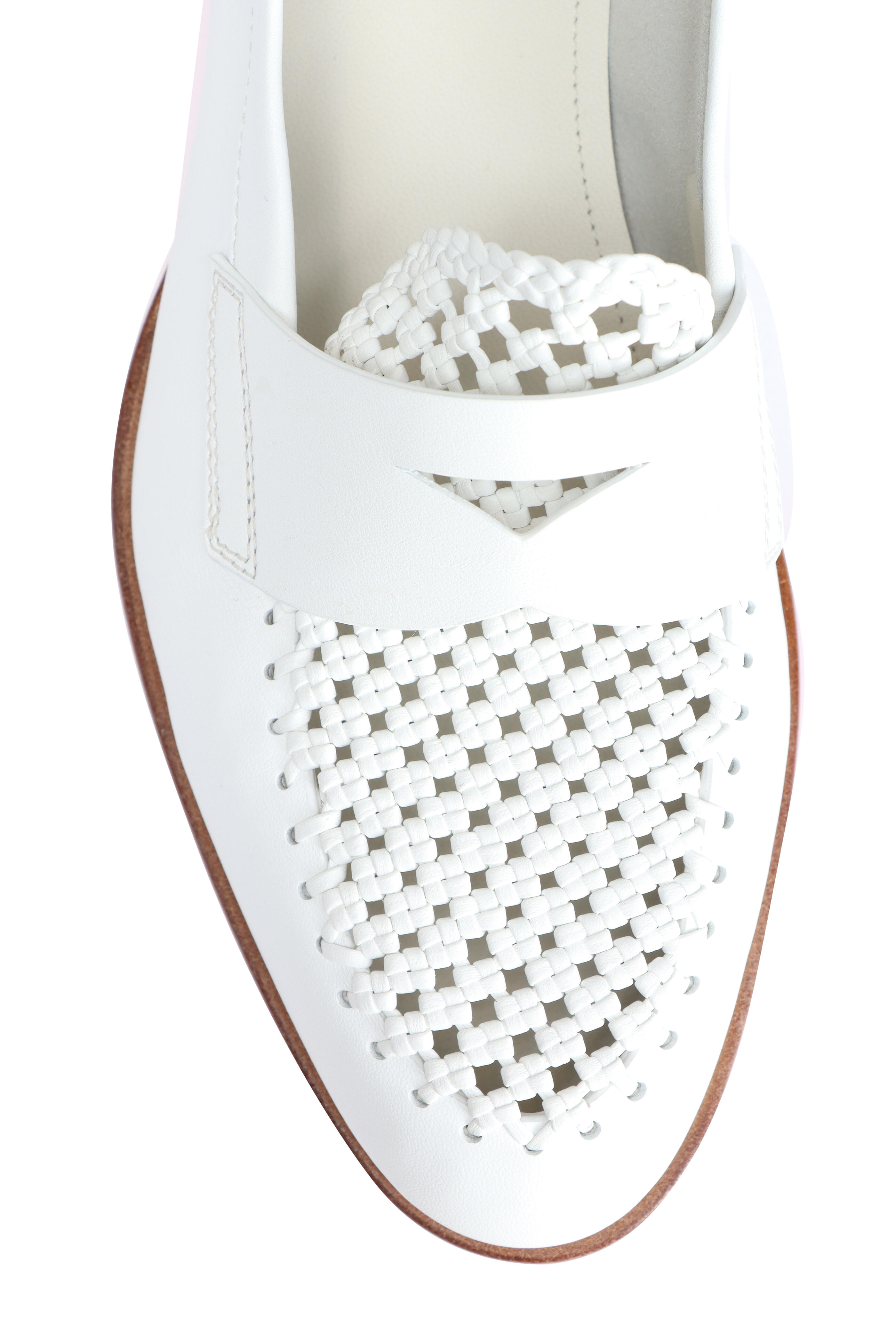 Leather upper and lining. Signature orange leather sole. Almond toe. Notched vamp with keeper strap. Woven design. Slip-on style. Made in Italy. Heel measurement: 10mm.
