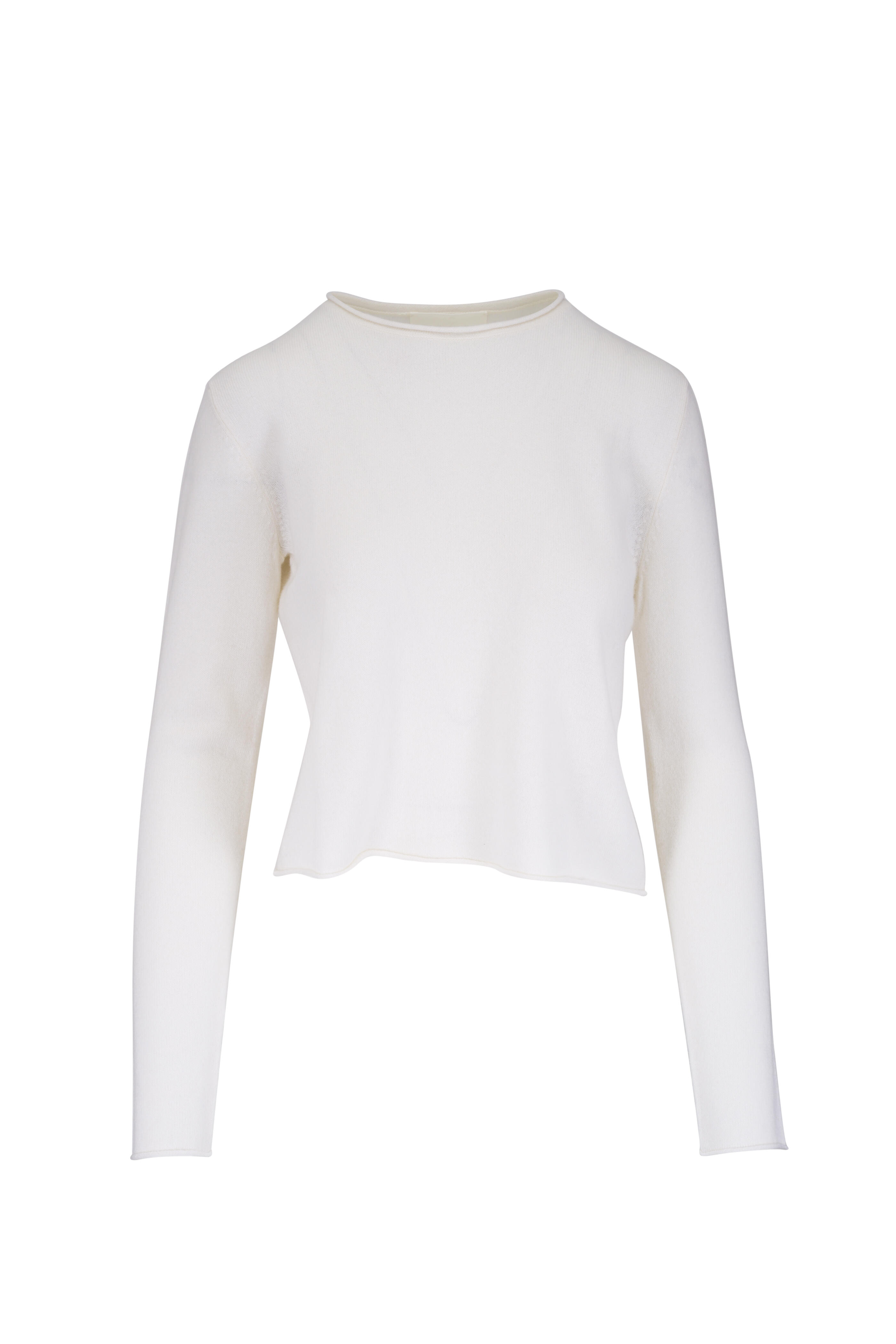 Crew neckline. Rolled trim. Imported. 100% cashmere. Dry clean.