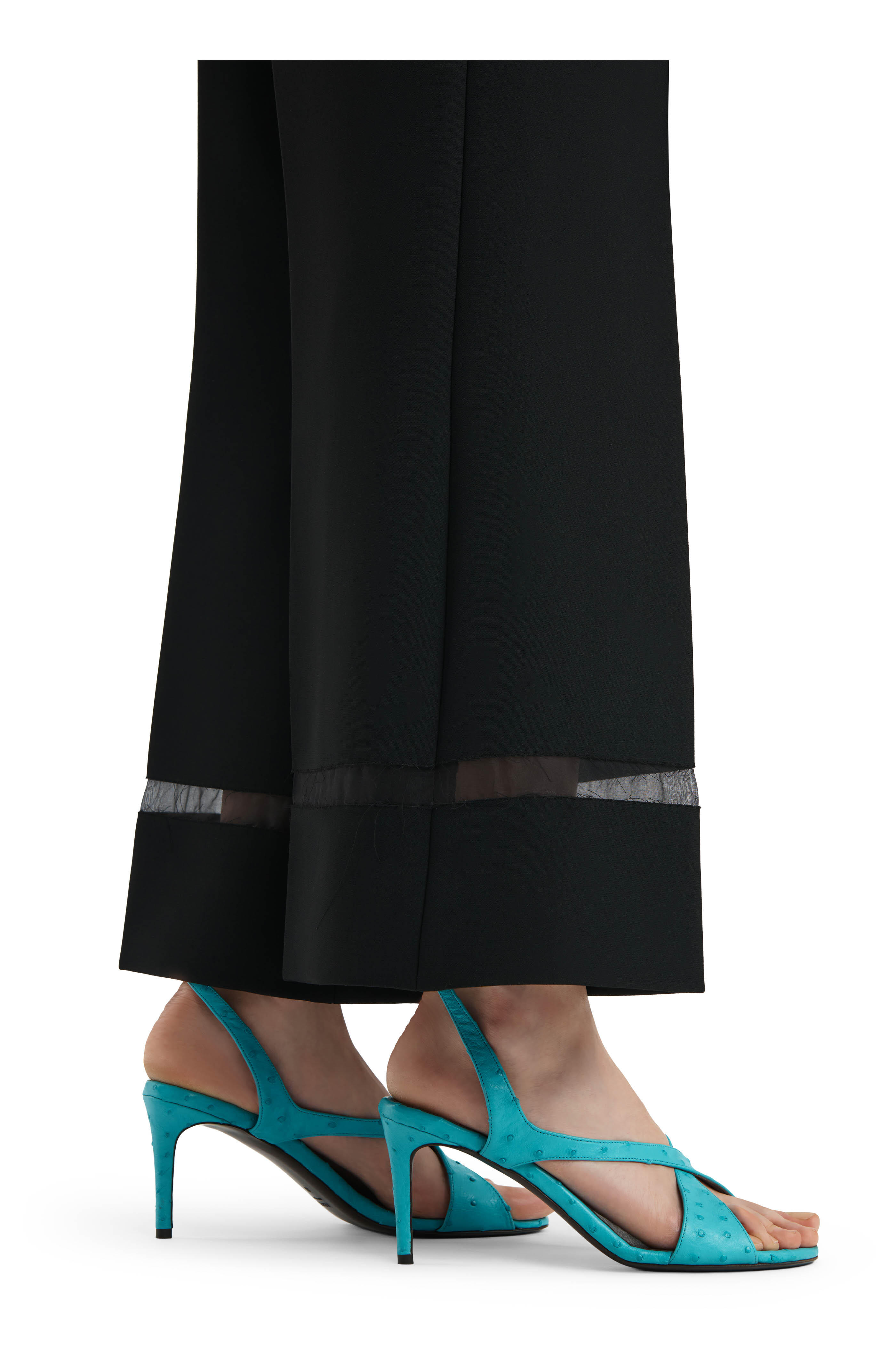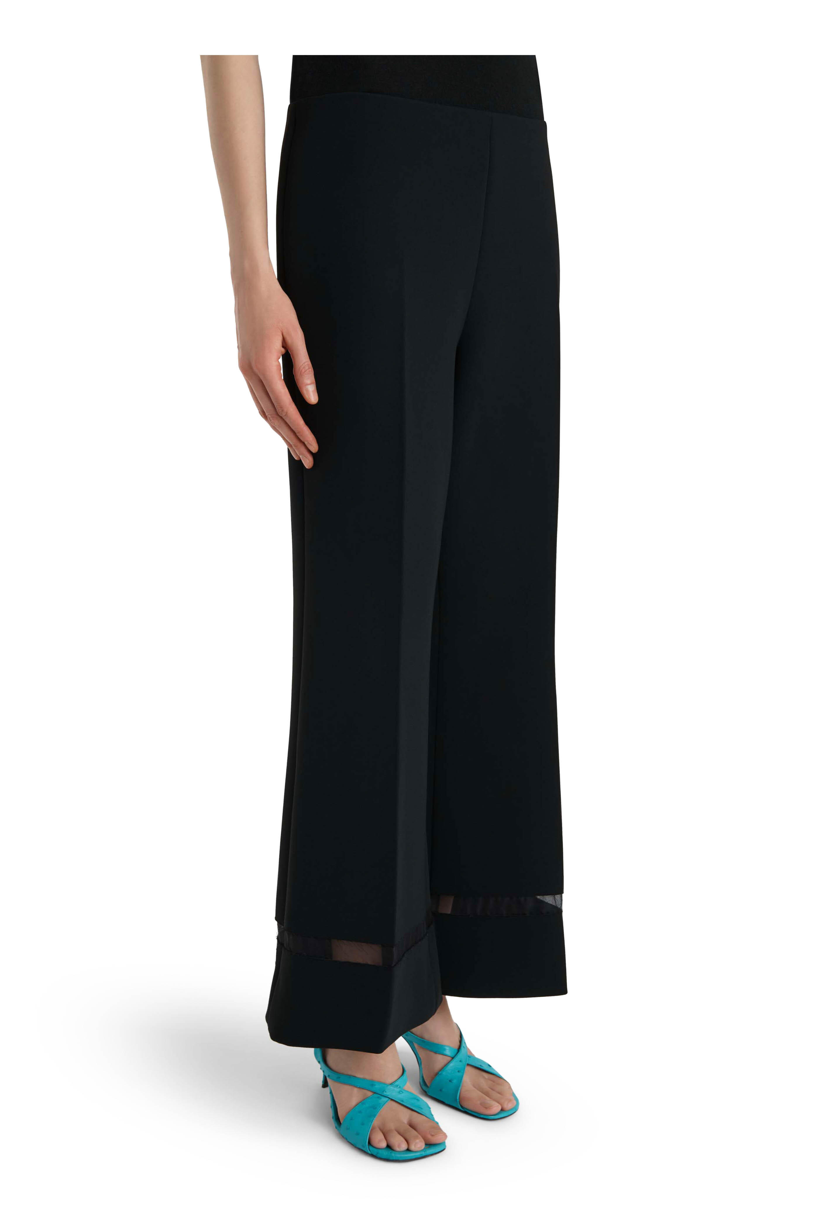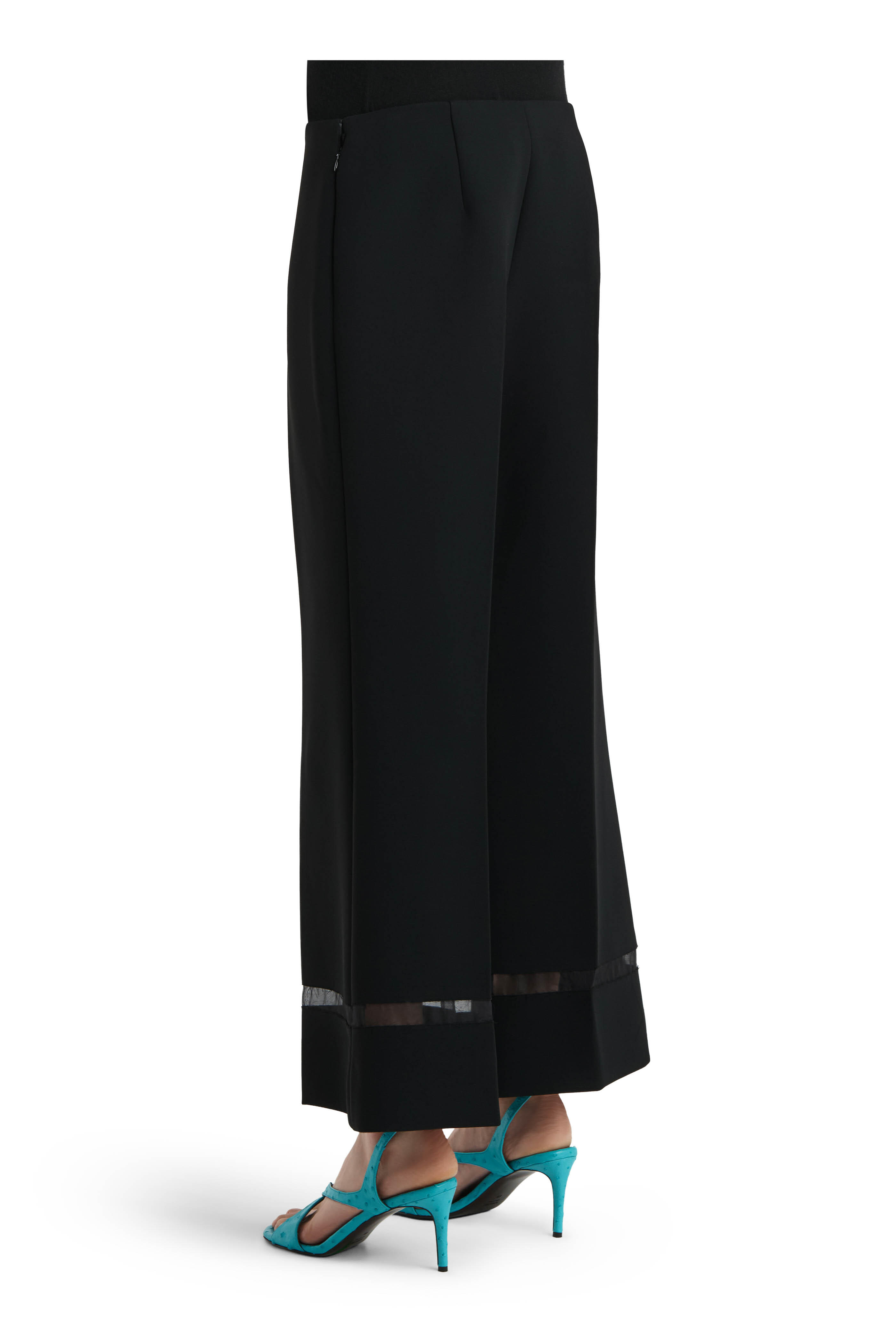 Mid rise. Flat waistband. Concealed zip closure. Wide through leg. Mesh stripe detail at hem. Imported. Waist 27.25” (US 4). Ankle length. 100% polyester. Dry clean.
