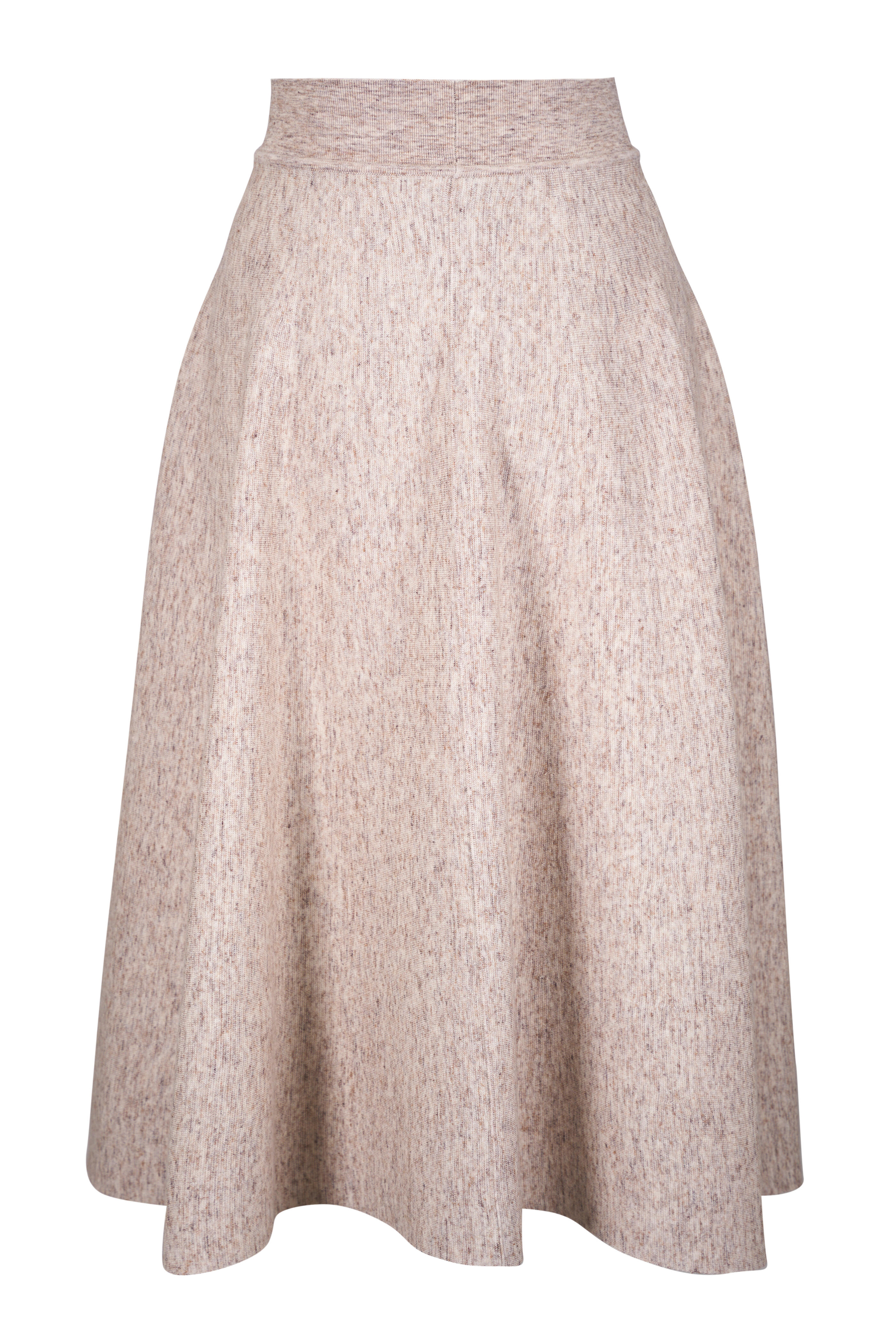 Ribbed elasticated waistband with inner drawstring. Flare cut. Mélange fabric. Unlined. Made in Italy. Color : Quinoa Cream Biancore (B5WO). Mid-rise. 51% cashmere, 40% virgin wool, 9% linen. Dry clean.