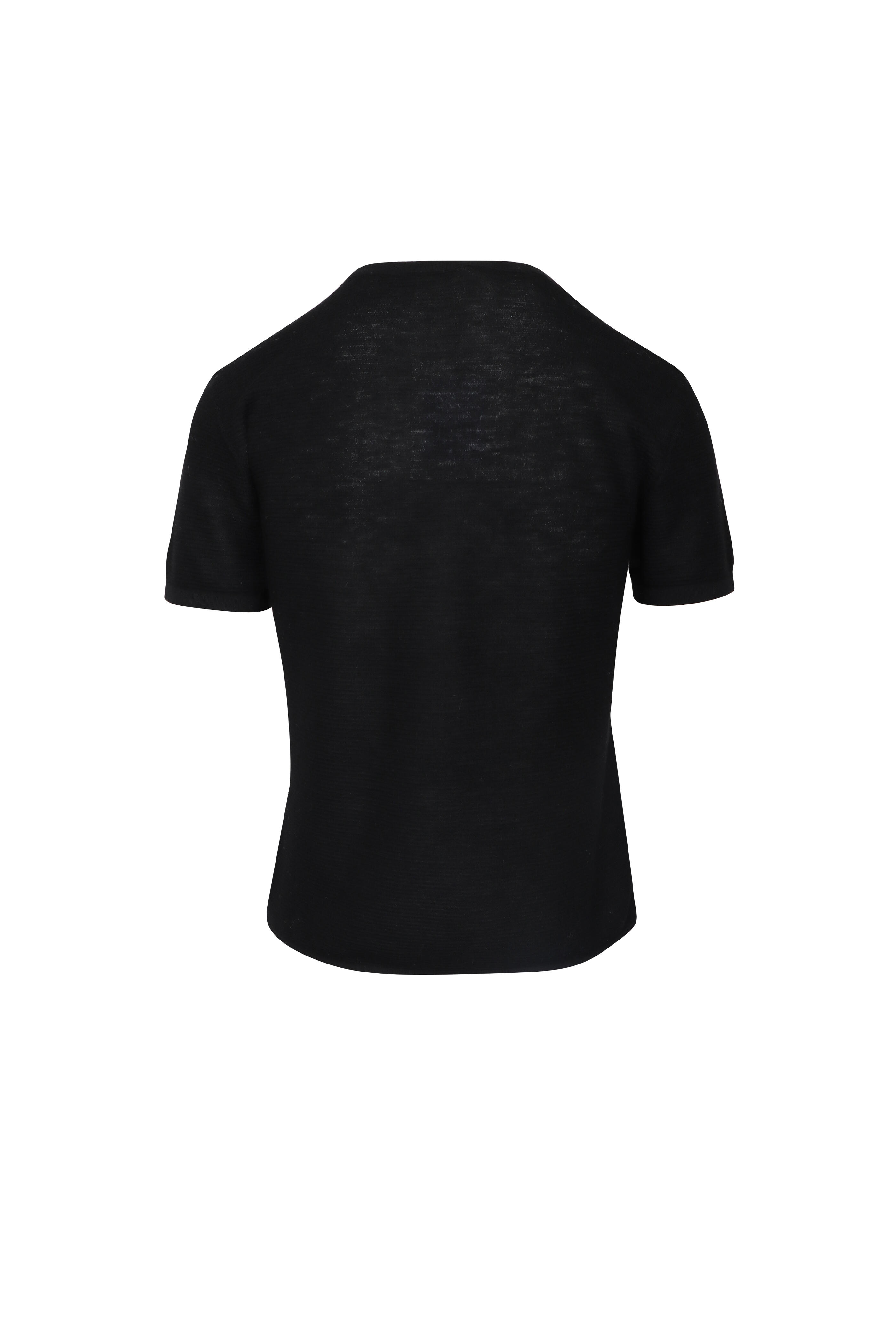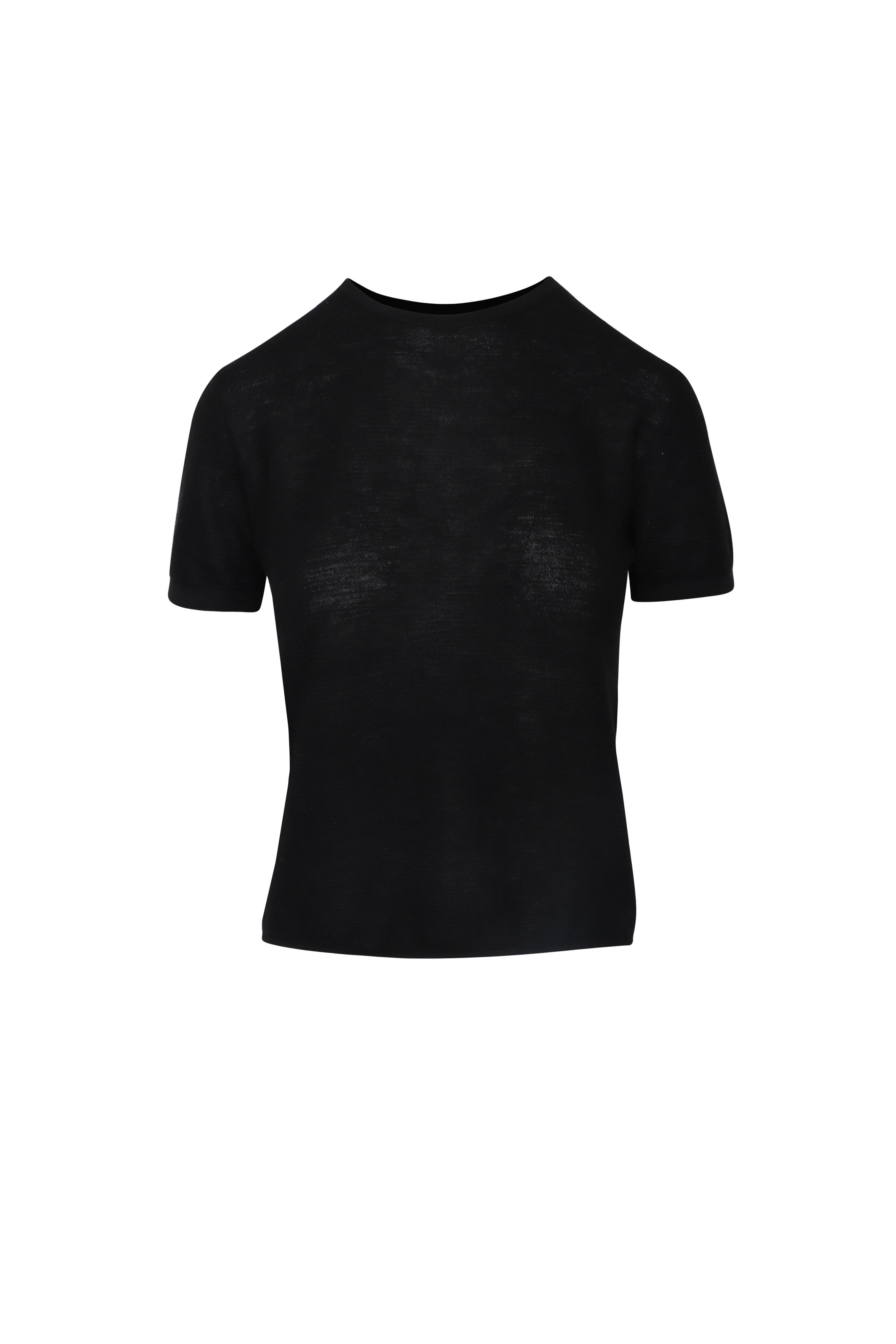 Crewneck. Short sleeves. Shrunken fit. Straight hem. Imported. 100% cashmere. Dry clean.