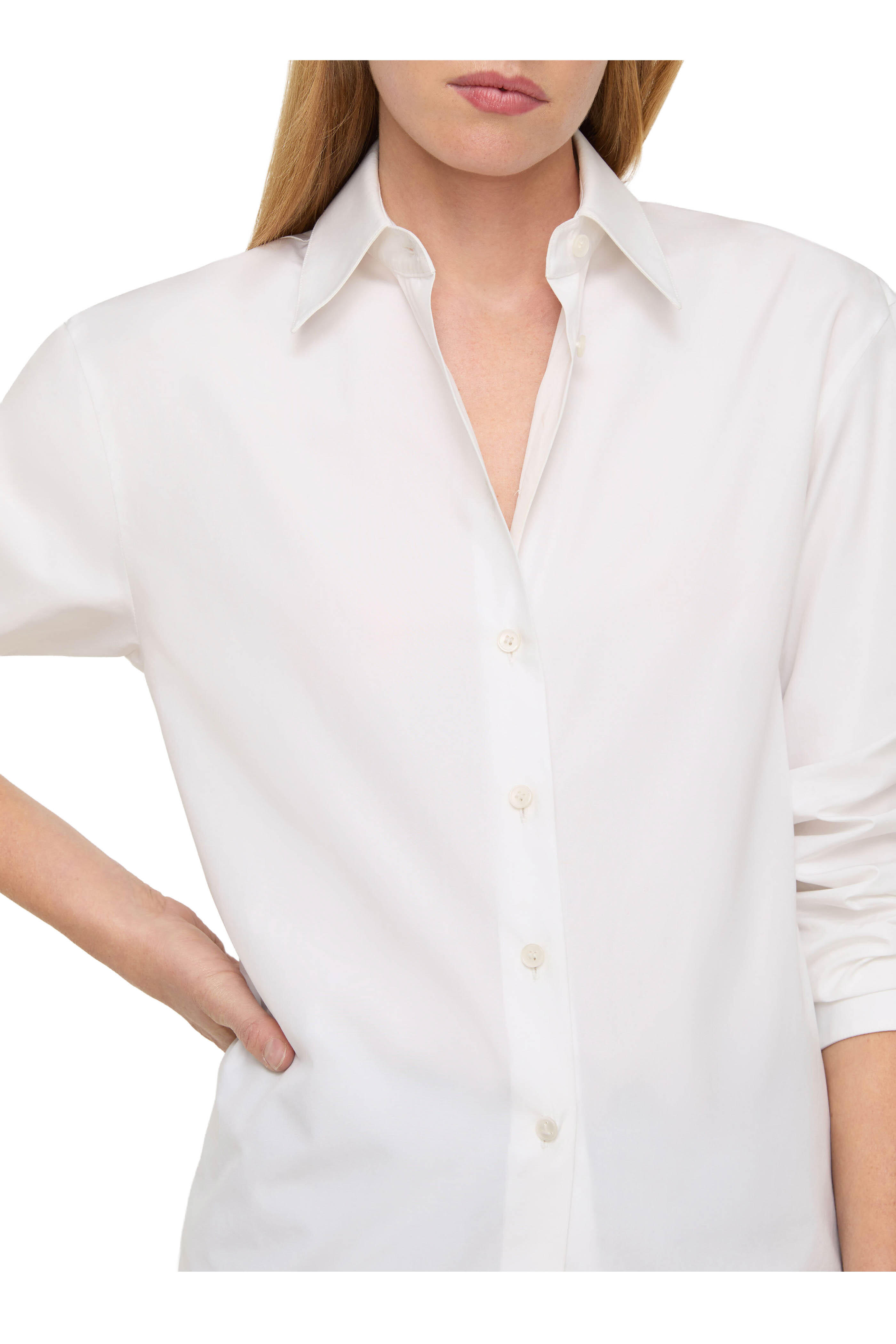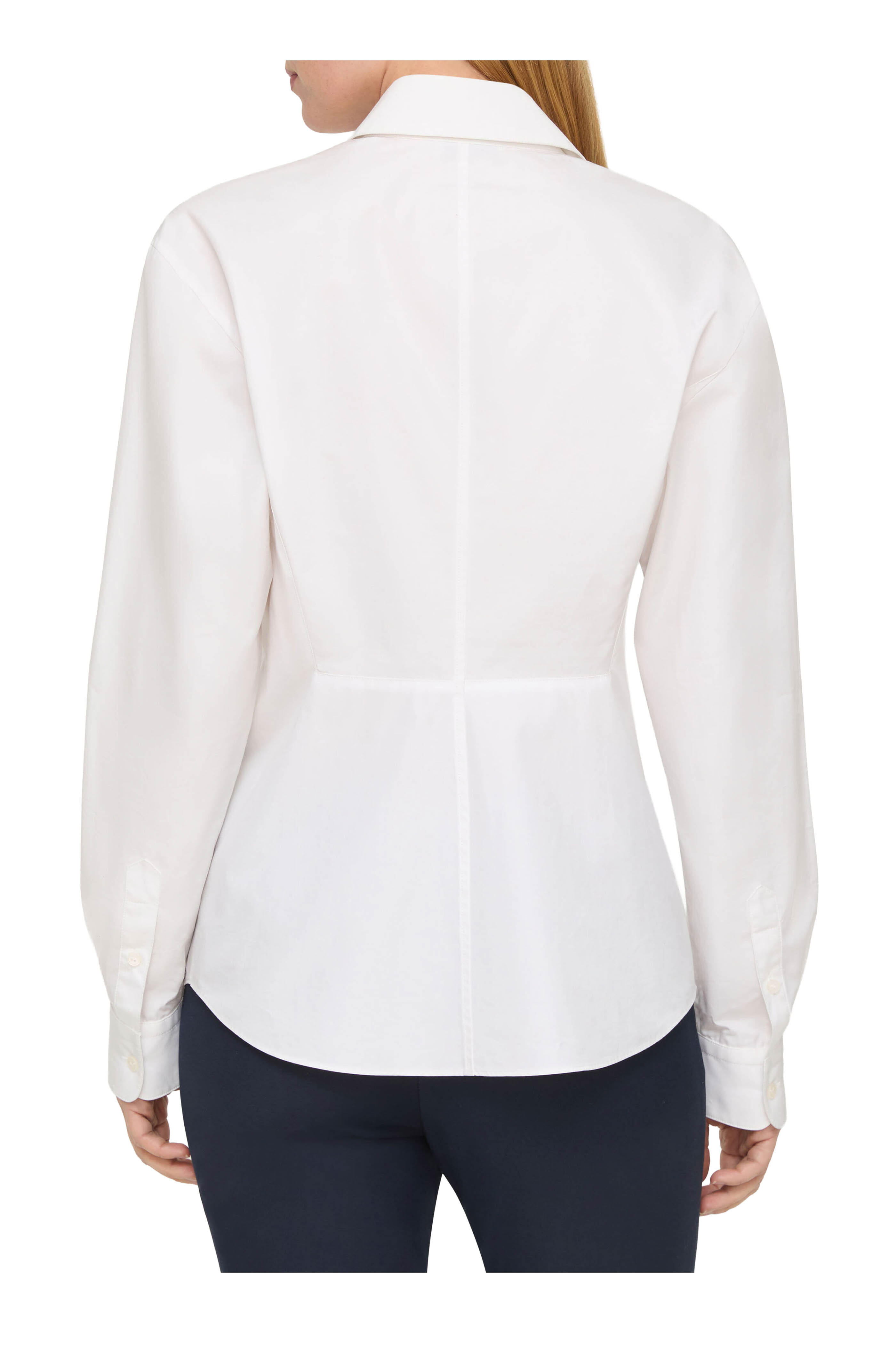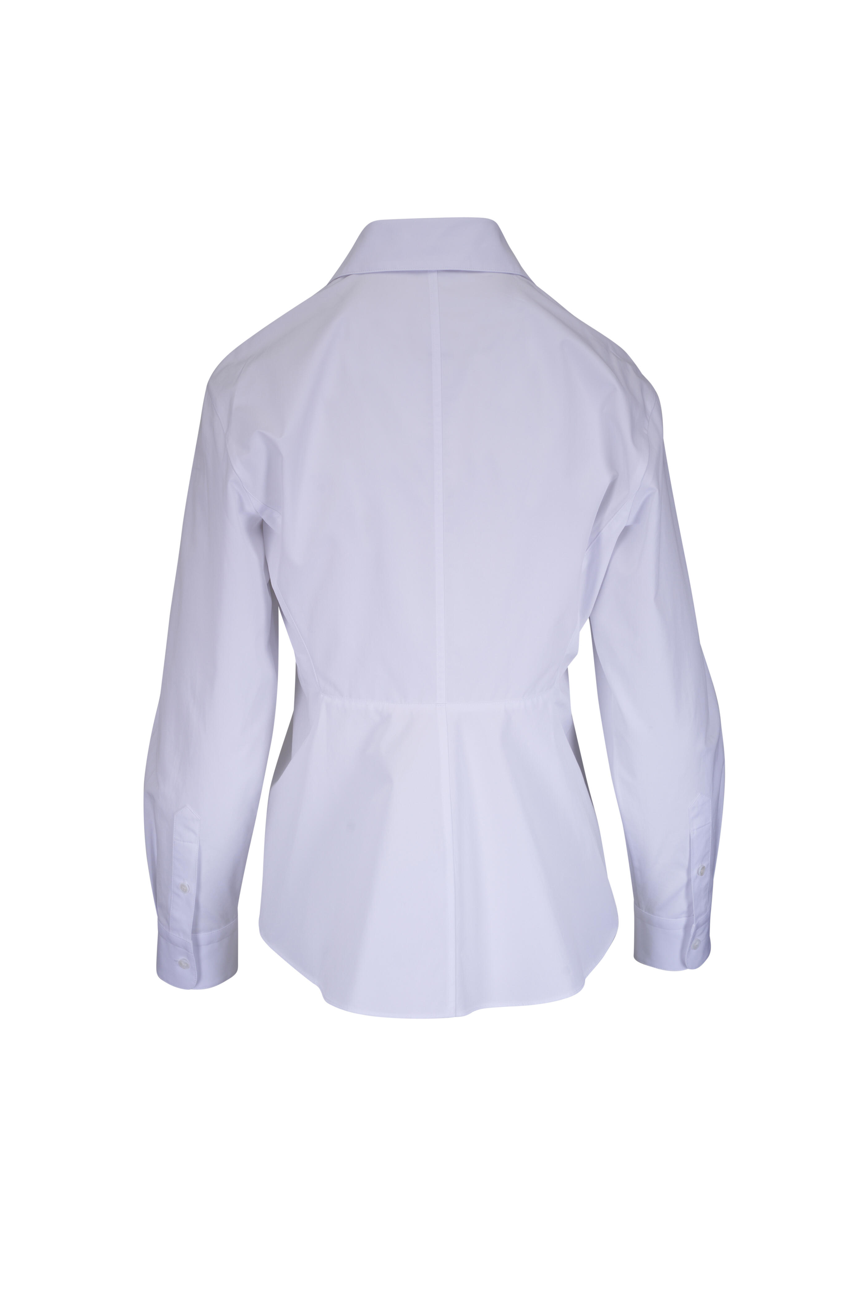 White Cotton Poplin Cinched Waist Button-Up Shirt