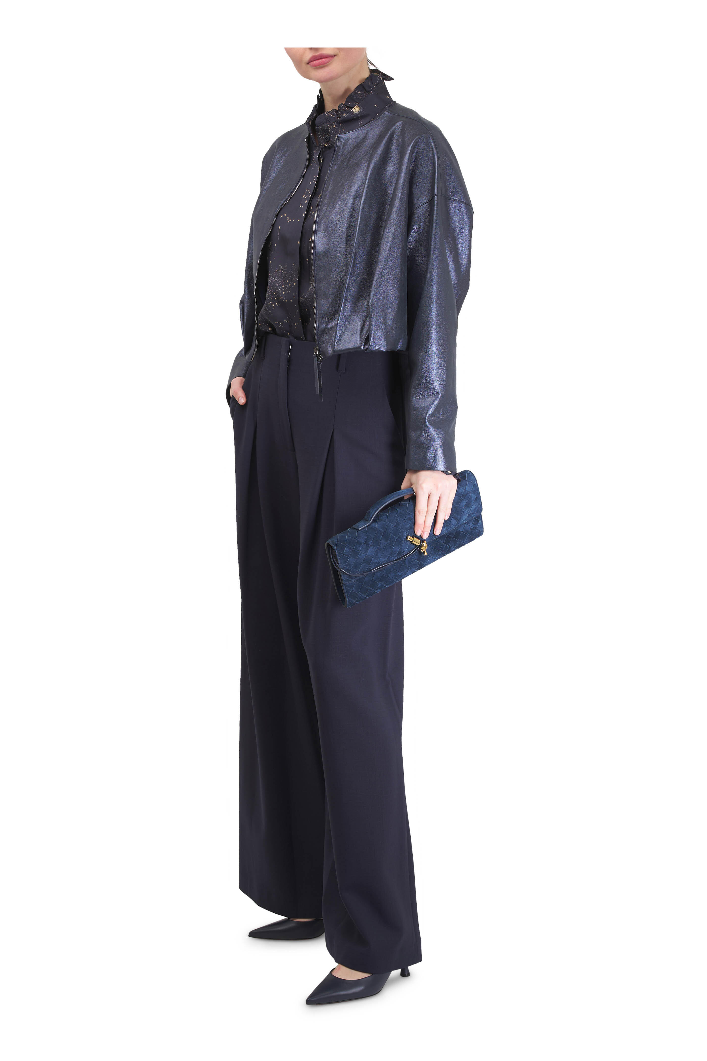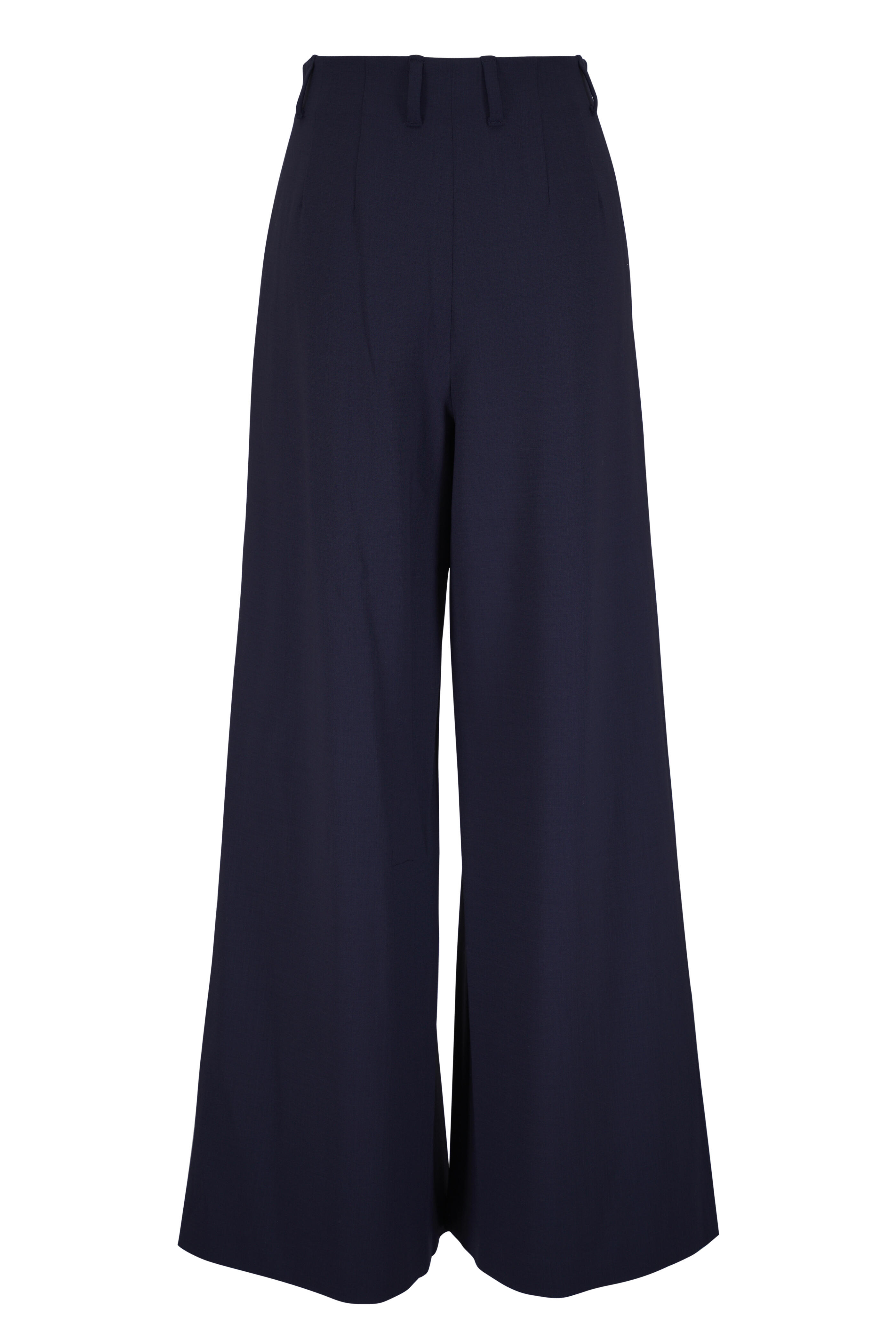 Warren Blue Ink Stretch Wool Pleated Wide Leg Pant