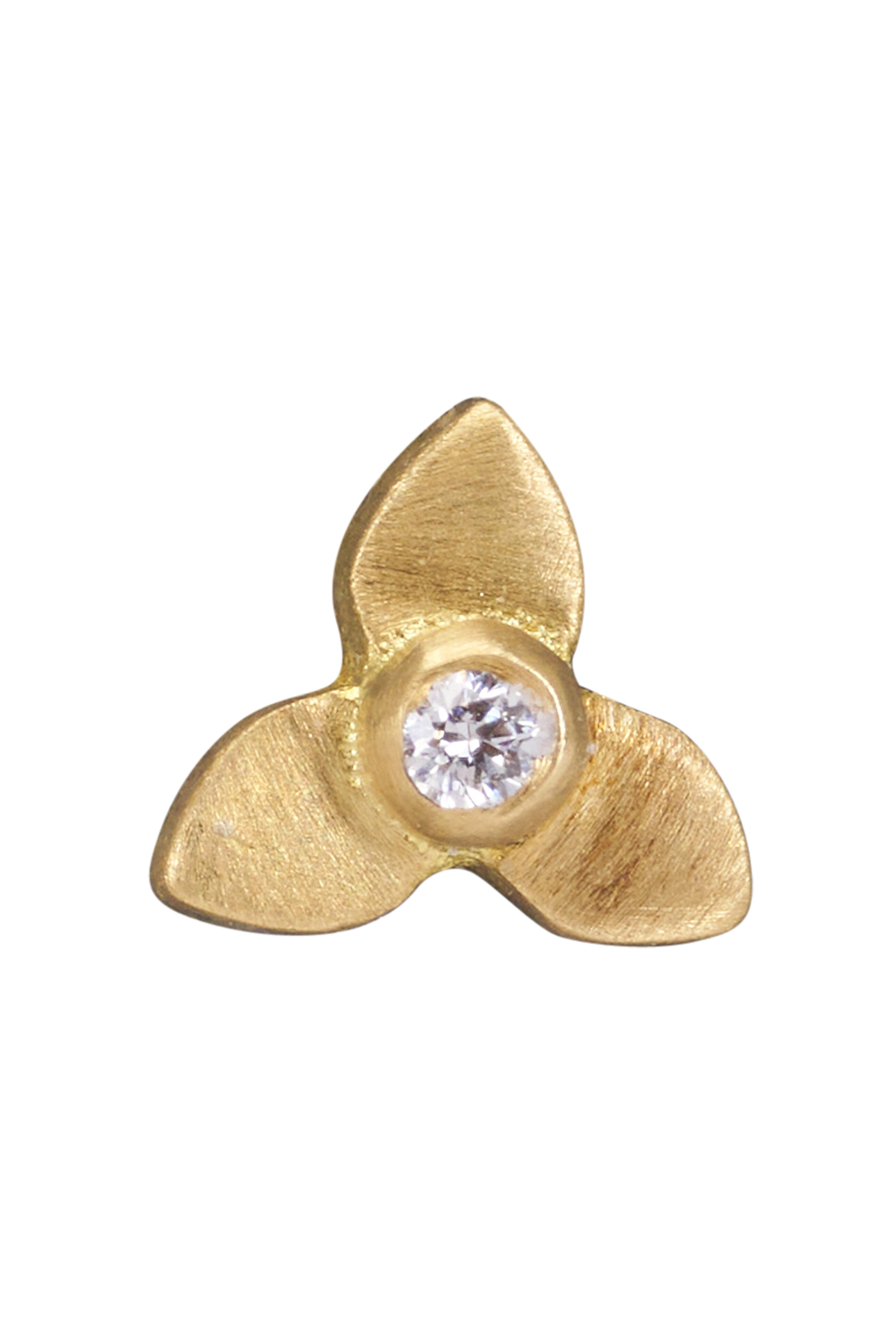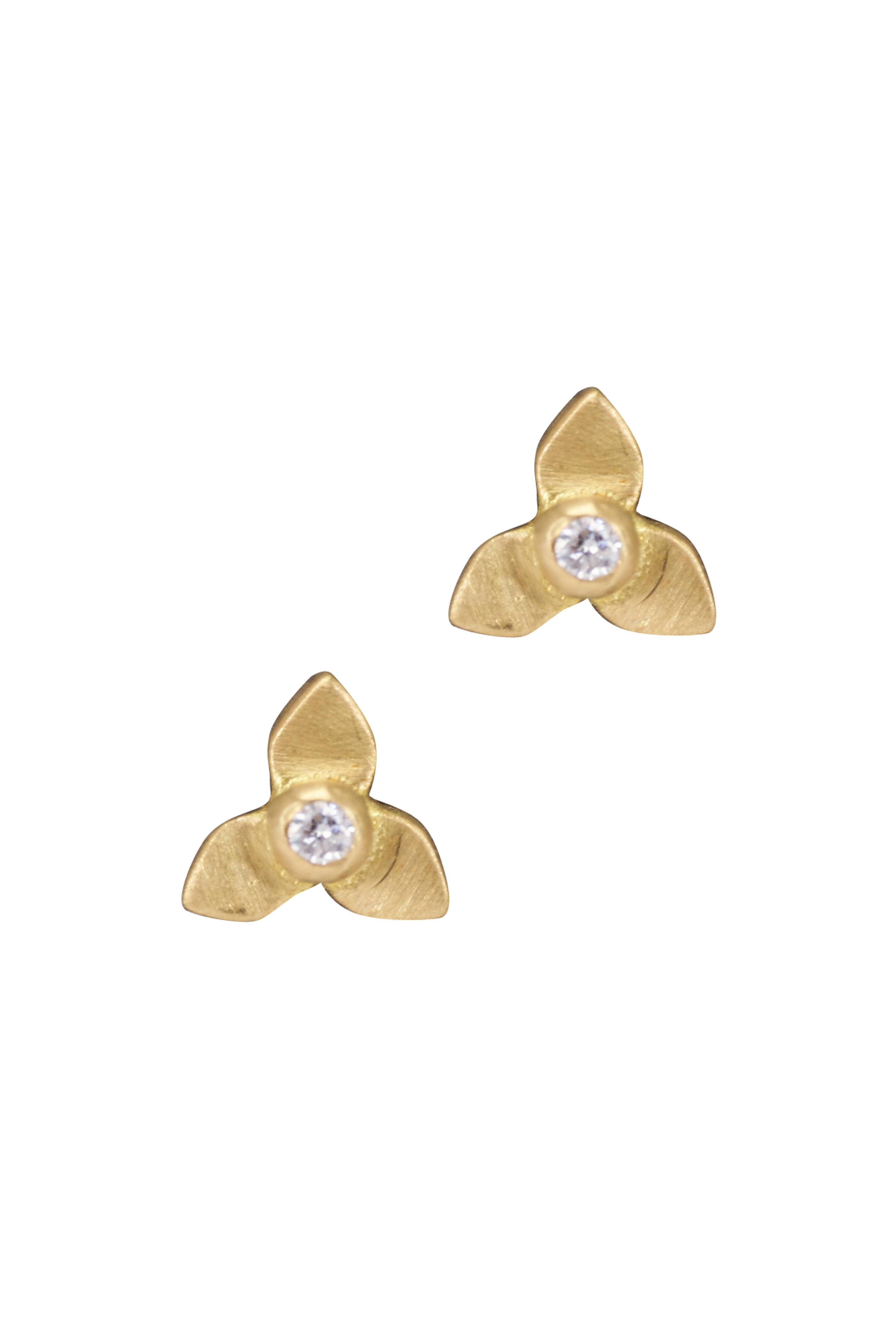 20k Yellow Gold Diamond 3 Petal Flower Stud