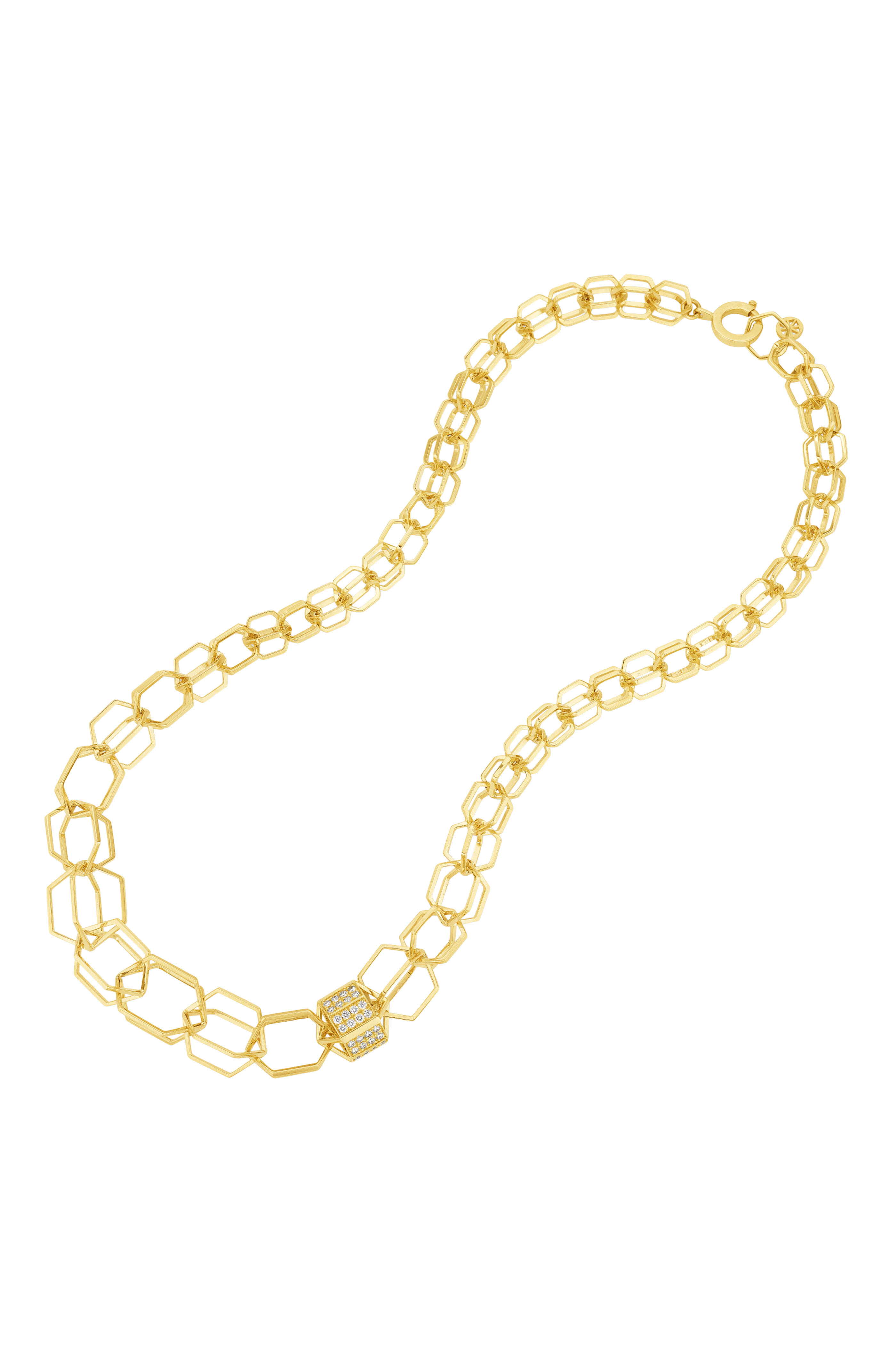 18k Yellow Gold Pave Diamond Link Necklace