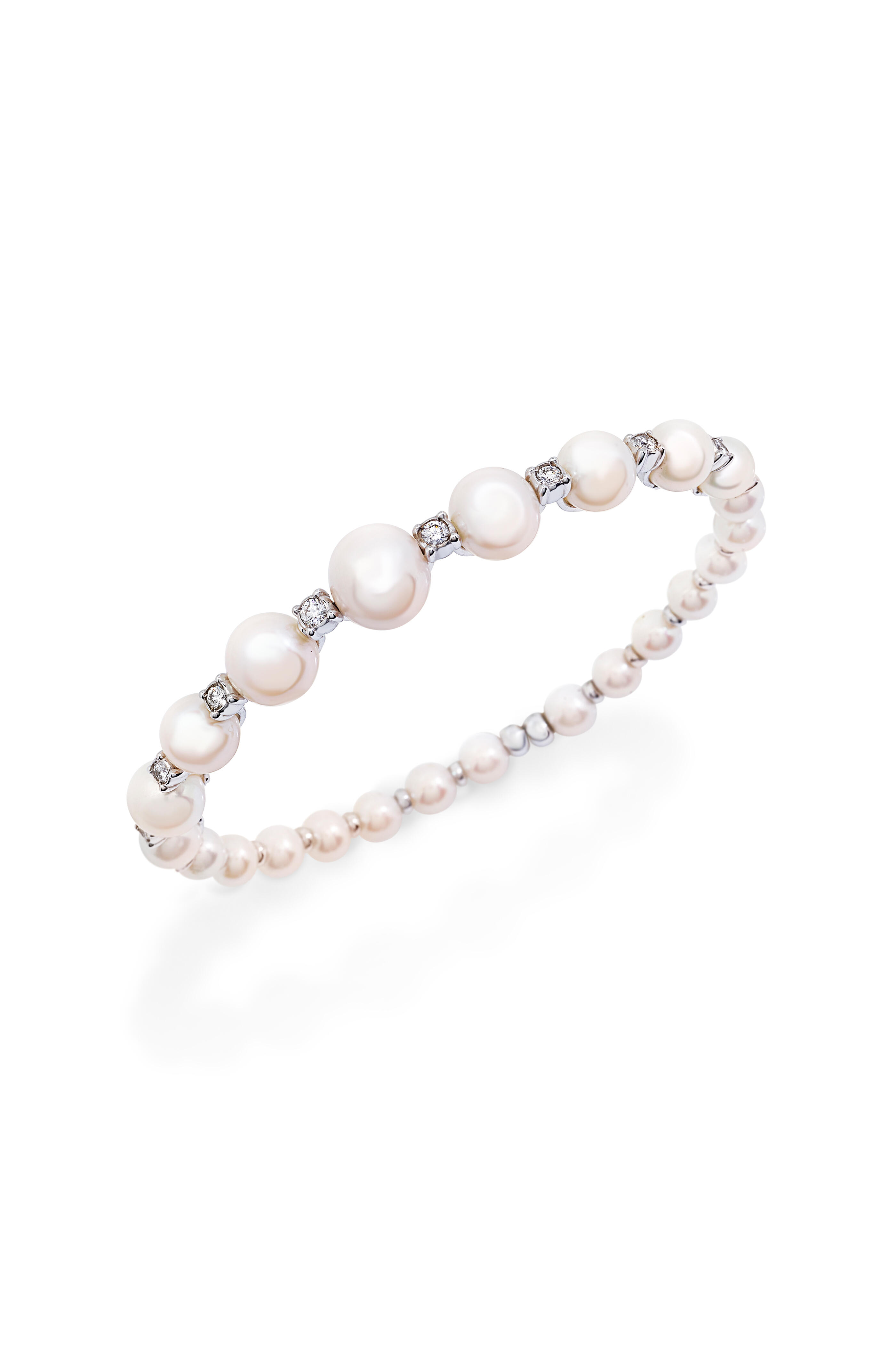 18k White Gold. 0.395 ct Diamond. Freshwater Pearl.