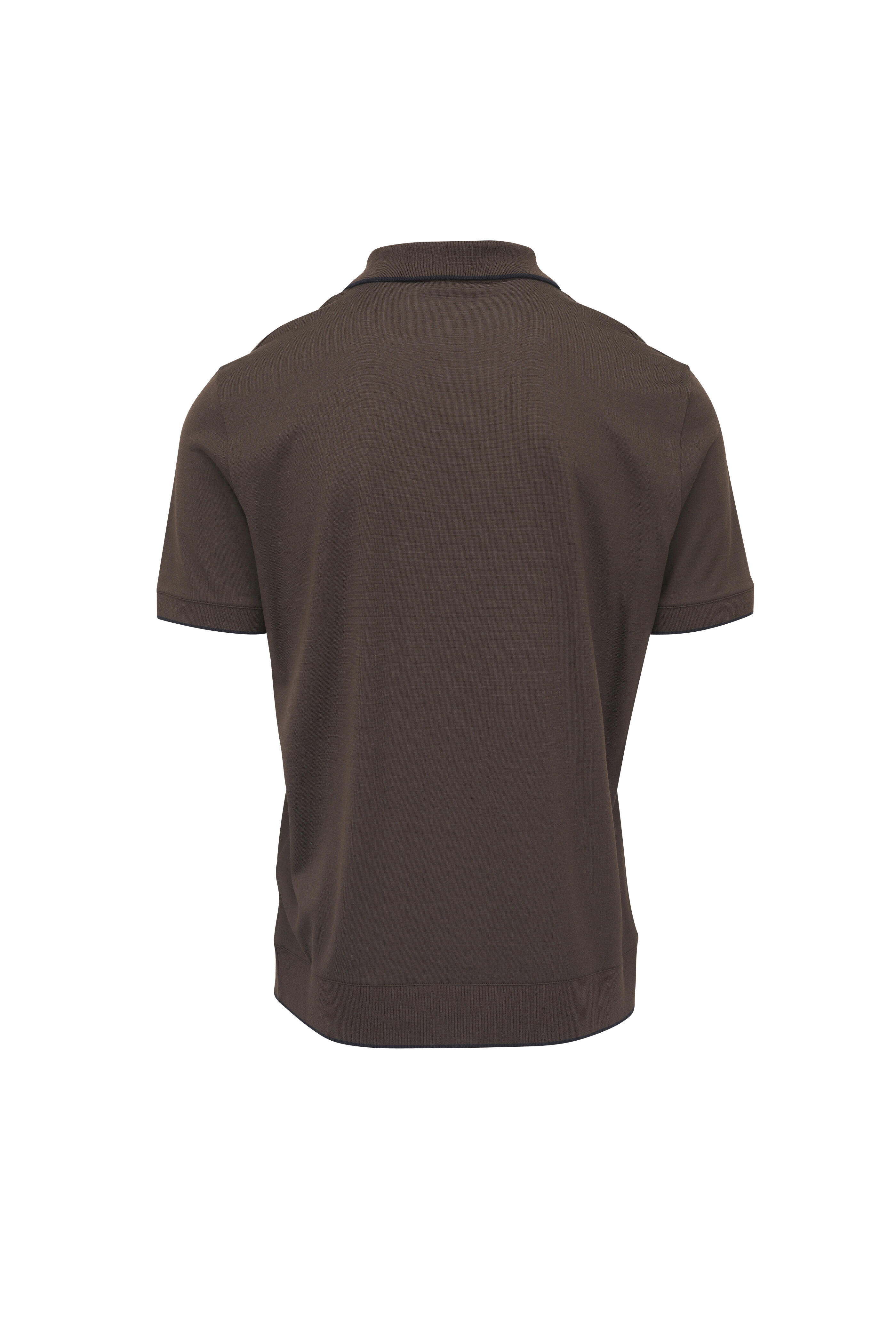 Spread collar. V-neckline. Ribbed trim. Made in Italy. 100% virgin wool. Dry clean.
