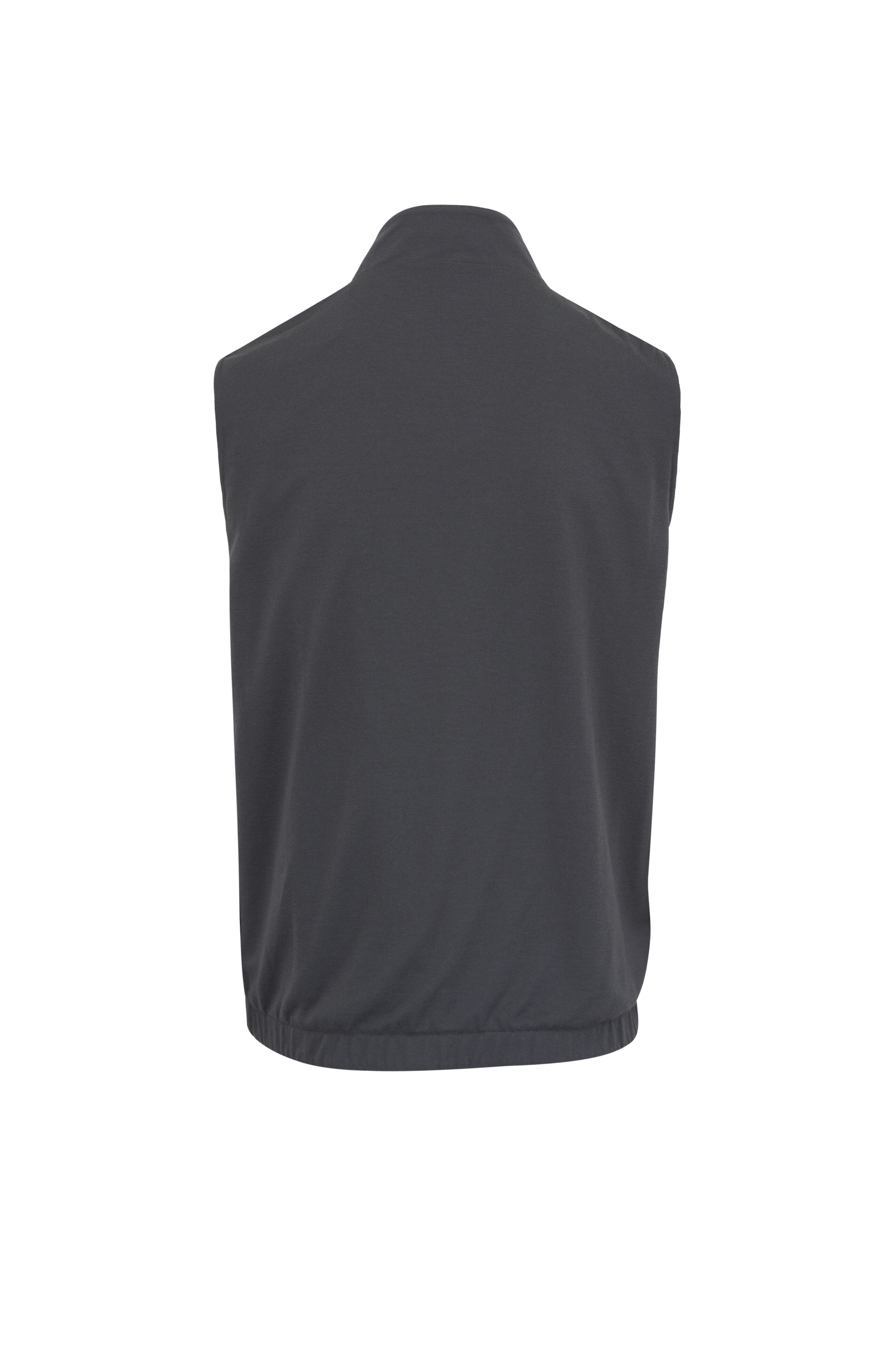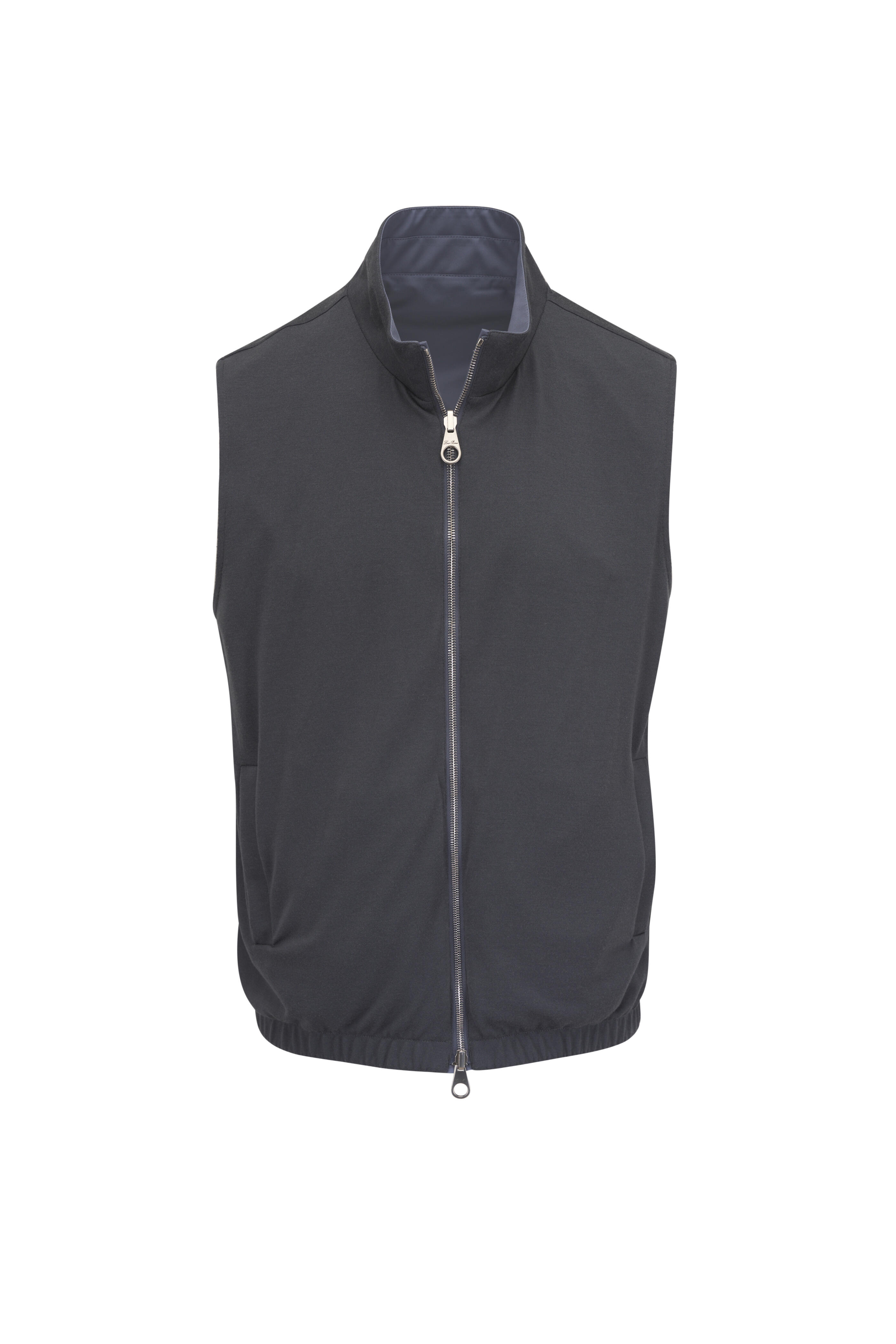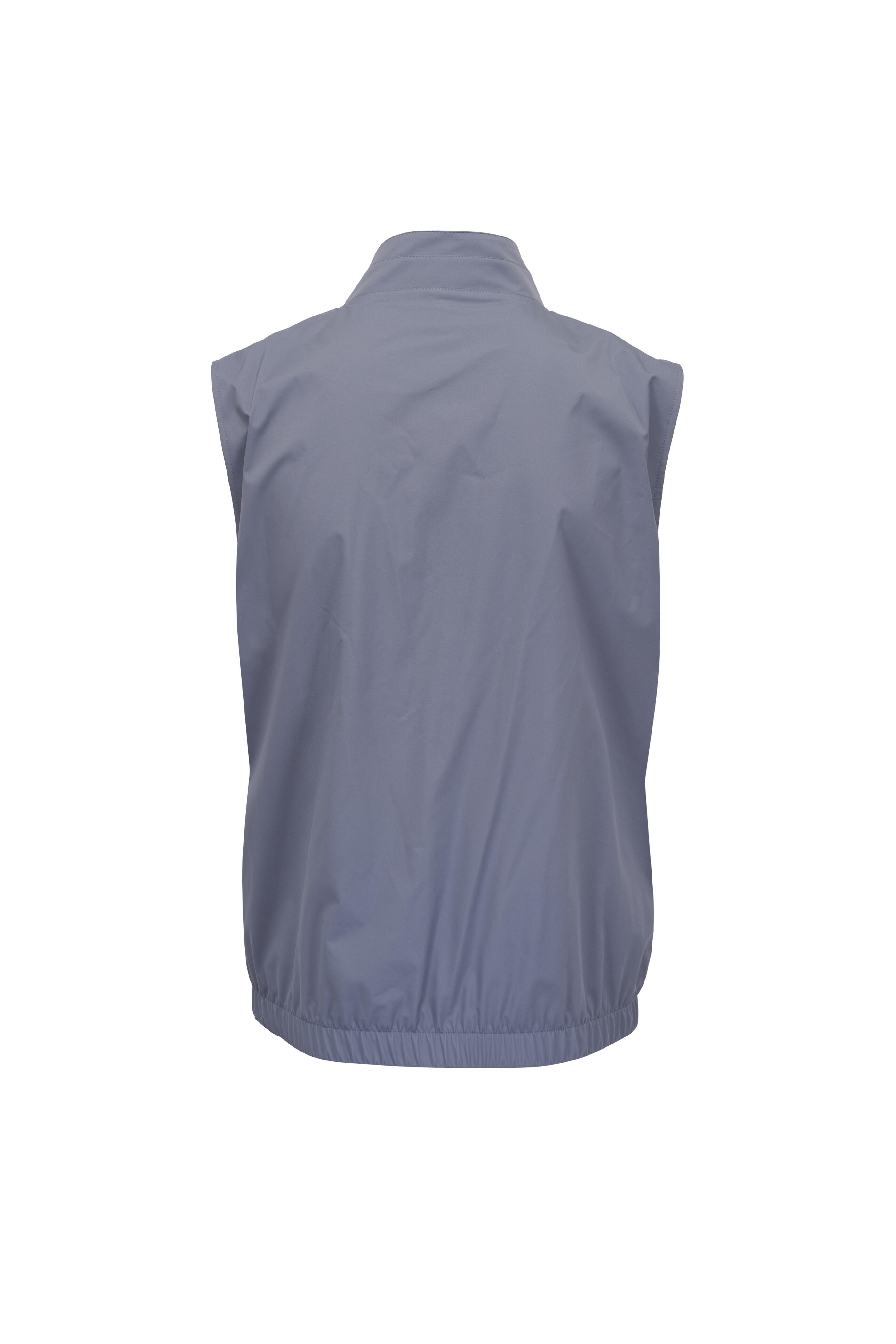 Nylon, wool; Reversible. Stand collar. Two-way front zip placket. Lower waist side pockets. Elasticized waist. Made in Italy. Dry clean.