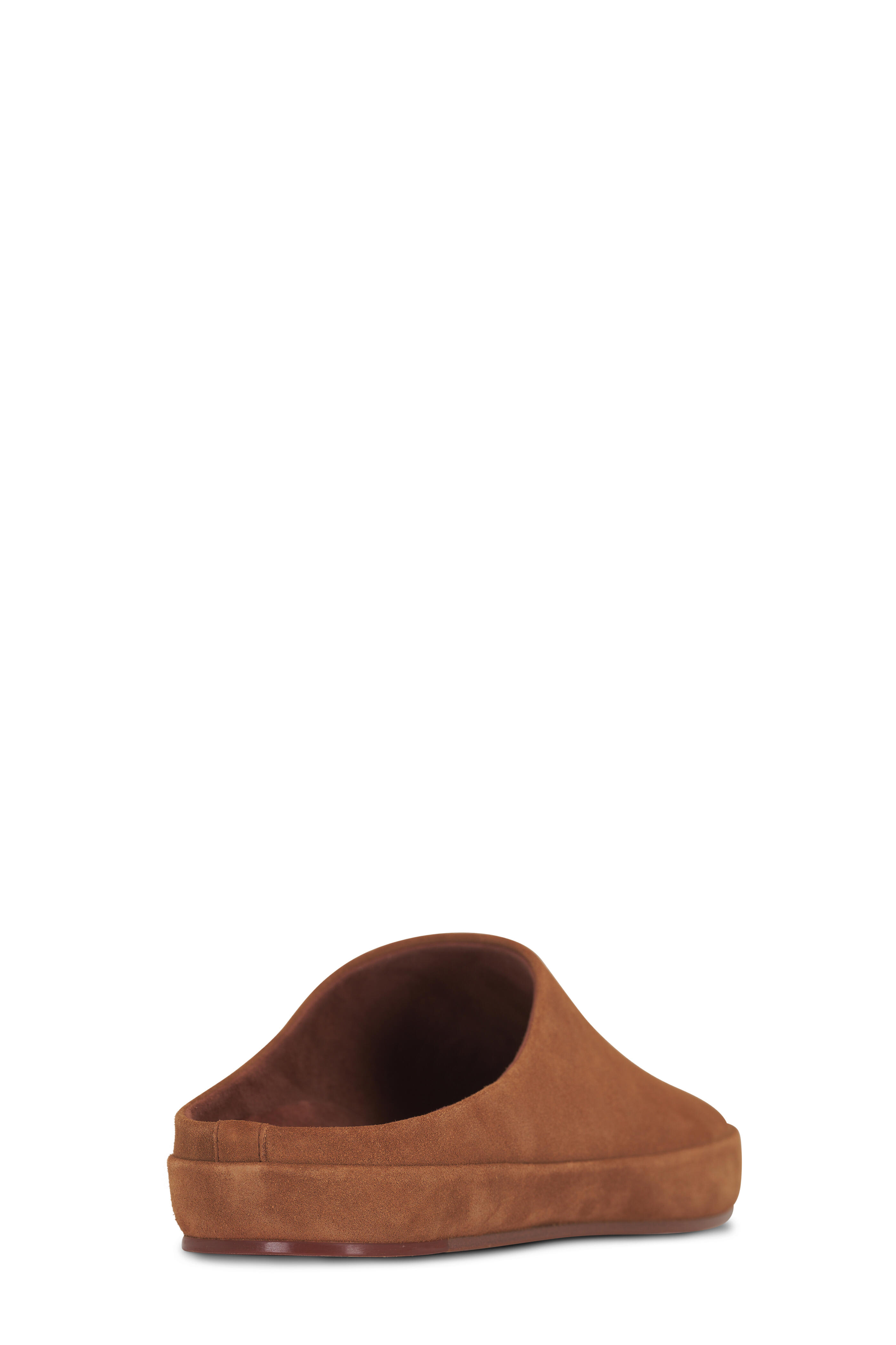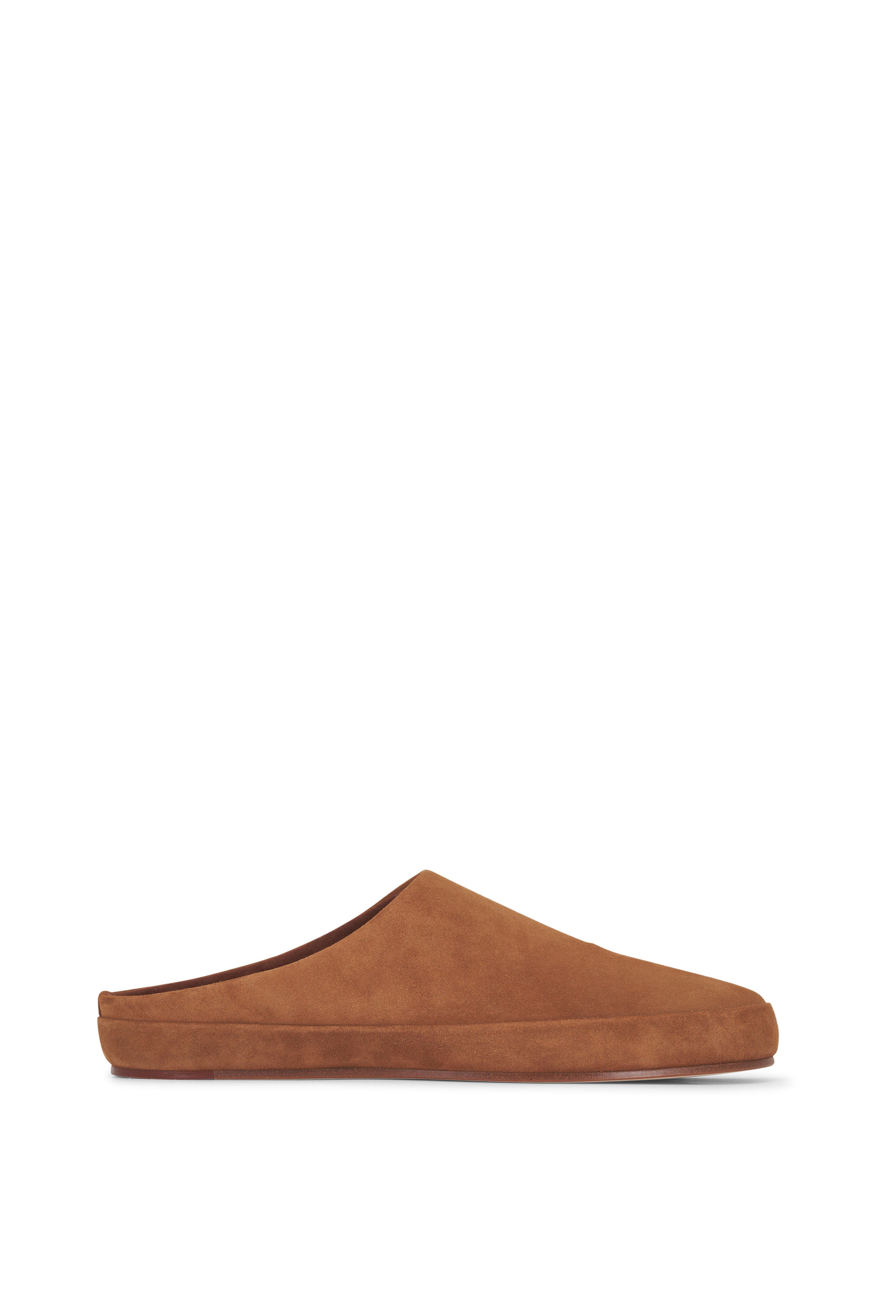 Suede upper and lining. Rubber sole. Round toe. Slip-on style. Made in Italy. All sizes listed are in US measurements.