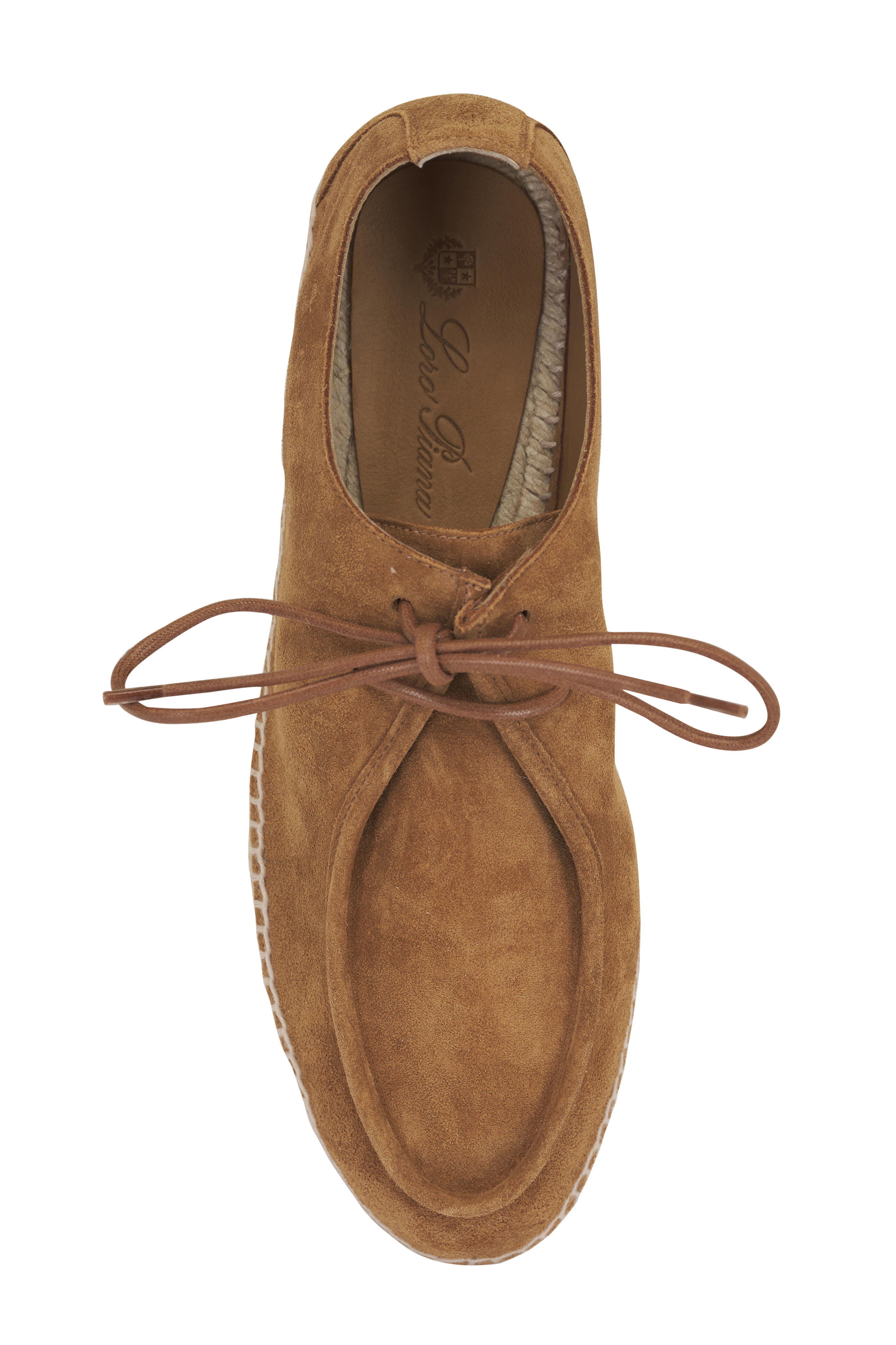 Suede upper. Moc toe. Two eyelet lace up closure; waxed cotton laces. Raffia midsole. Unlined; leather insert insole. Rubber sole. Made in Italy. Color : Light Sand Dune (H16N).