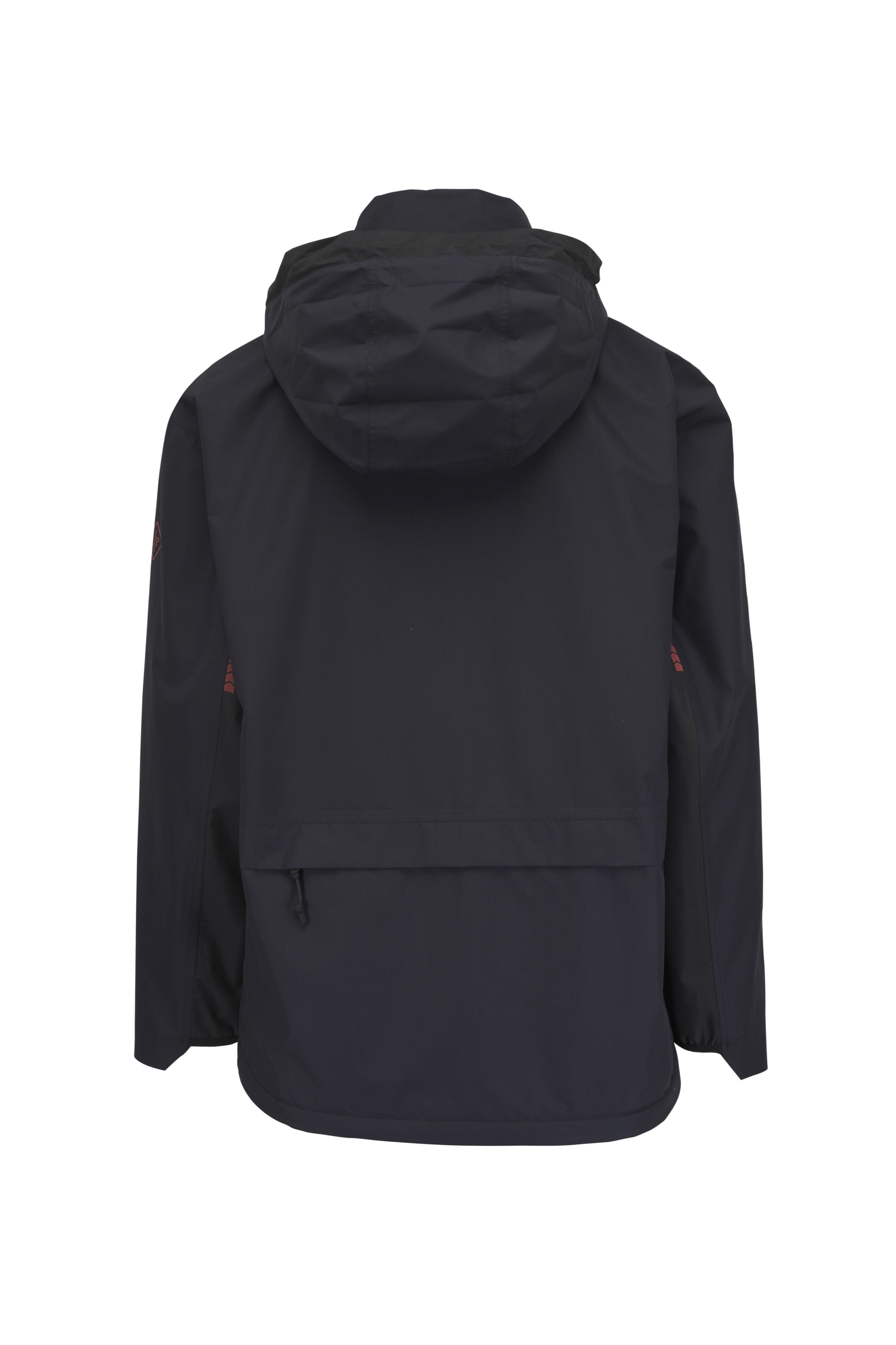 Stowaway hood with standing collar. Two-way zip fastening. Two inner and two outer side entry pockets with zip fastening. Lined in mesh. Made in Italy. 100% polyester. Dry clean.