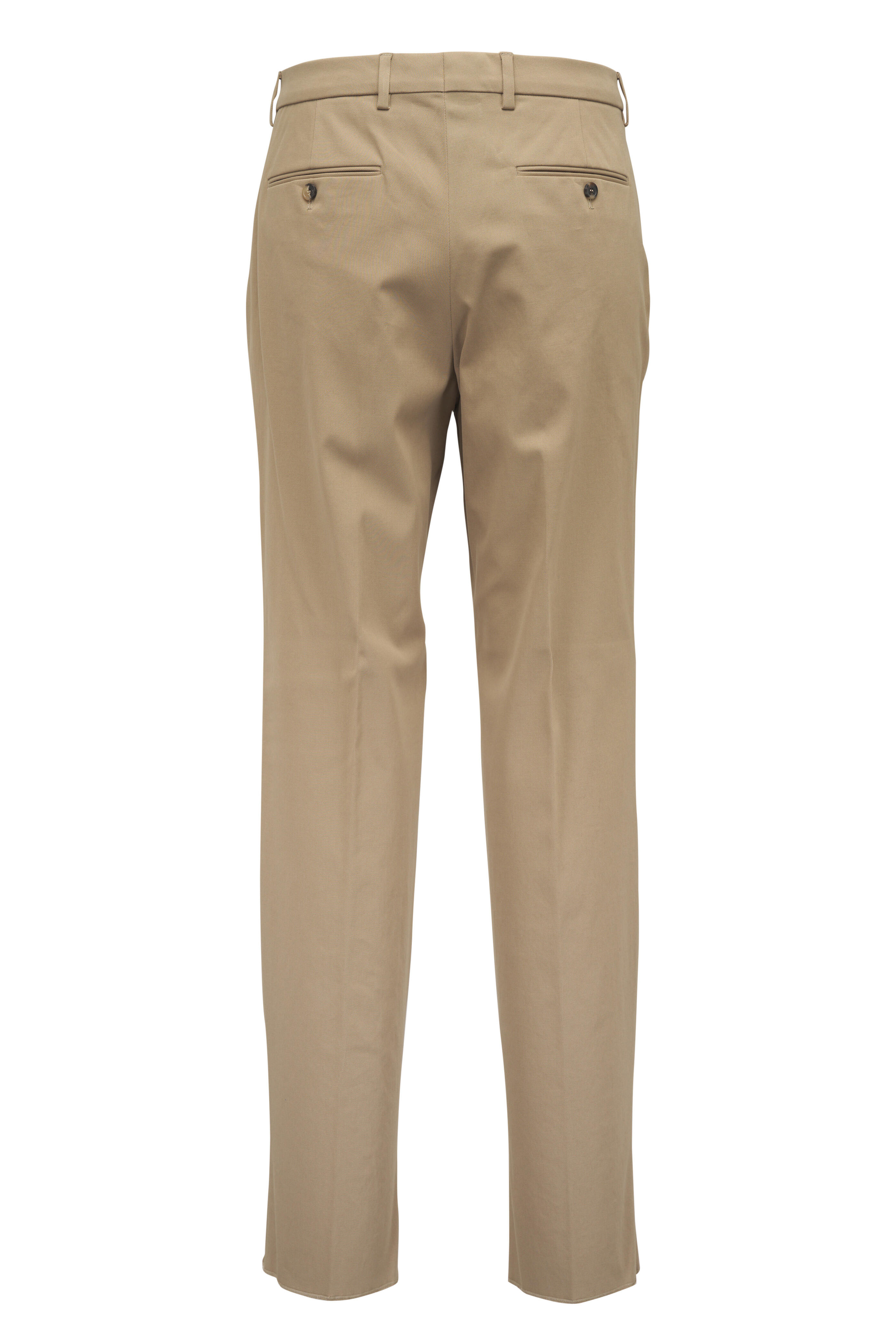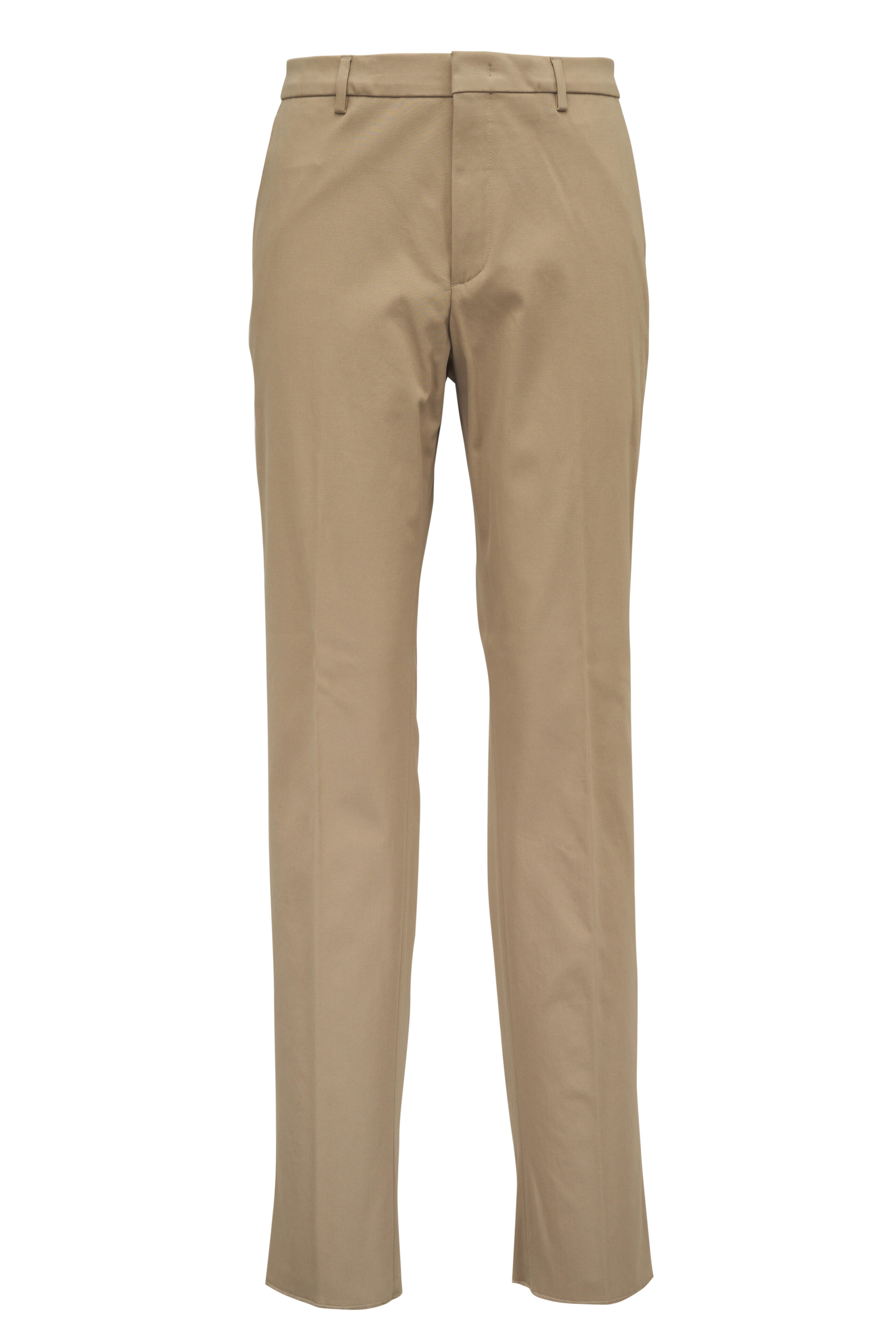 Belt loops; hook and bar closure. Side slip pockets; rear welt pockets. Straight hem. Made in Italy. 36" Inseam (size 36 R). 98% cotton, 2% elastane. Machine wash.
