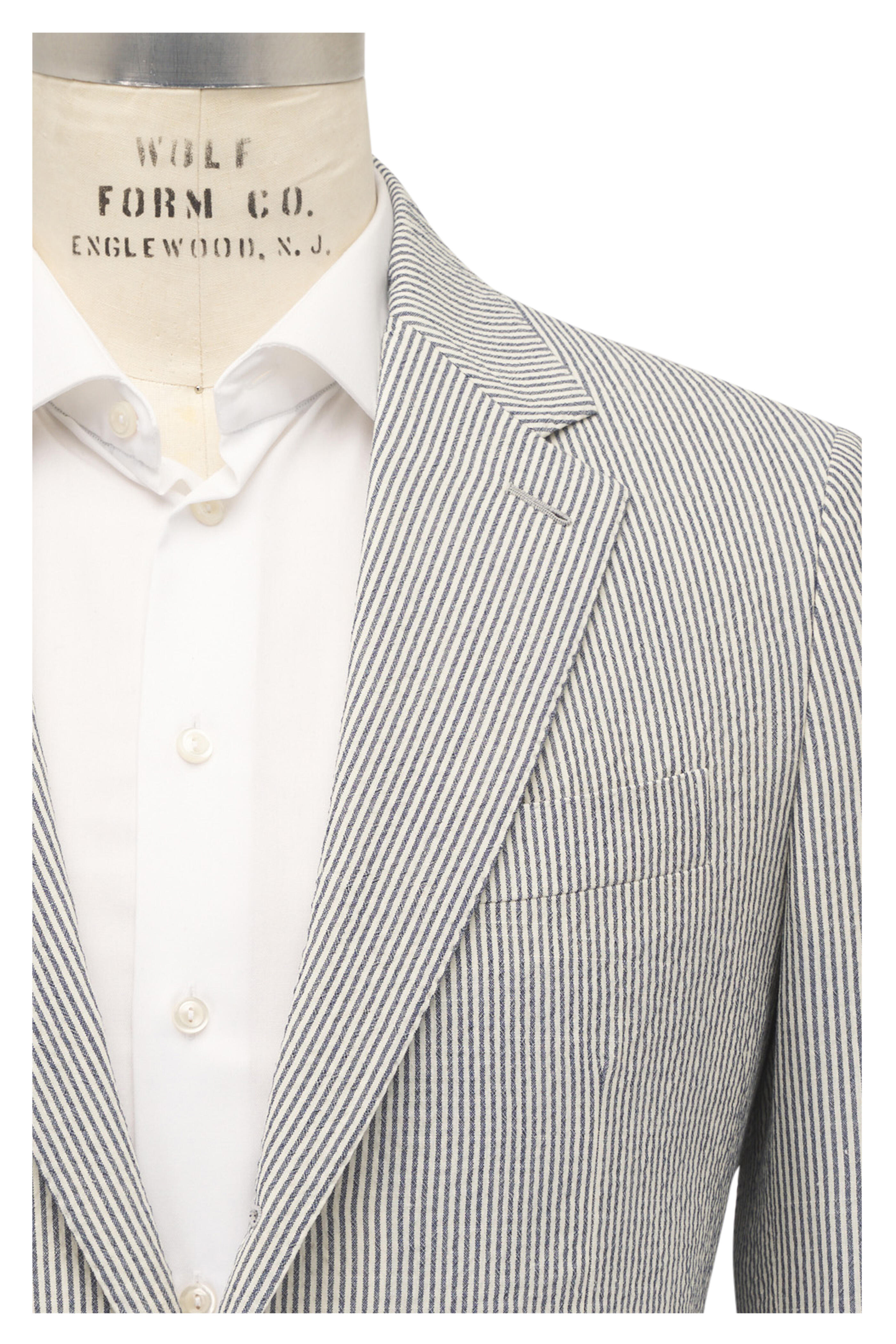 Navy Striped Linen Seersucker Sportcoat