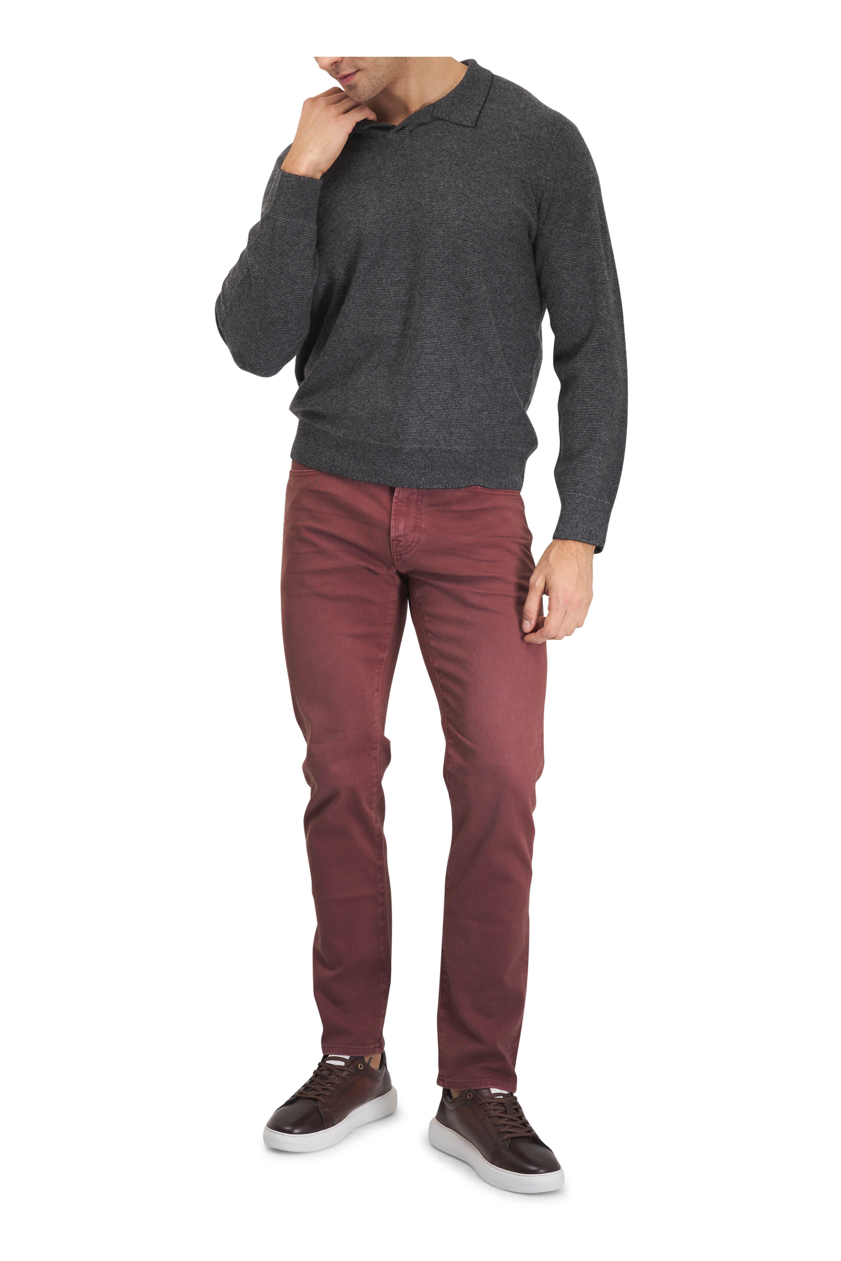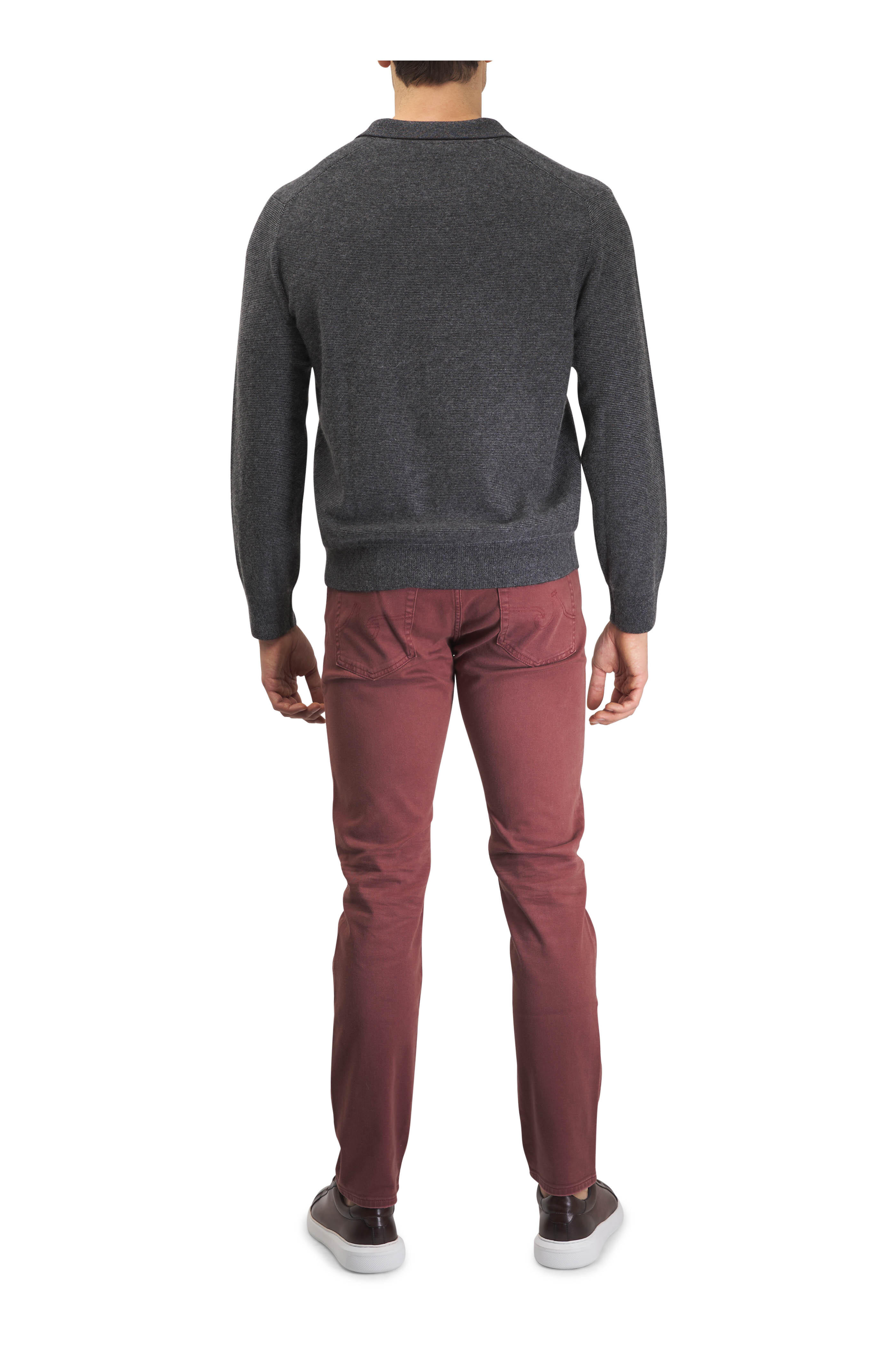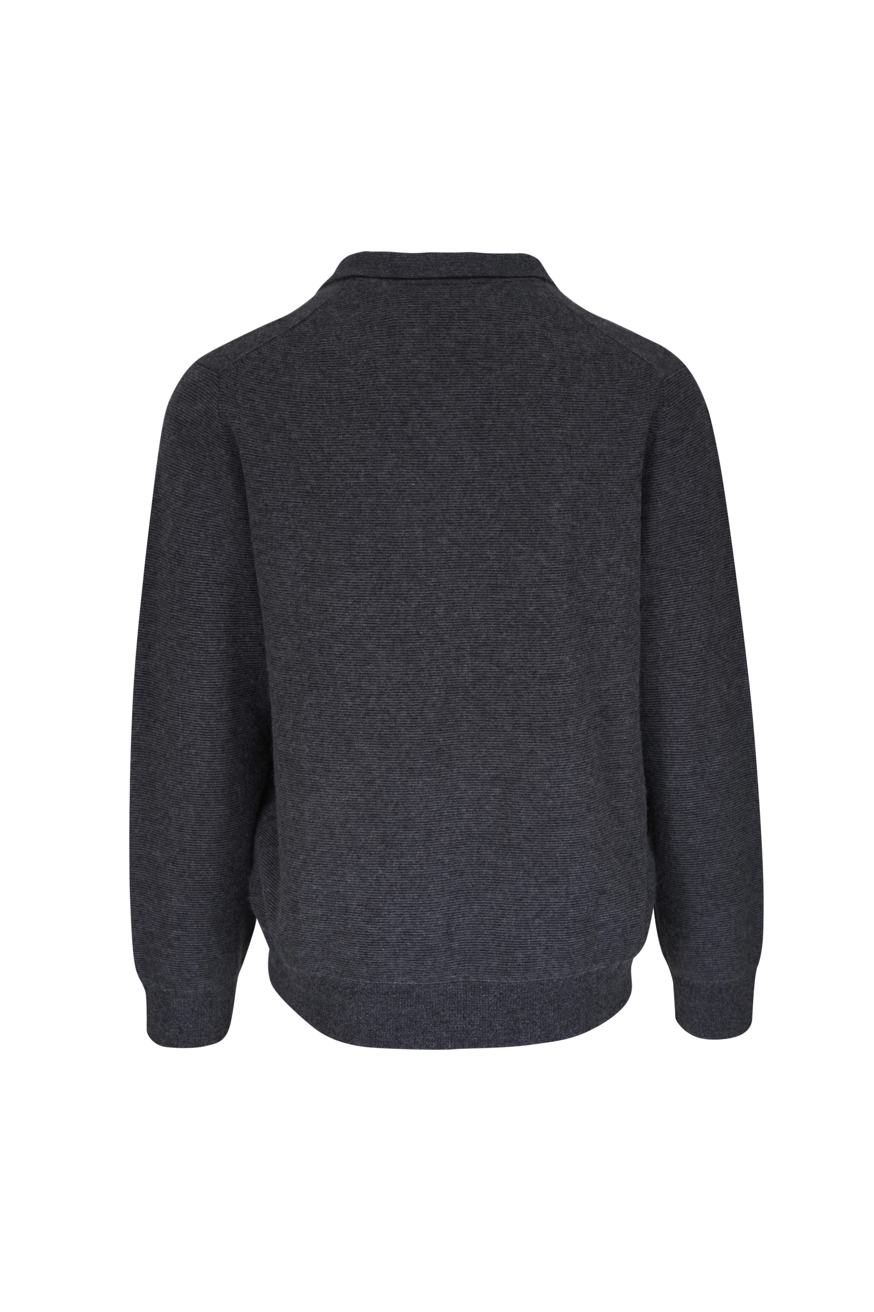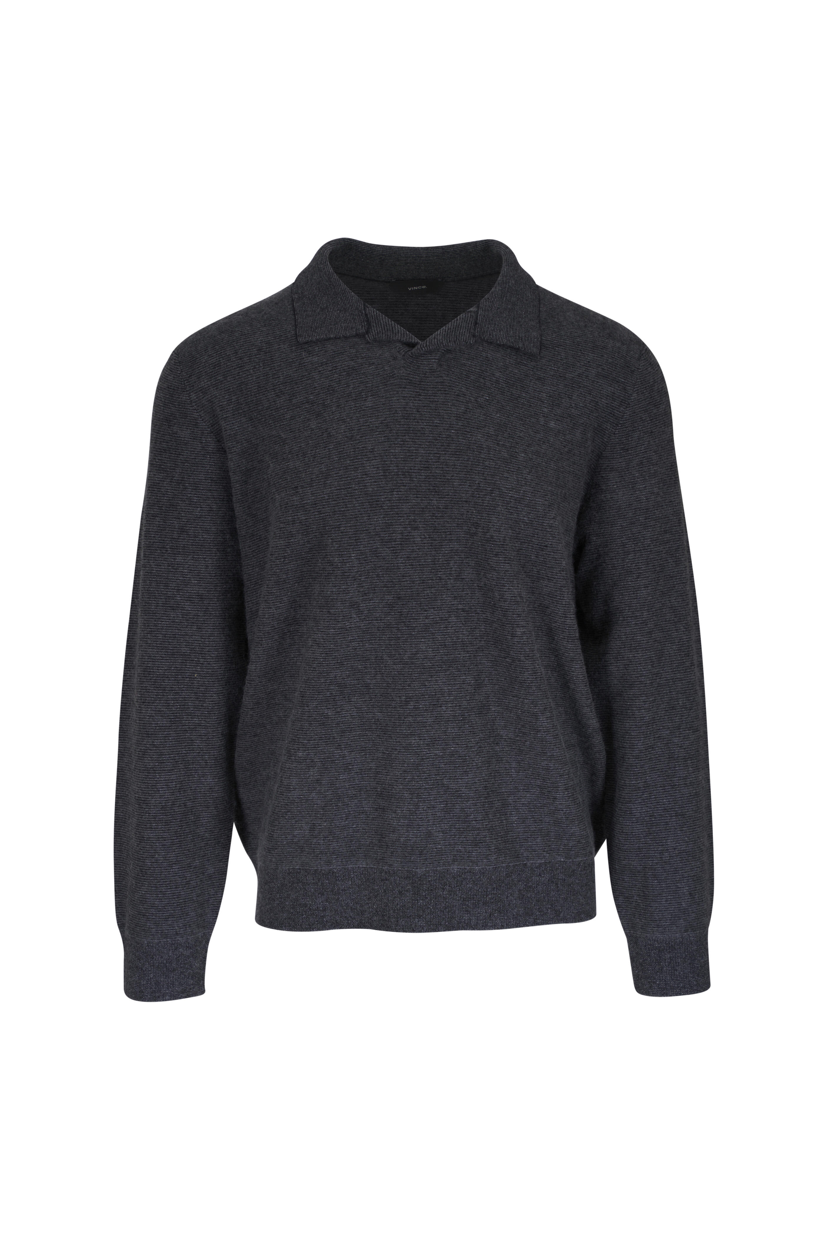 Gray Stripe Plush Cashmere Johnny-Collar Sweater