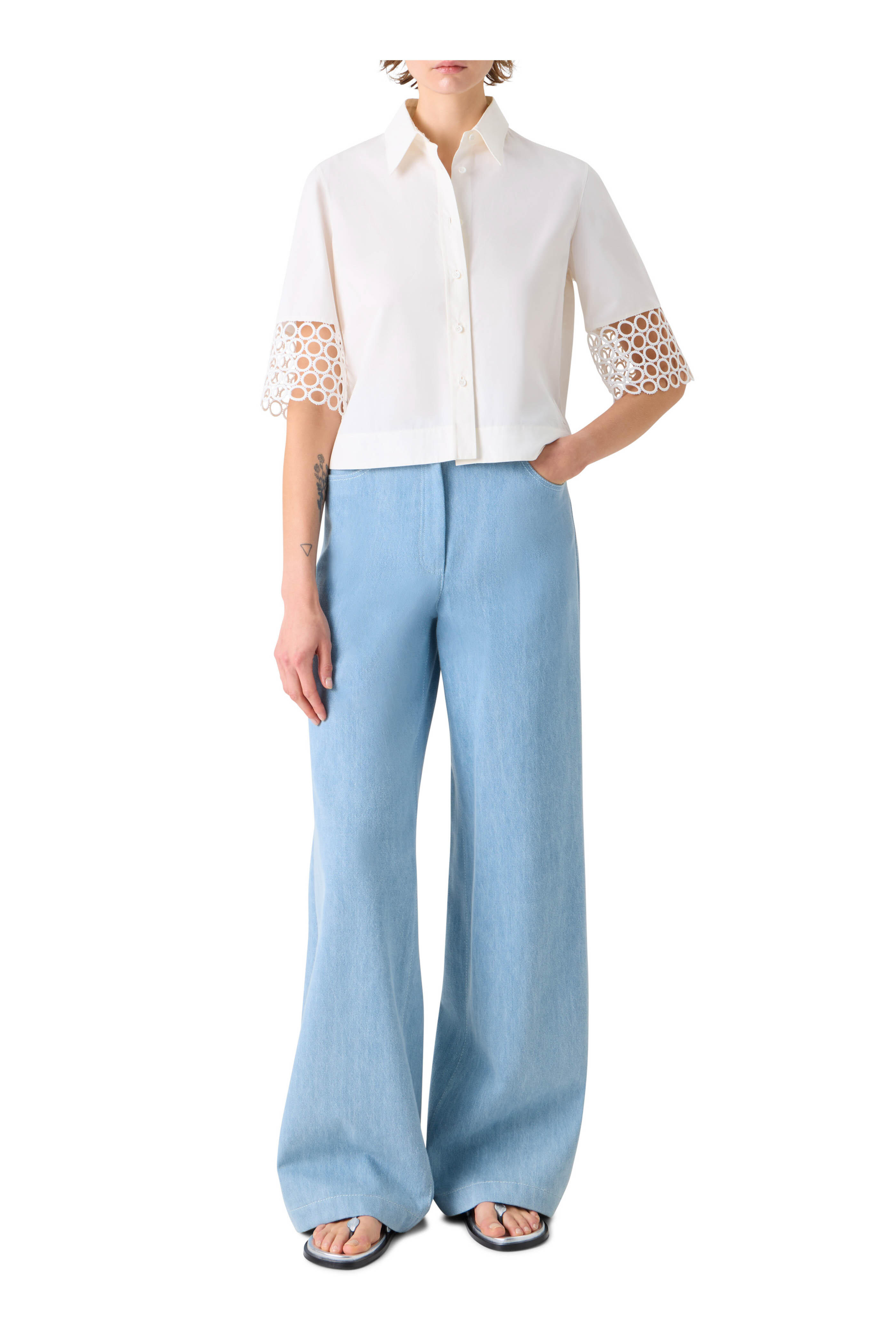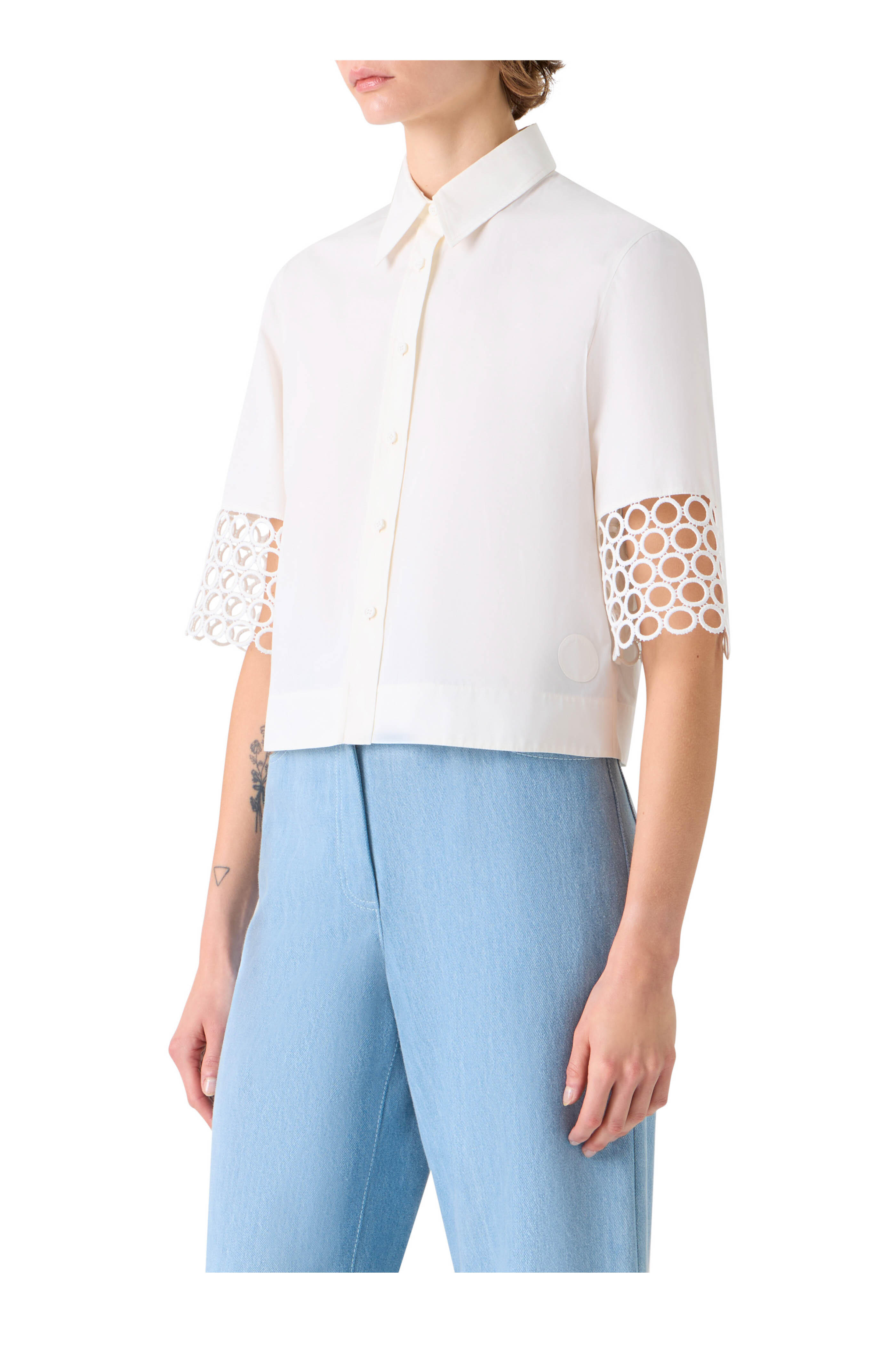 • Akris Punto - Cream Eyelet Boxy Blouse