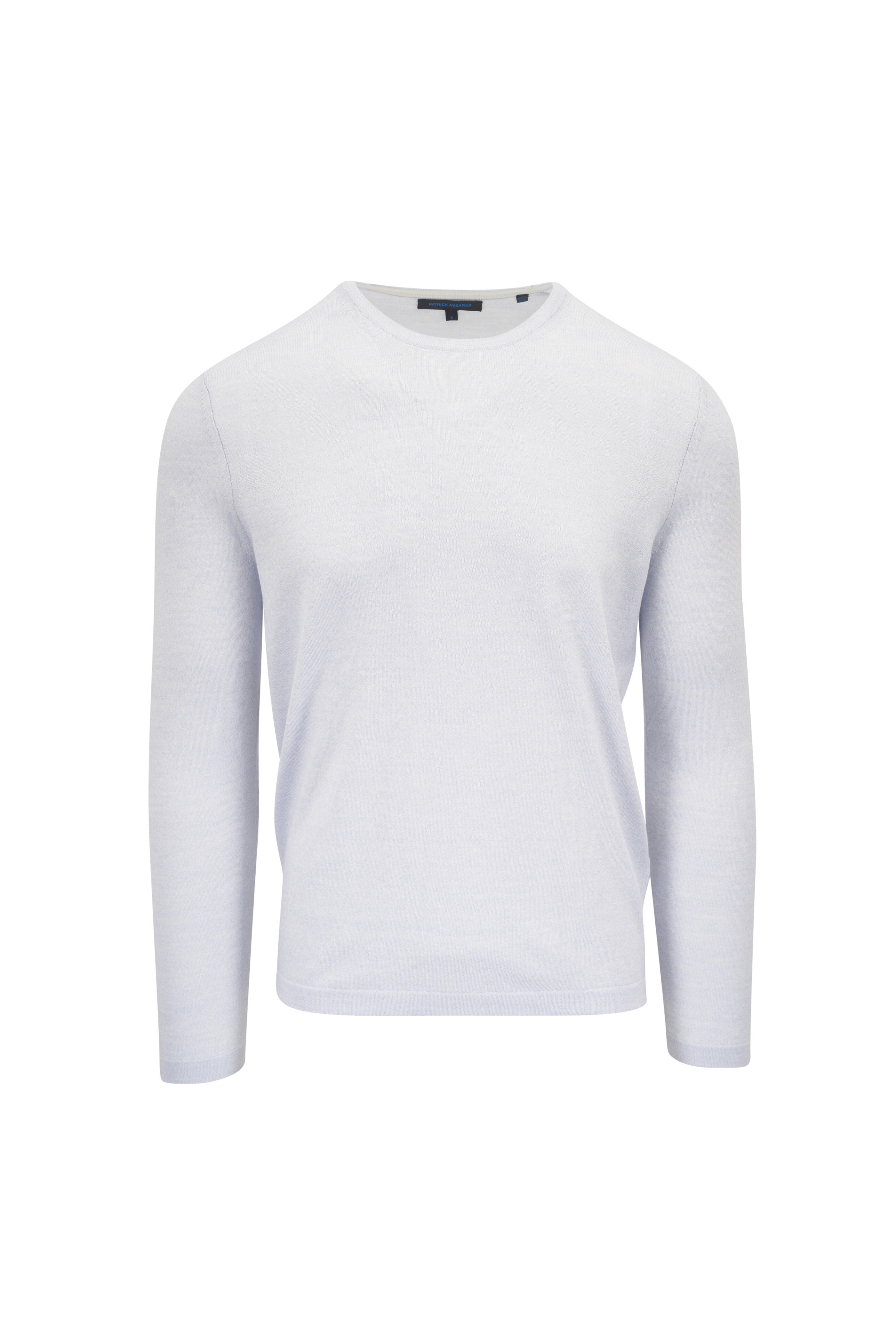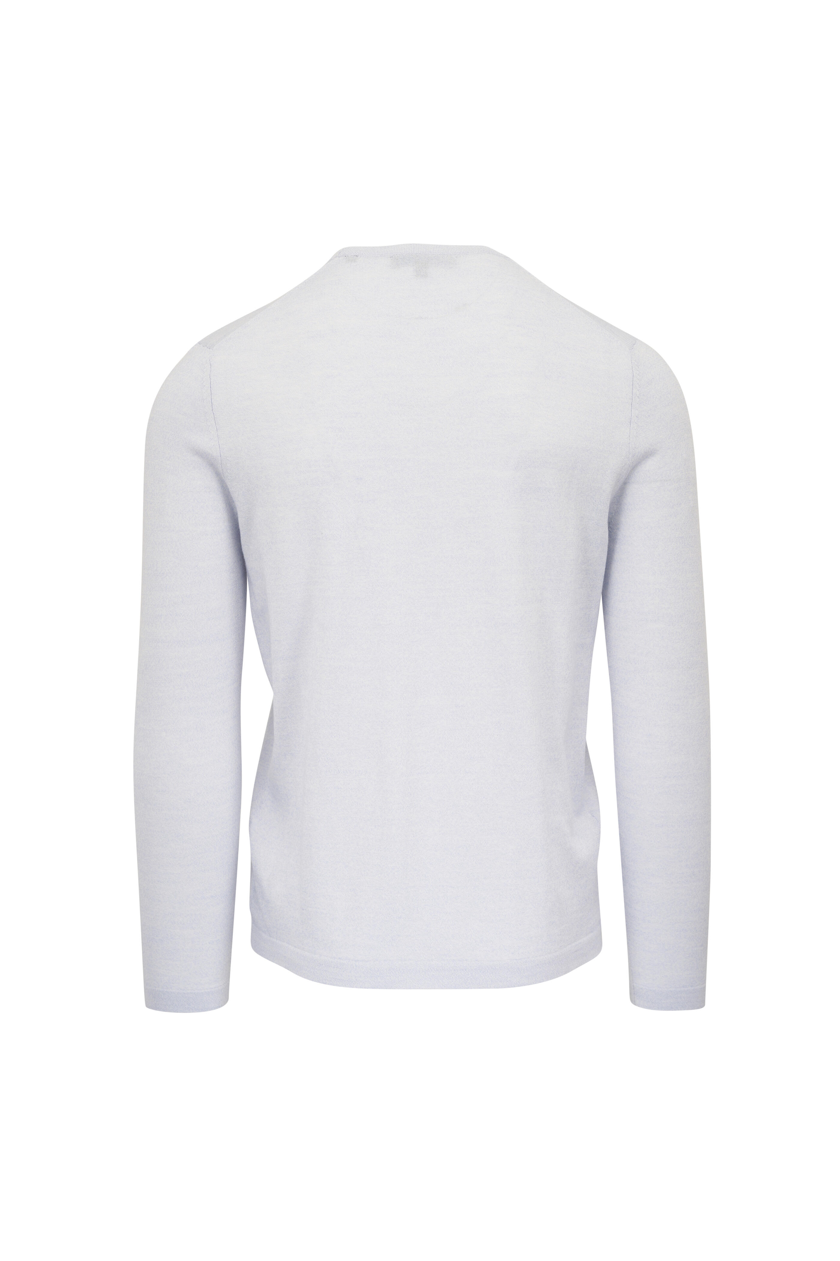 Crewneck. Ribbed trims. Imported. Shoulder to hem 29" (size l). 65% cotton, 25% cupro, 10% extrafine merino wool. Hand wash.
