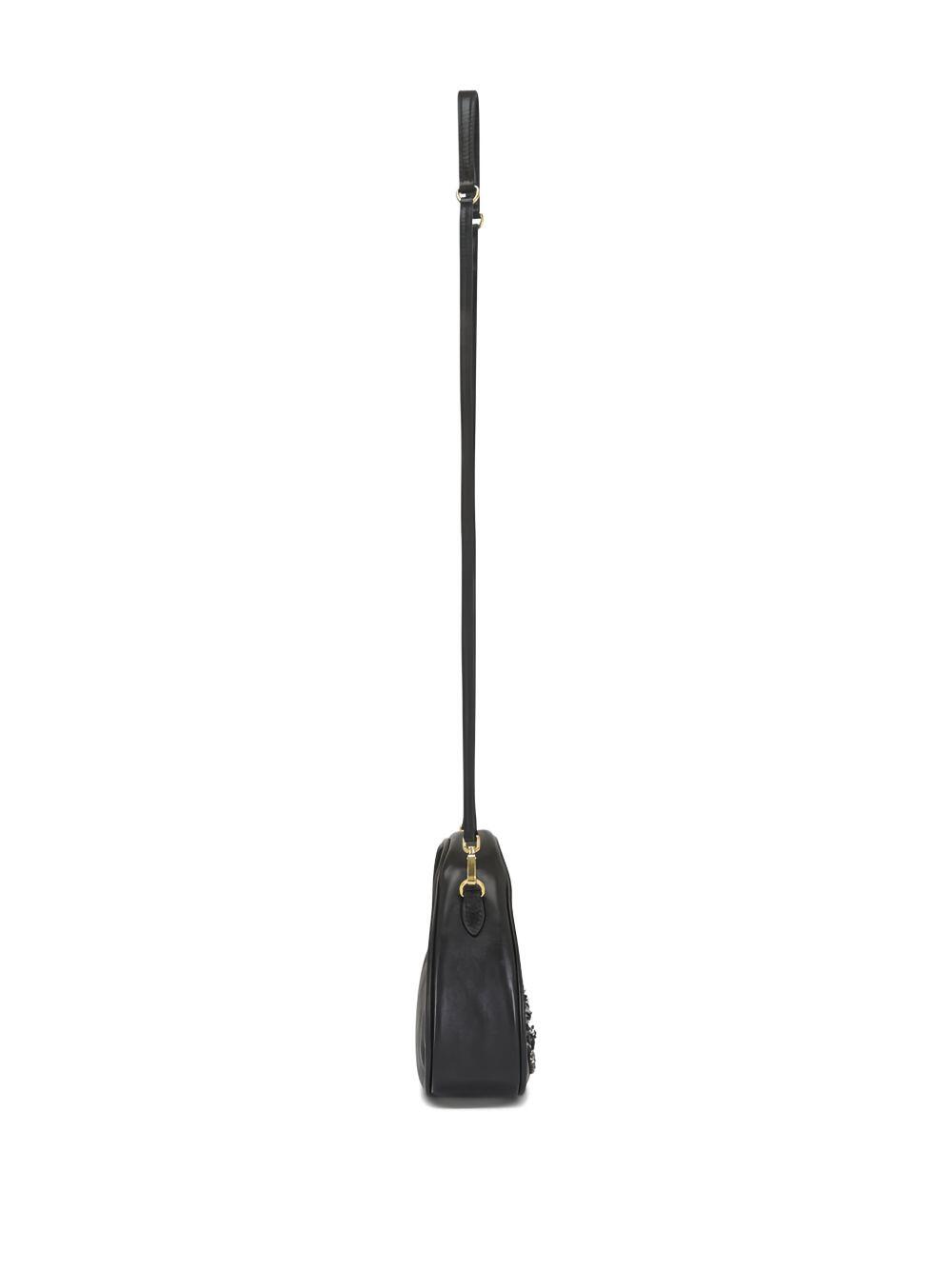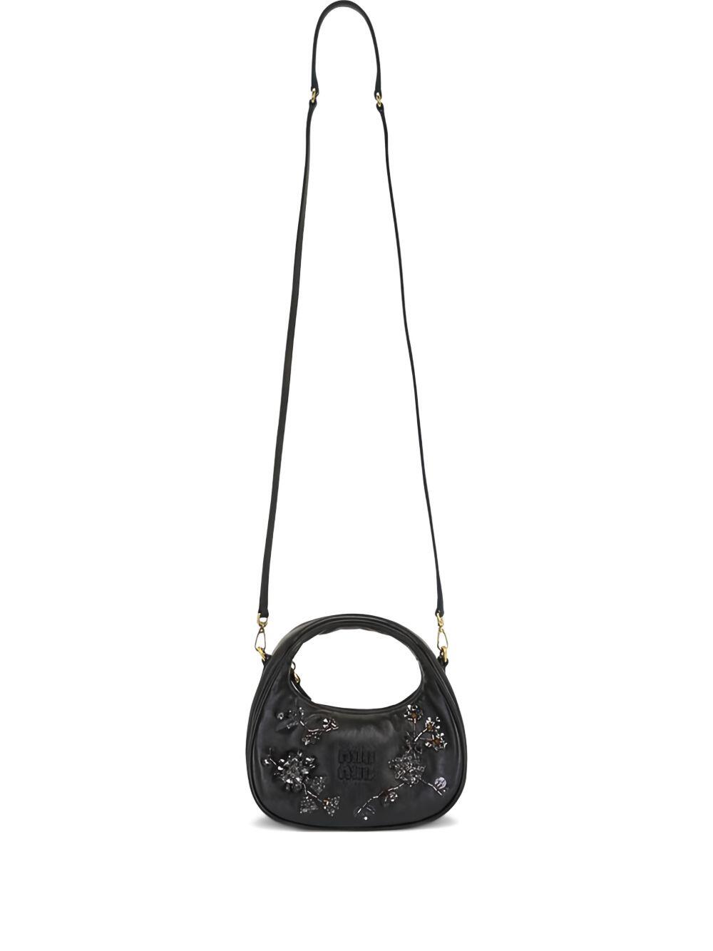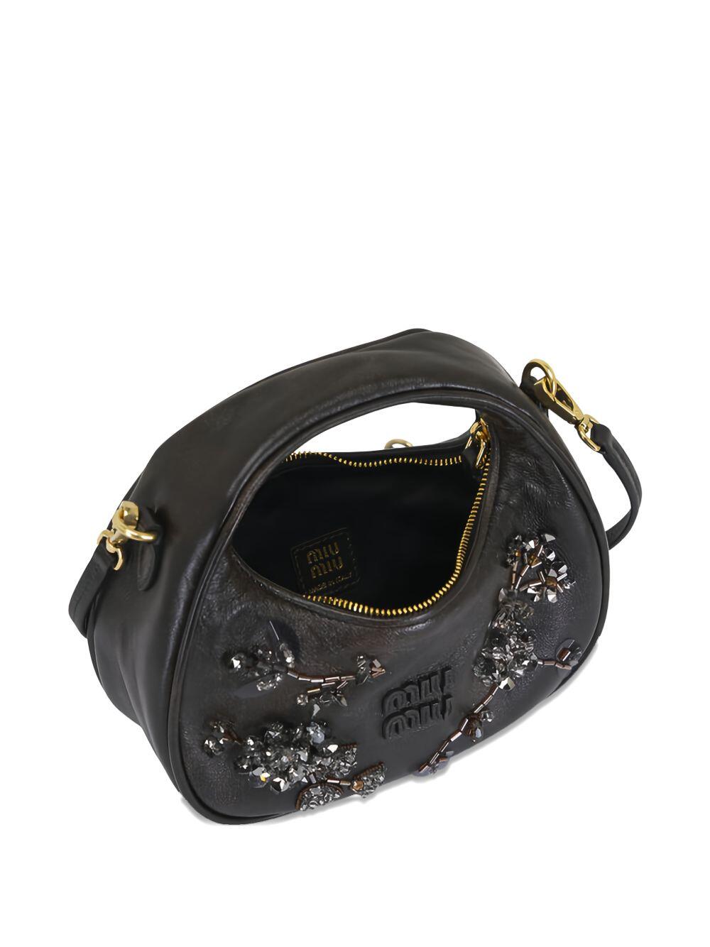 Leather. Removable crossbody strap; single top handle. Top zip closure. Bead and tonal logo detailing. Cotton satin lining. Imported. Depth: 2.16 in. Height: 5.51 in. Width: 6.88 in. Removable strap drop: maximum length 43.4".