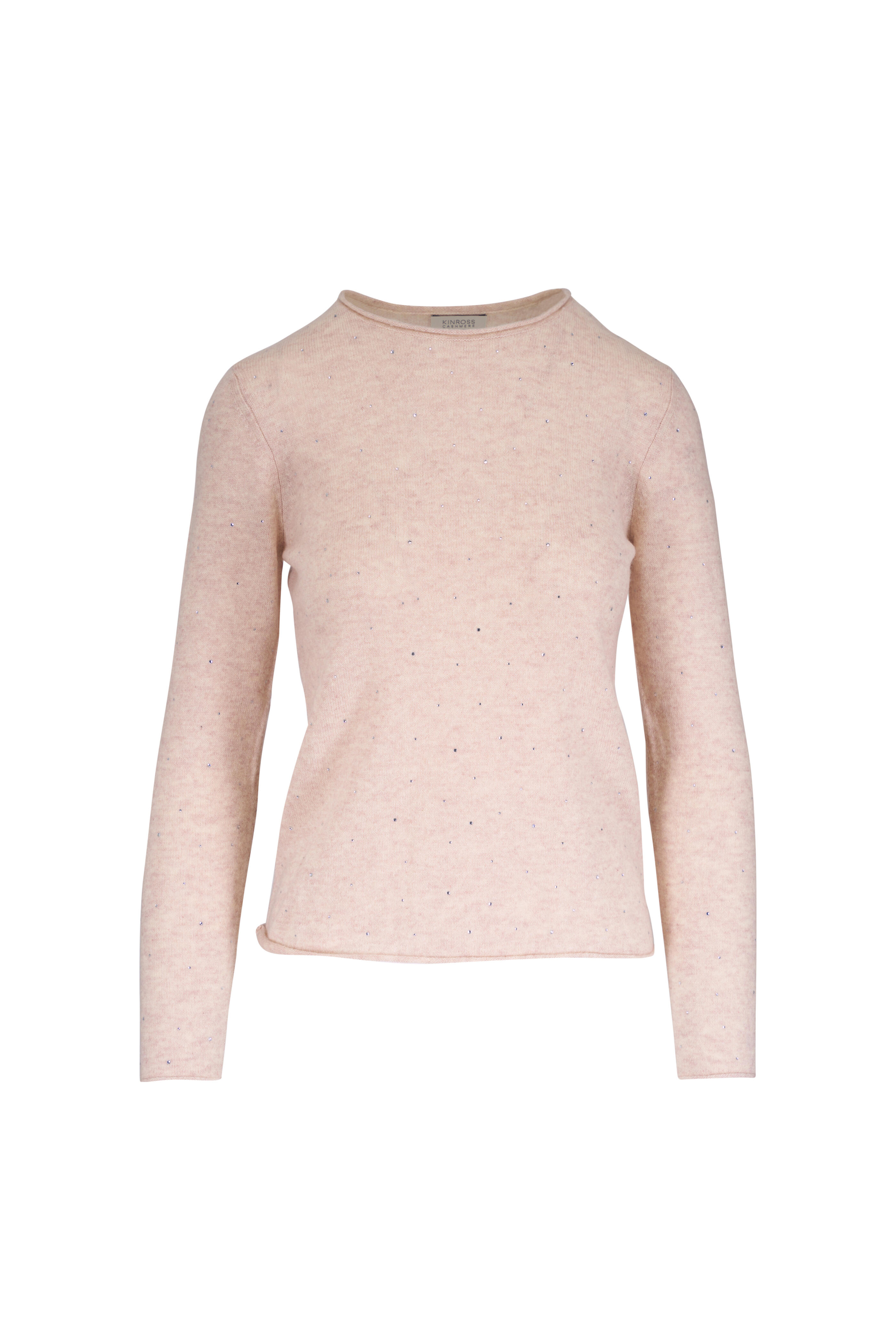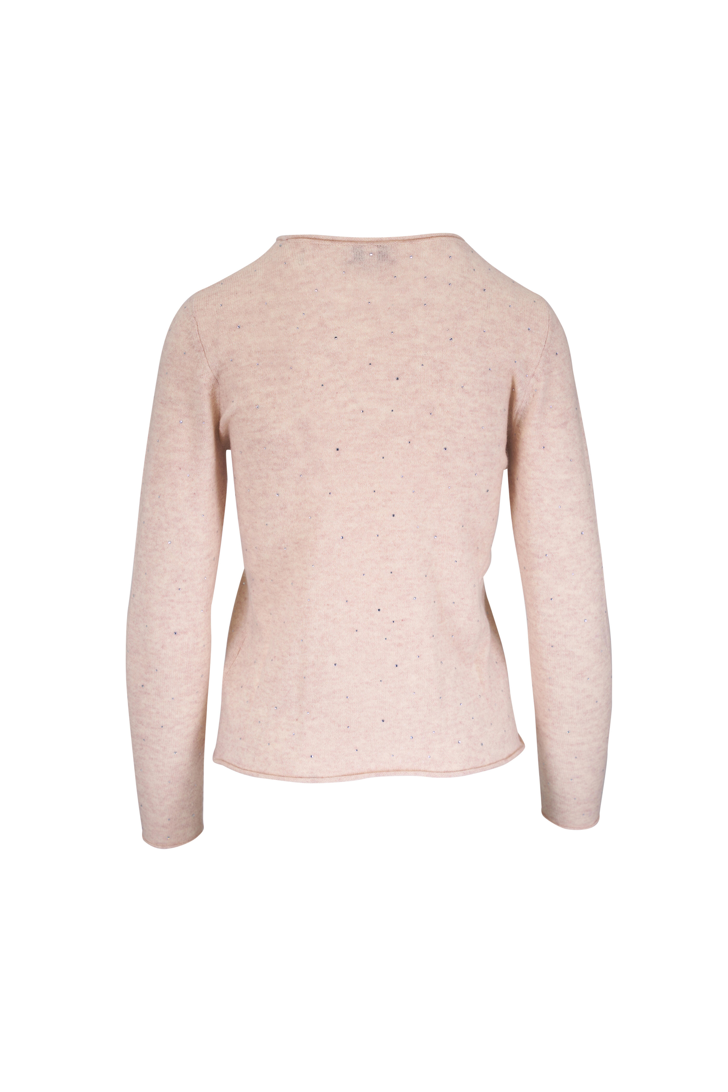 Crew neckline. Crystal embellishments. Rolled trim. Imported. Approximately 22" shoulder to hem (measurements taken from size XS). 100% cashmere. Dry clean.