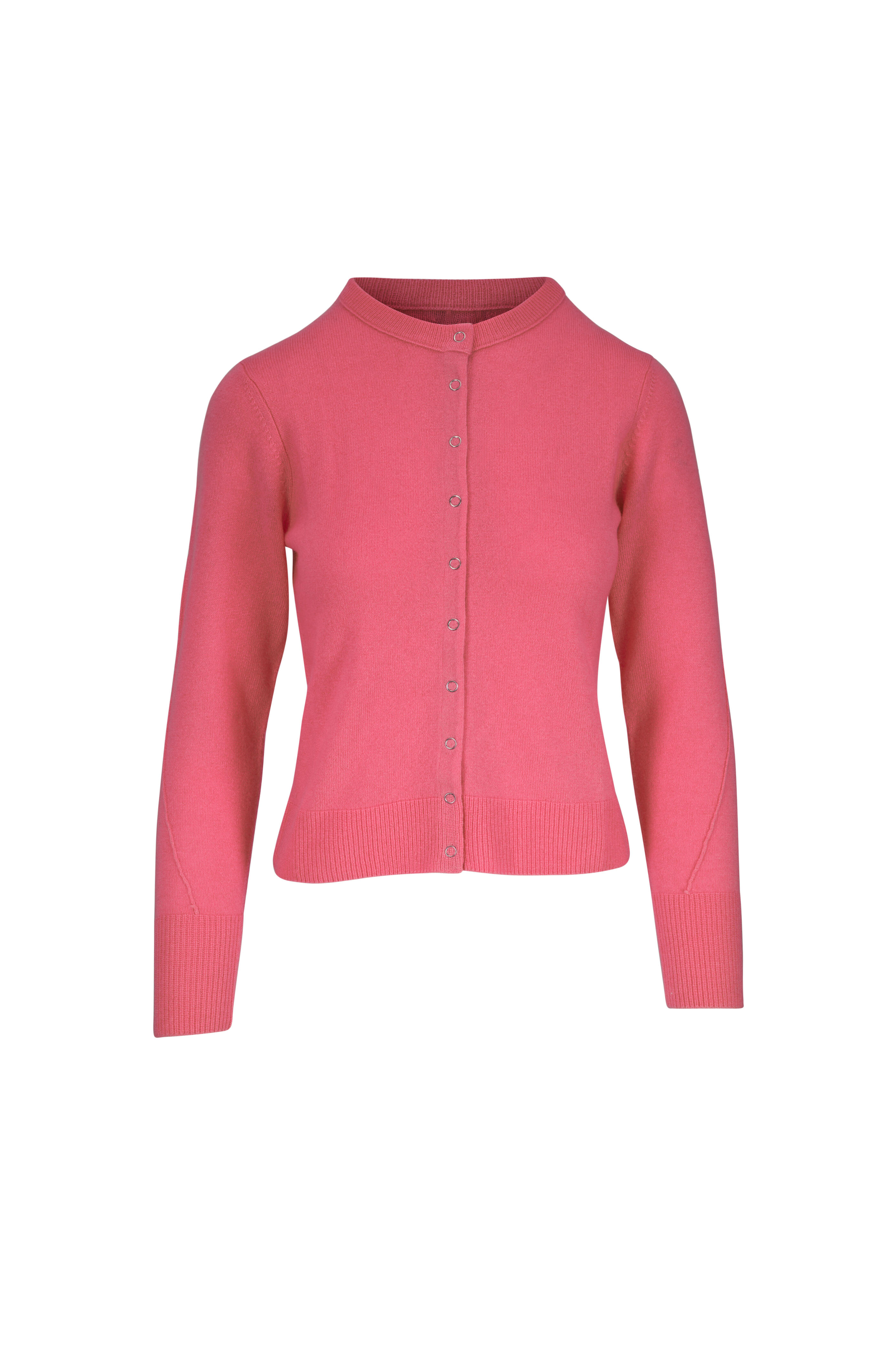 Crew neckline. Front snap placket. Ribbed knit trim. Imported. Approximately 21" shoulder to hem (measurements taken from size XS). 100% cashmere. Dry clean.