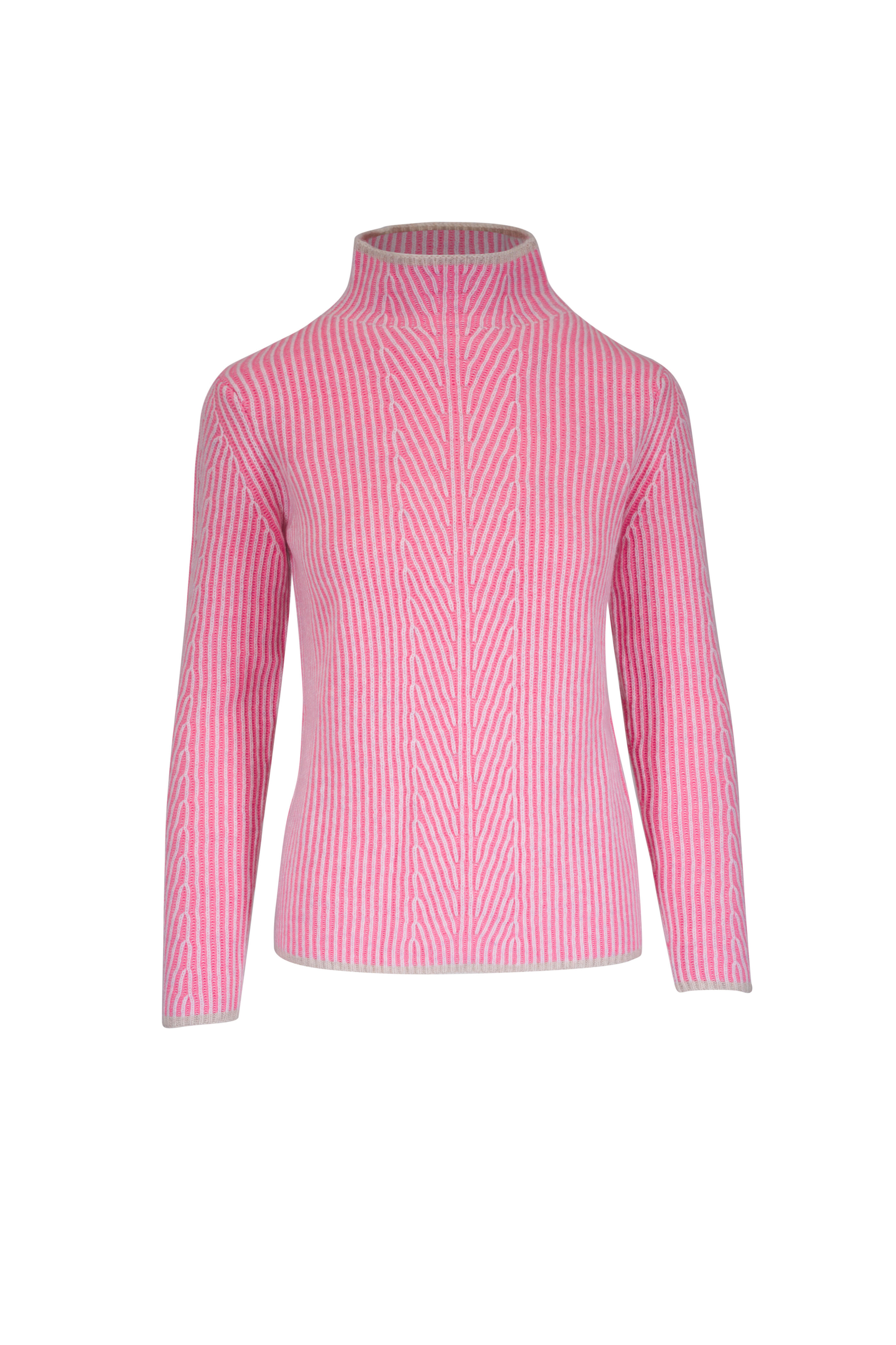 Coral Multi Cashmere Plaited Funnel Neck Sweater