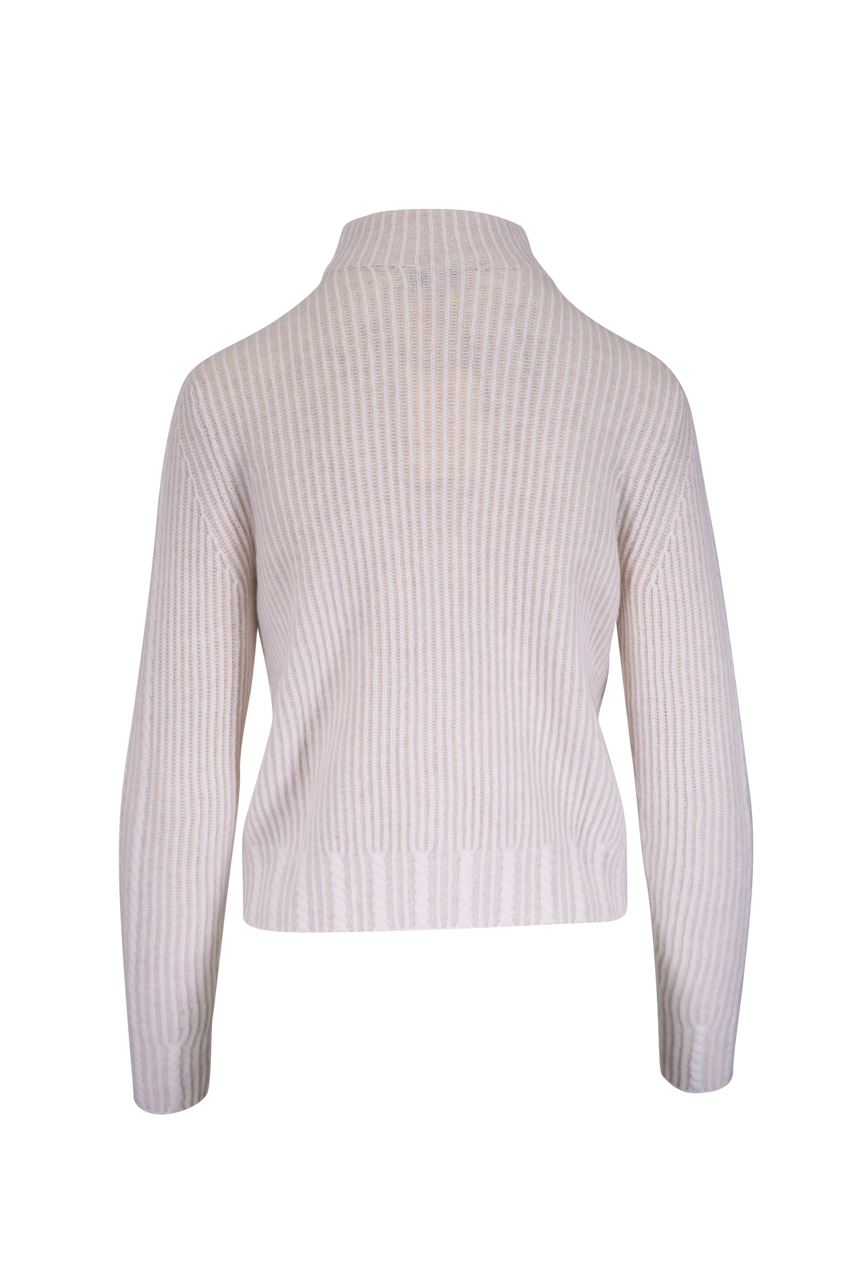 Ribbed Mock Neck Dune Cashmere Zip Cardigan