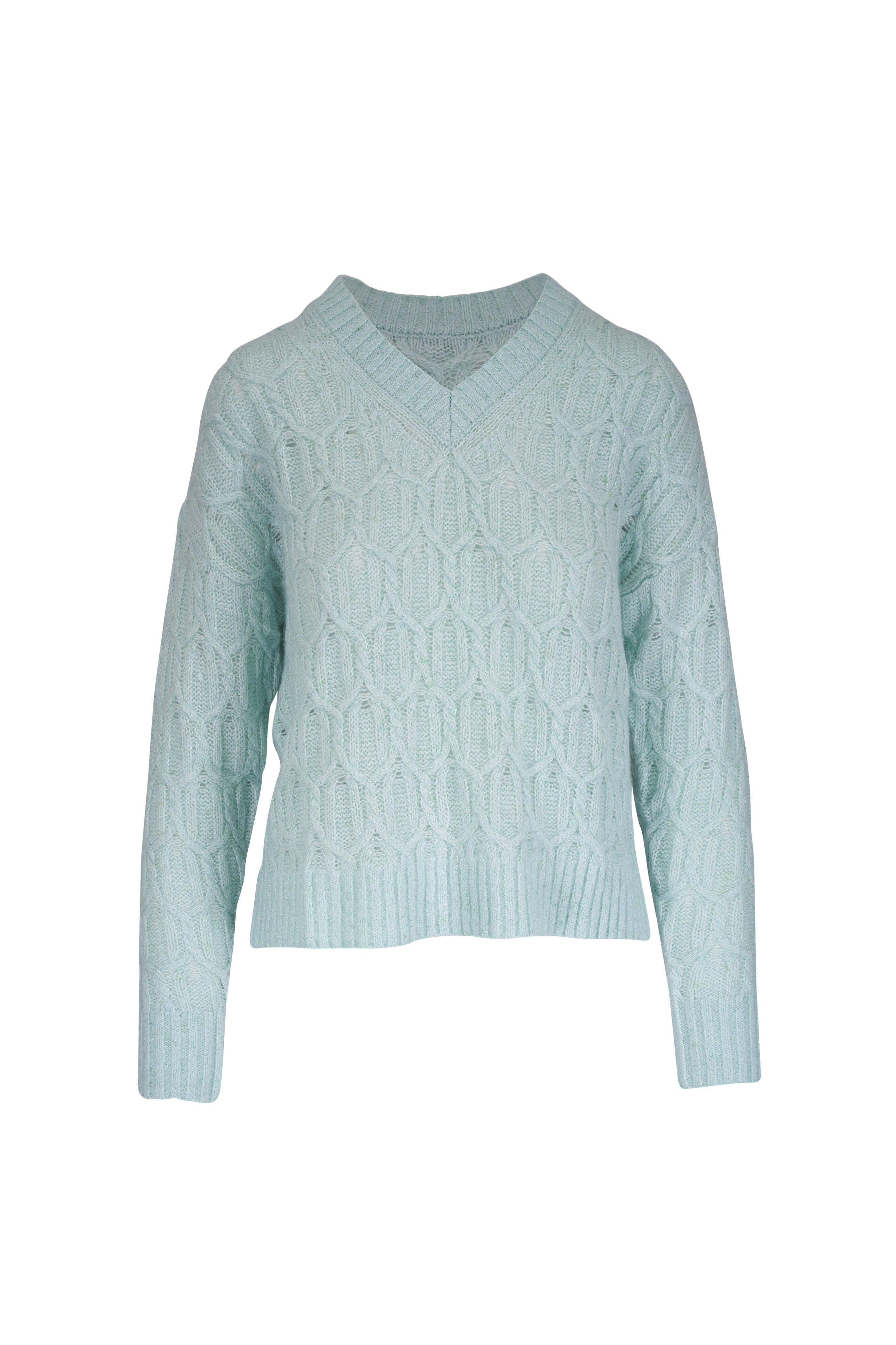 V-neckline. Ribbed knit trim. Imported. Approximately 22 ½" shoulder to hem (measurements taken from size XS). 65% wool, 17% cotton, 15% cashmere, 3% other fiber. Dry clean.