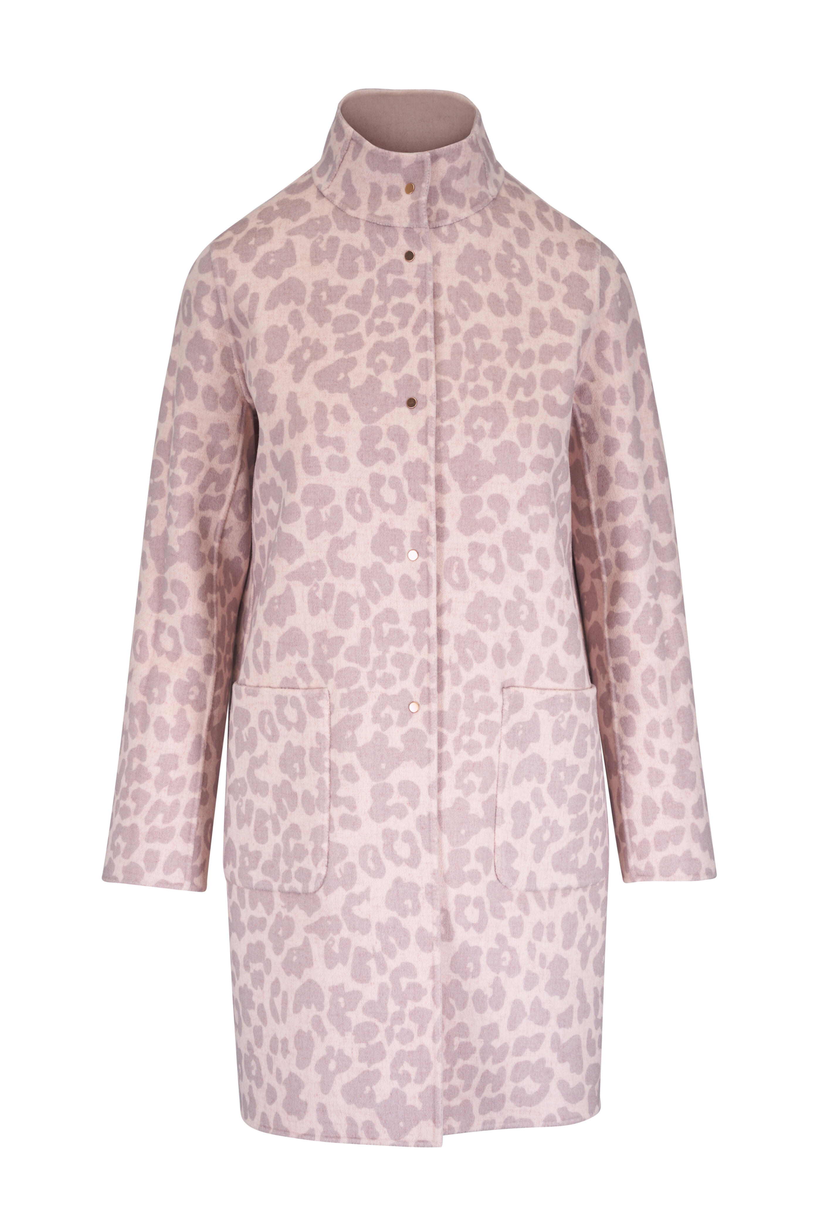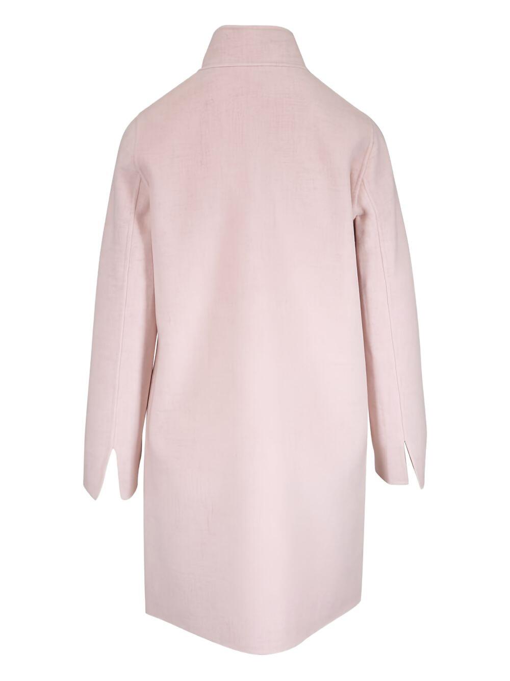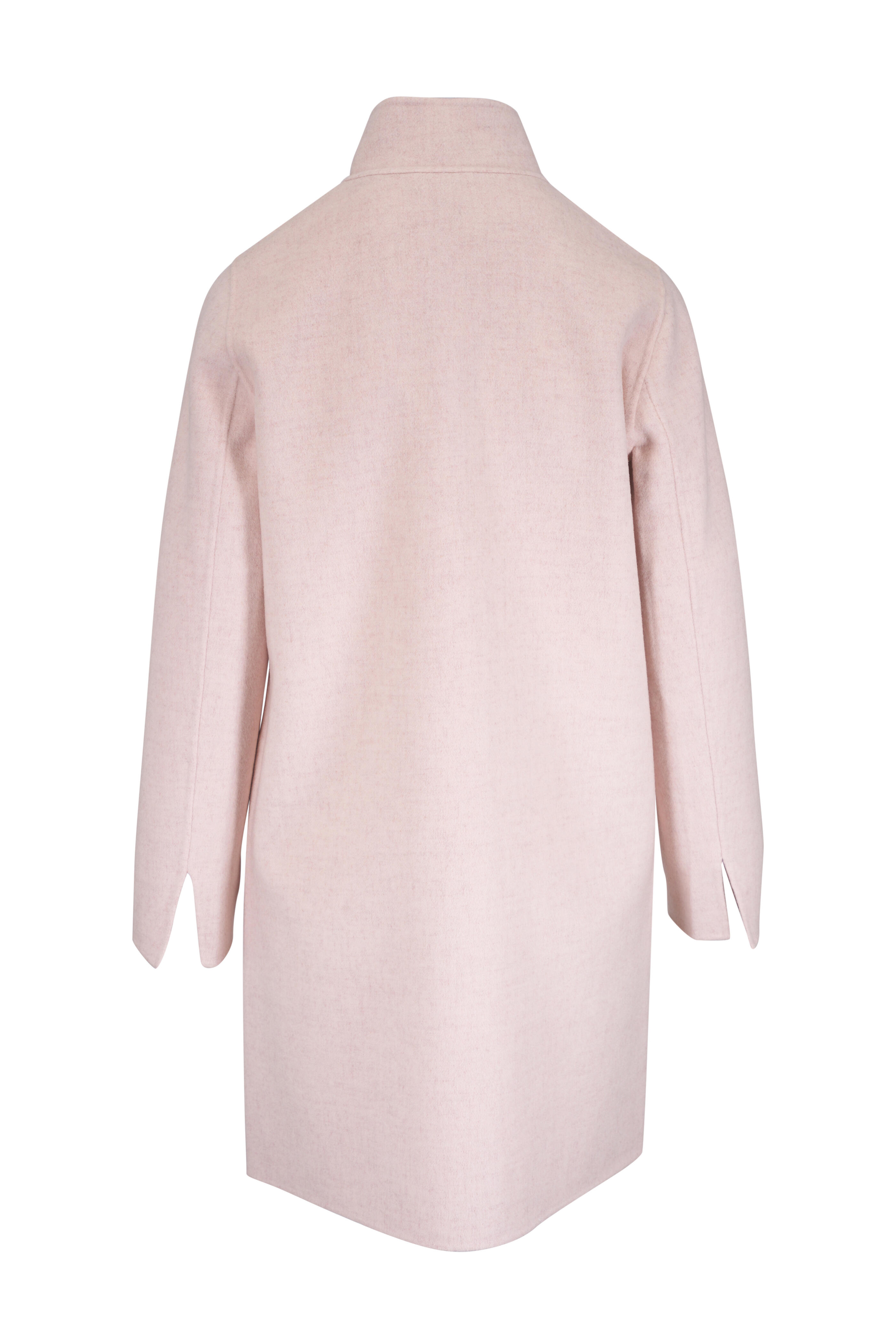Stand collar. Front snap placket. Lower patch pockets. Vented sleeves. Reversible. Imported. Approximately 34 ½" shoulder to hem (measurements taken from size XS). 70% wool, 30% cashmere. Dry clean.