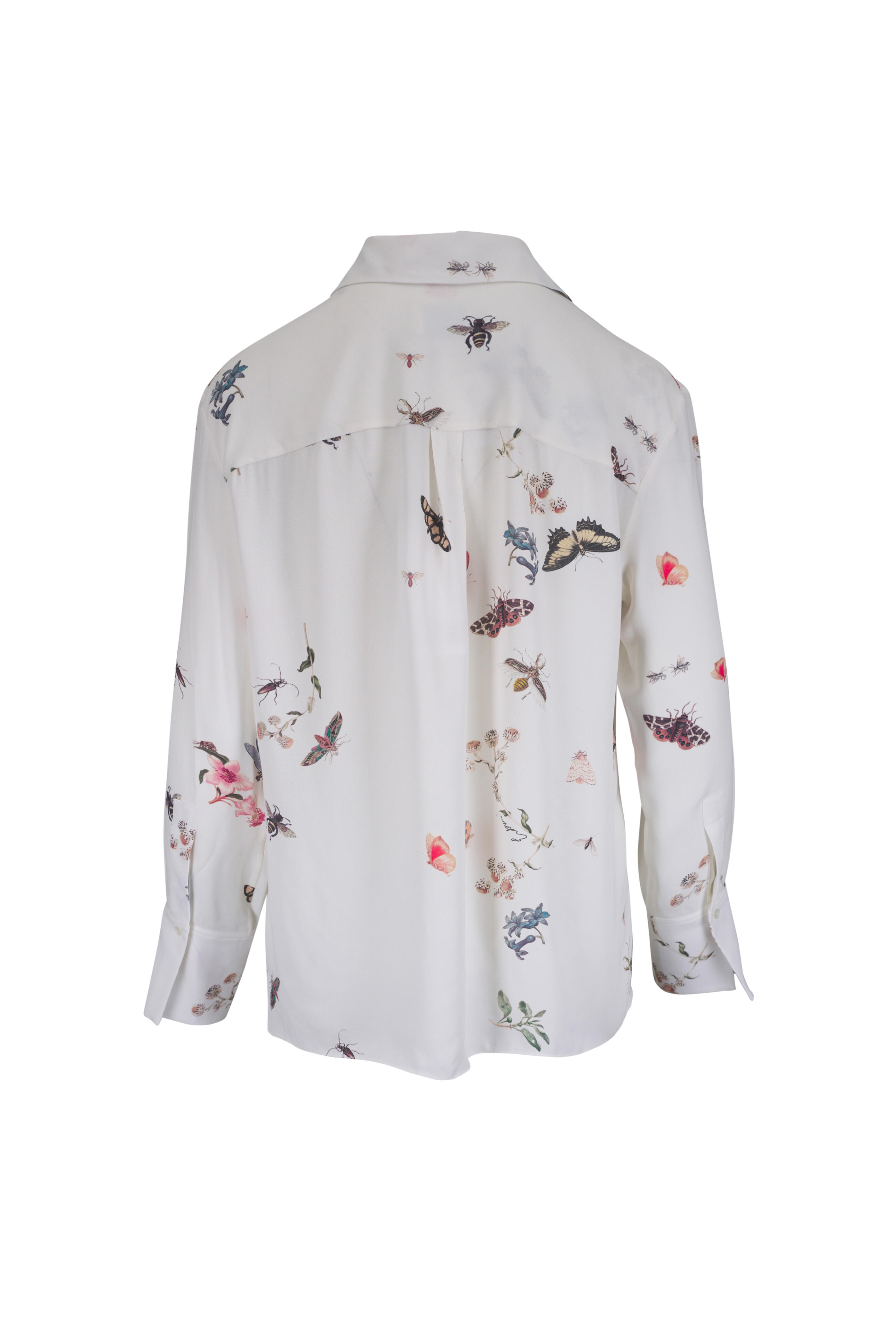 White Butterflies, Insects & Flower Print Blouse