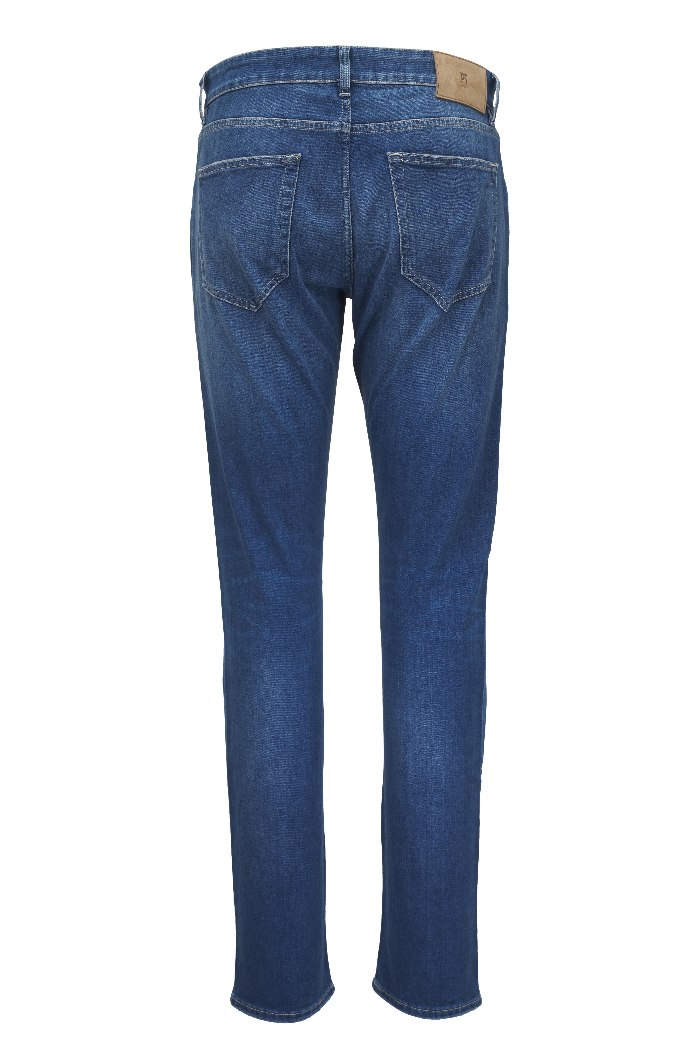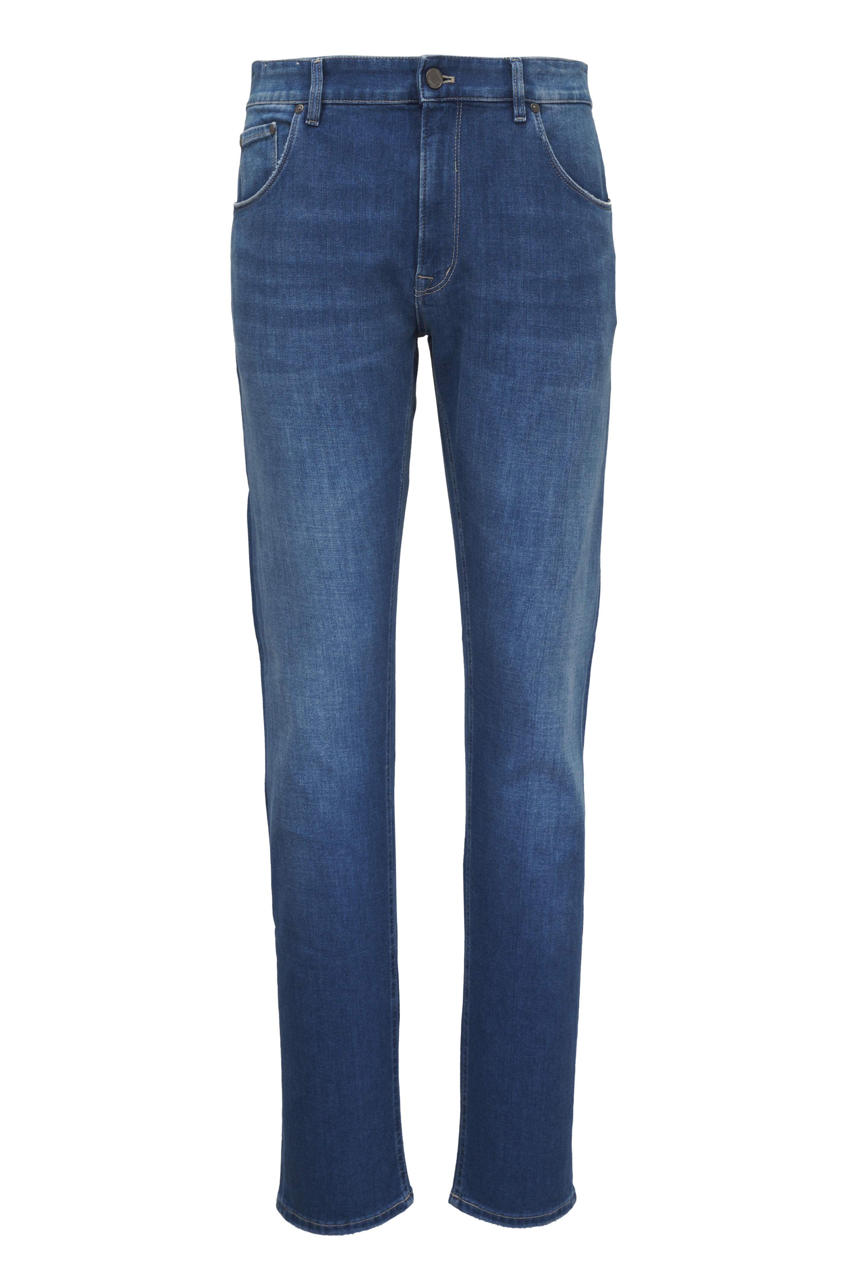 Zip fly with button closure. Belt loops. Five pocket styling. Straight hem. Made in Italy. 34' Inseam (size 36 R). 92% cotton, 6% elastomultiester, 2% elastane. Machine wash.