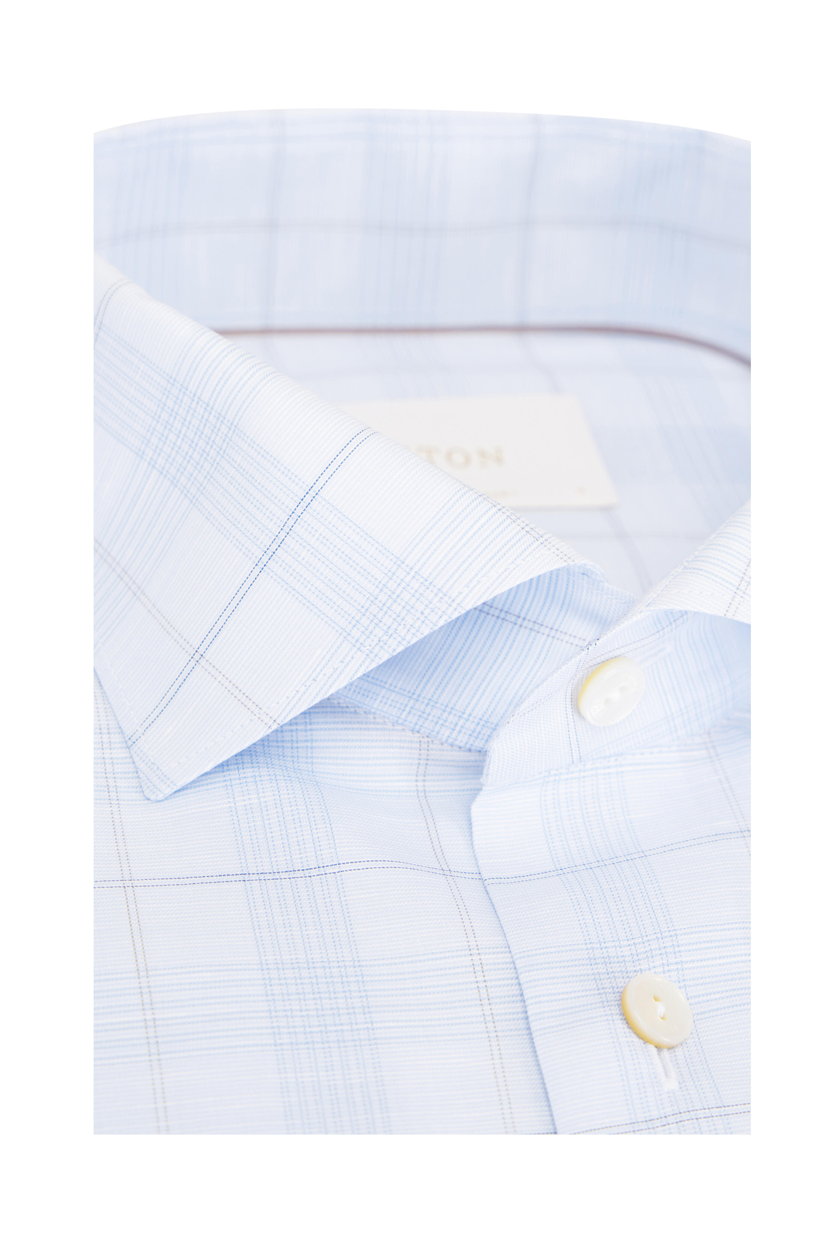 Light Blue Plaid Cotton & Linen Dress Shirt