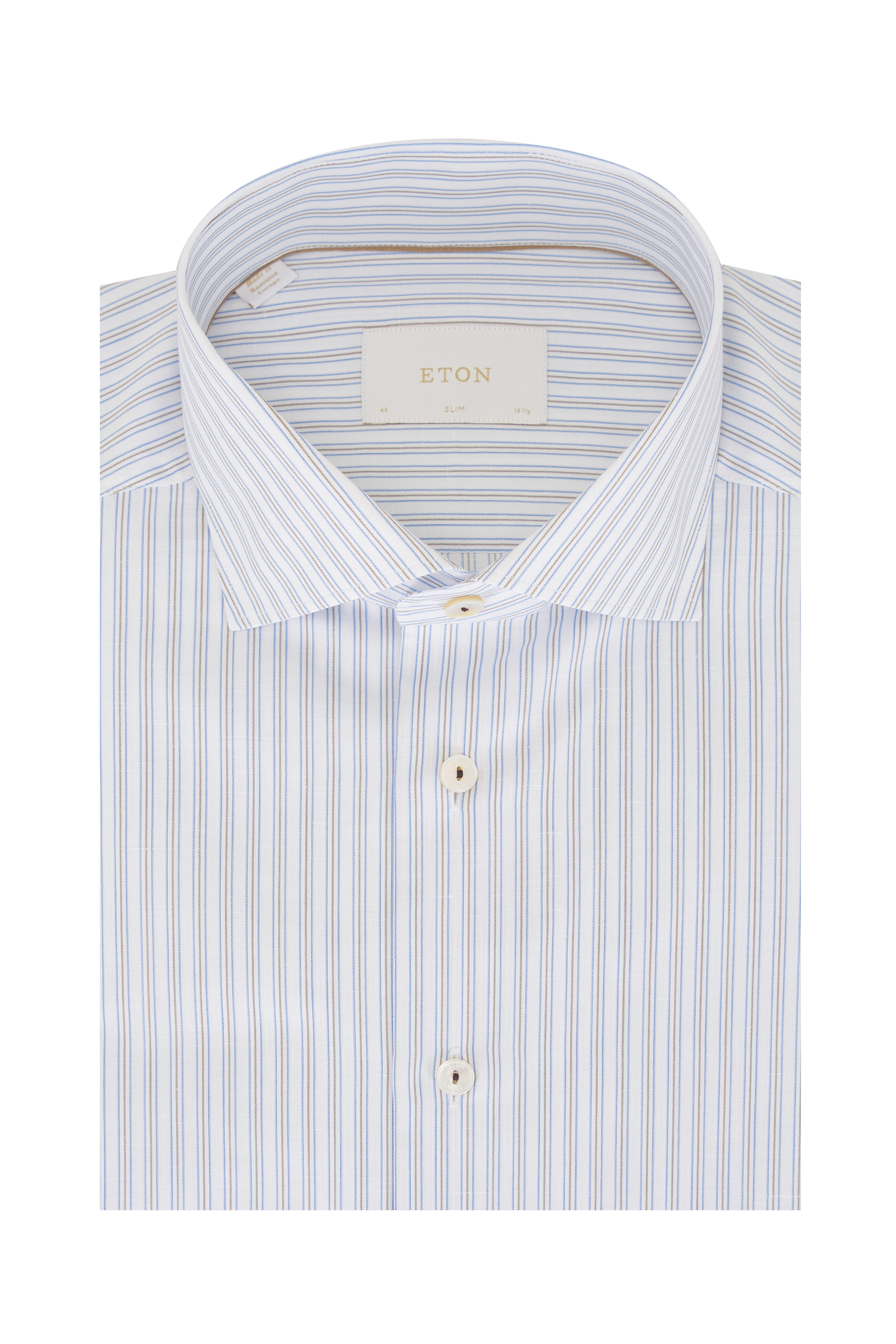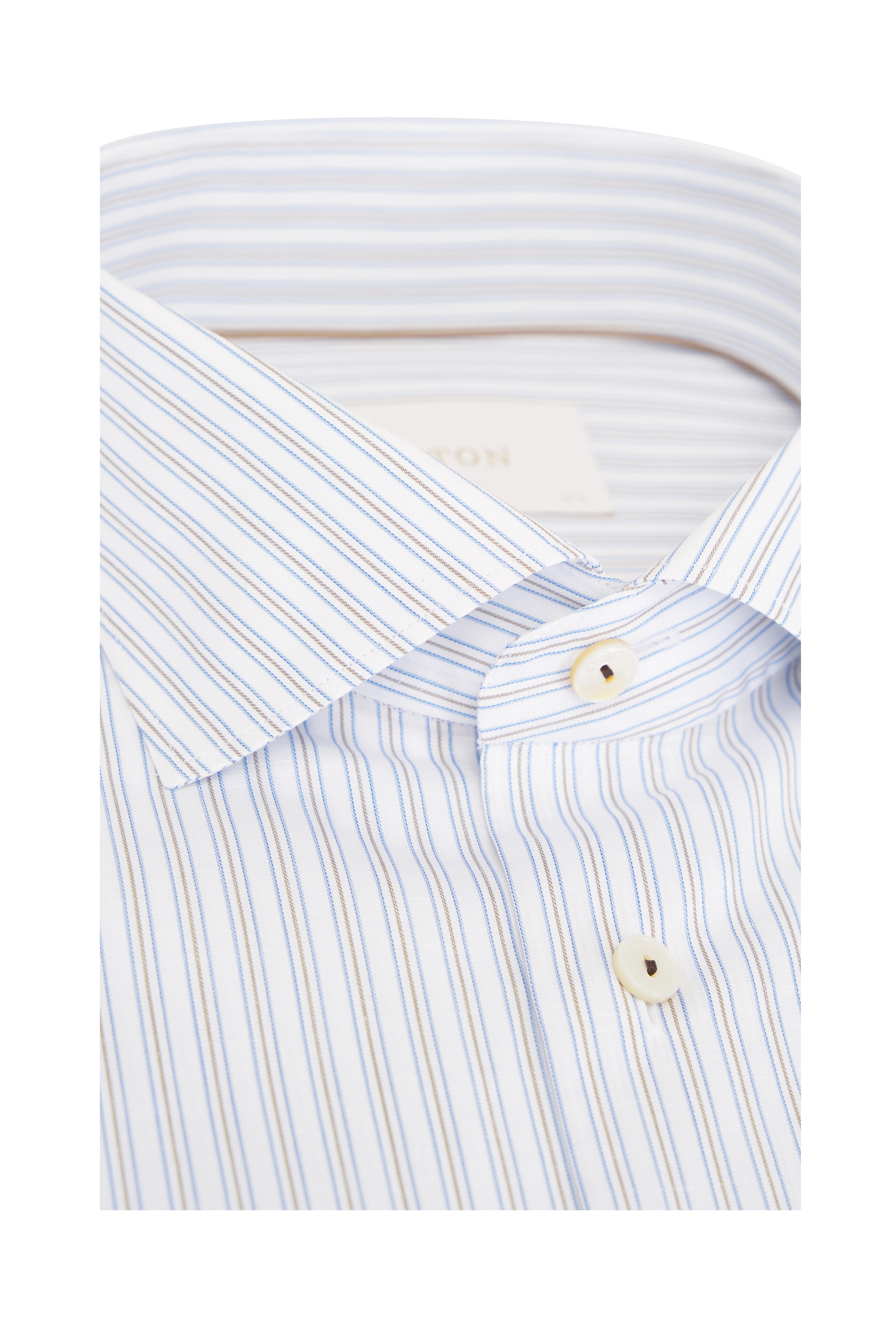 Brown & Blue StrIpe Cotton & Linen Dress Shirt