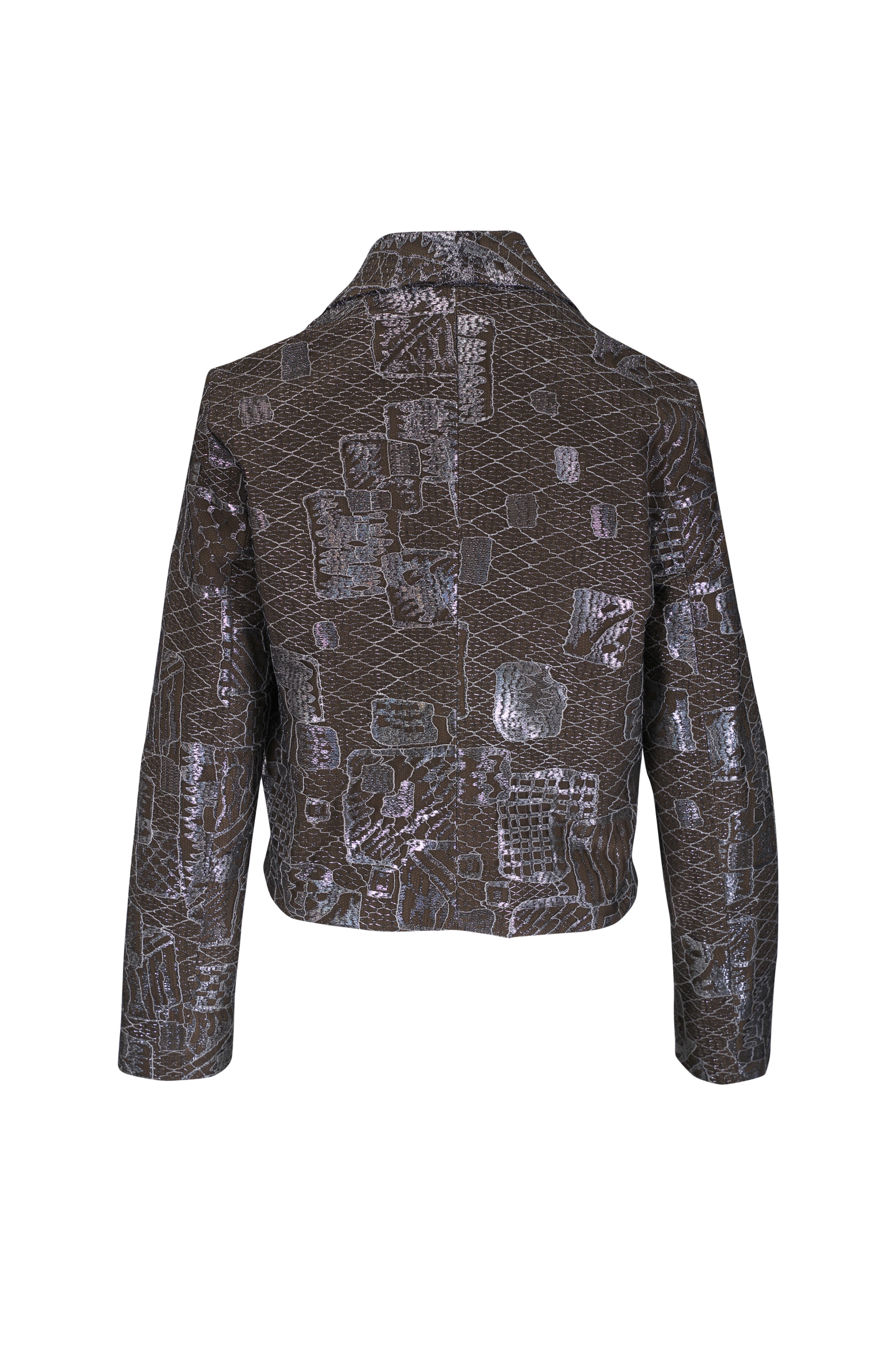 Shawl collar. Open front. On-seam pockets. Made in Italy. Style: Rum. 51% polyester, 35% polyamide, 14% cotton. Dry clean.