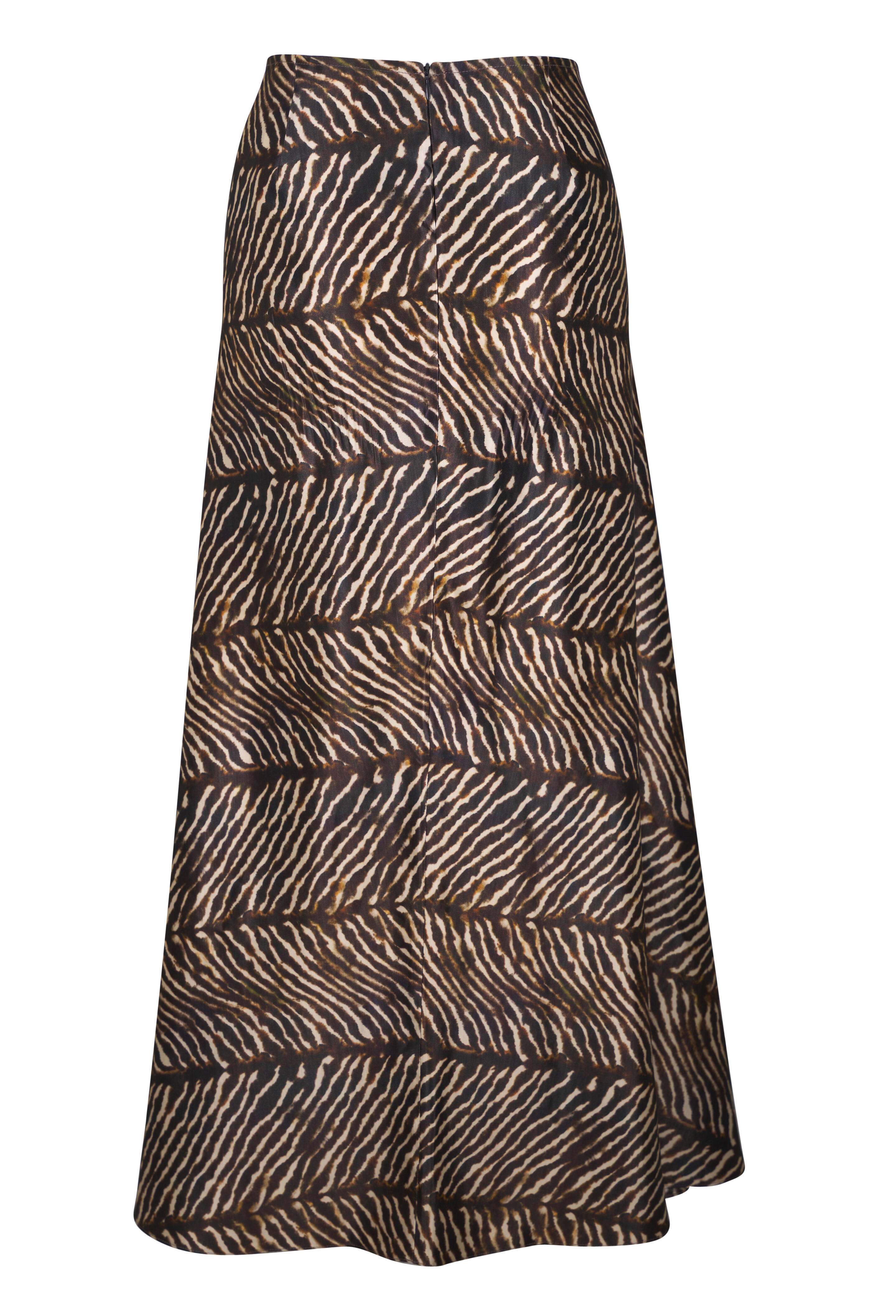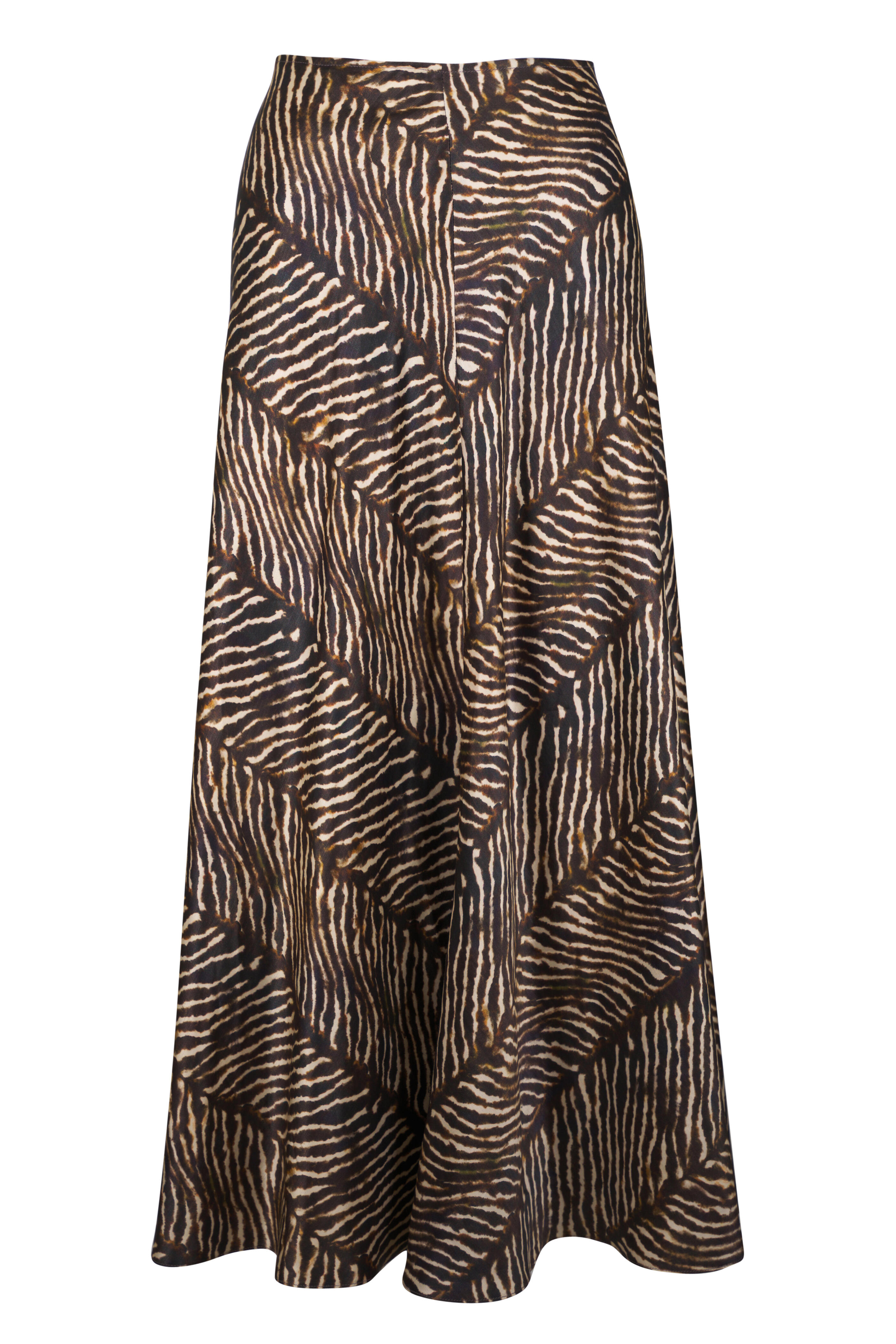 Concealed back zip. Made in the USA. Approximately 39" waist to hem (measurements taken from size S). 60% linen, 40% viscose. Dry clean.