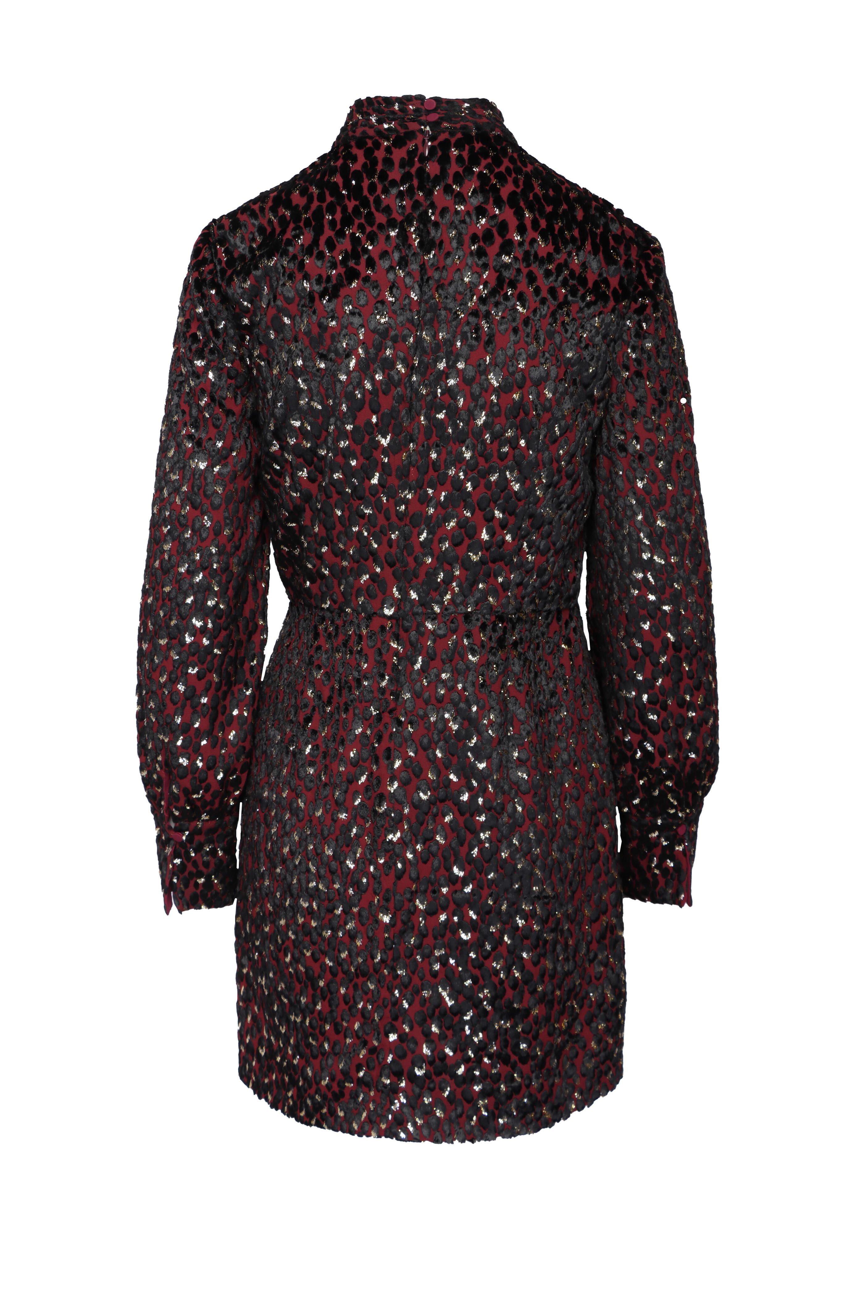 Mockneck. Long sleeves; button cuffs. Back button closure; keyhole detail. Concealed Zip closure. Twist front detail. Imported. Mini length. 60% rayon, 30% polyamide, 10% polyester outer, 100% polyester lining. Dry clean.