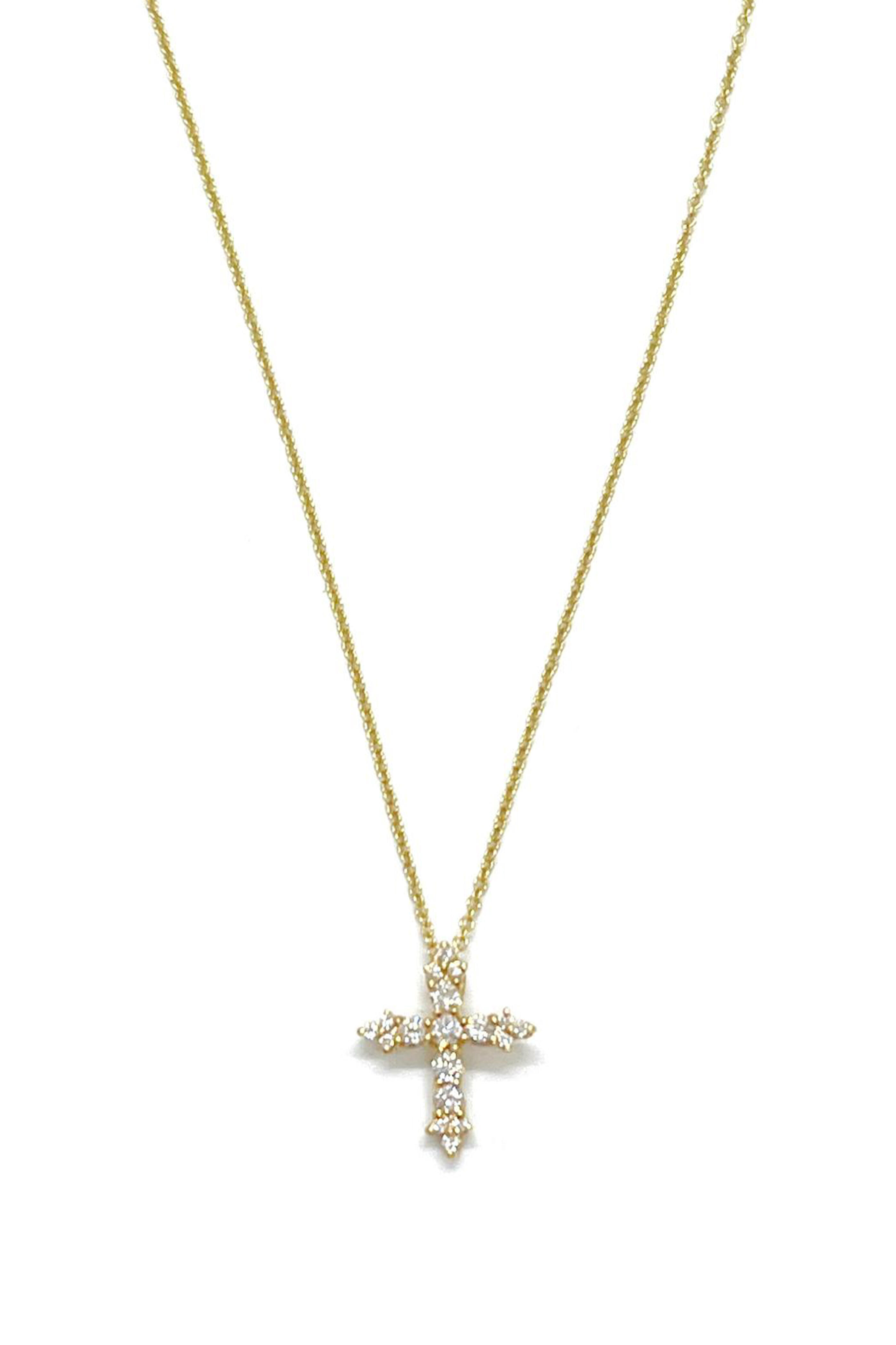18k gold. Diamond 0.24 total carat weight. Cross design. Prong setting. Cable Chain. Lobster claw clasps. Made in Italy.