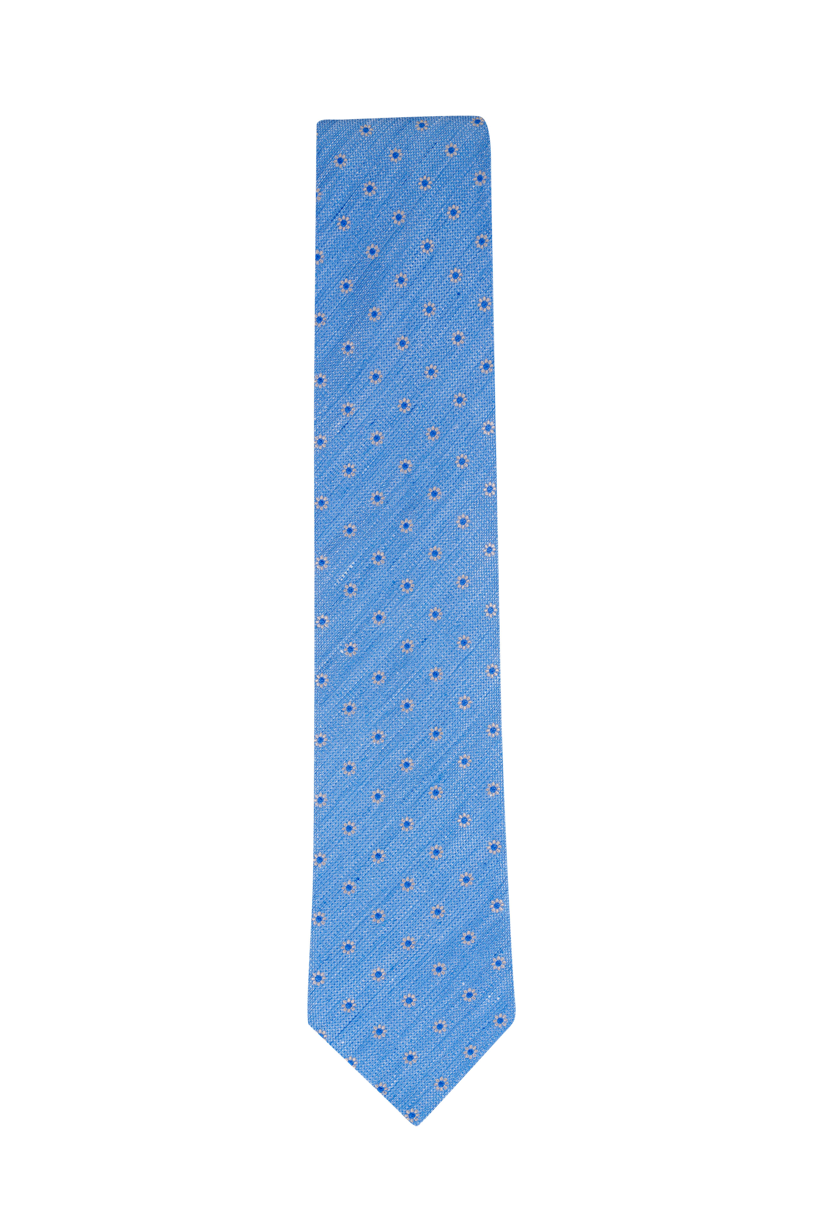 Light Blue Floral Woven Linen & Silk Necktie
