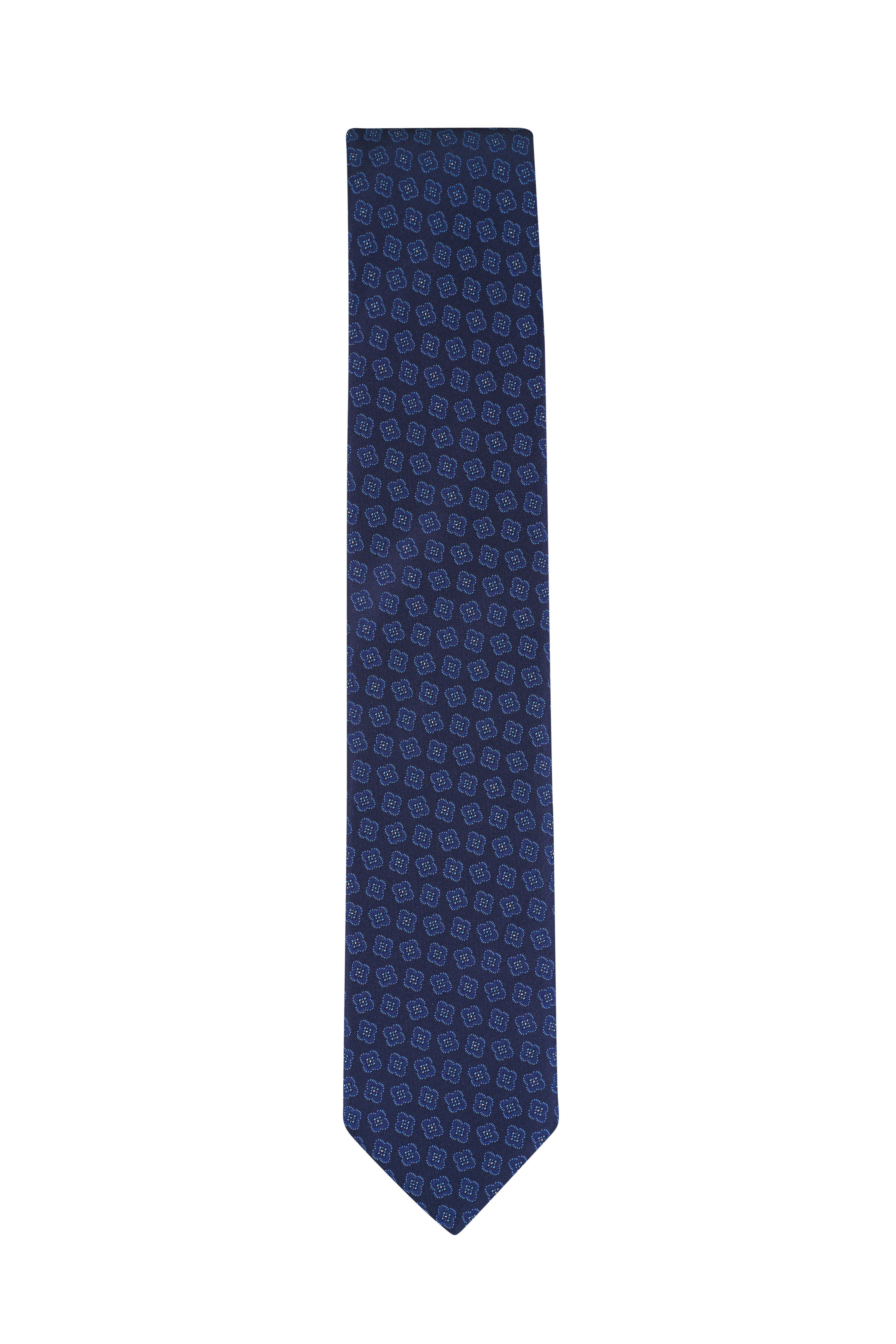 Navy Blue Medallion Woven Silk Necktie