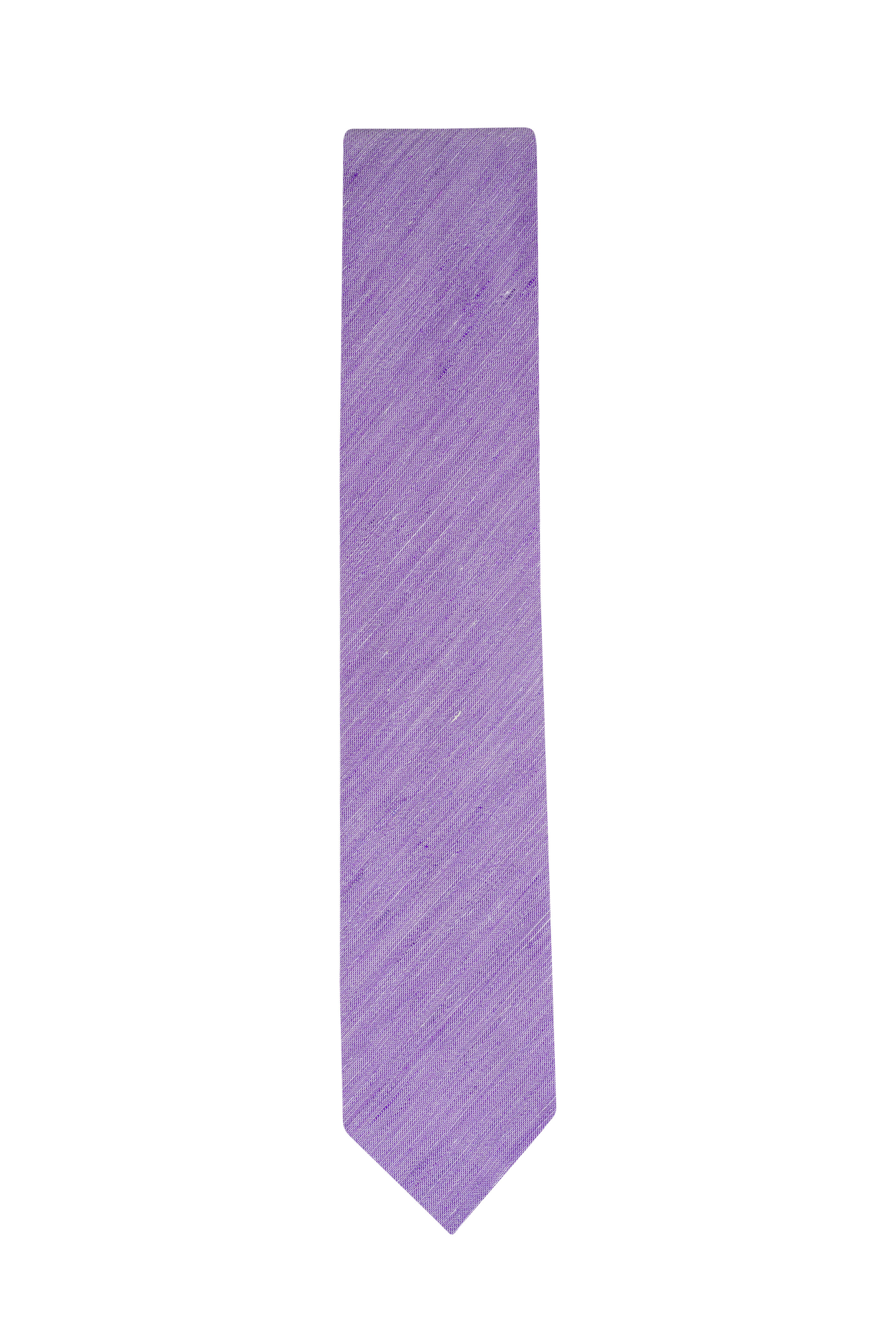 Medium Purple Woven Linen & Silk Necktie